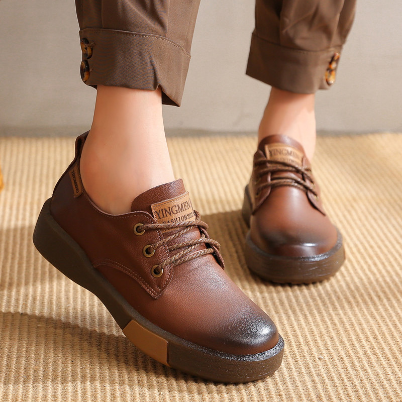 Весенняя универсальная обувь для отдыха для кожаной обуви, тренд сезона, из натуральной кожи, мягкая подошва