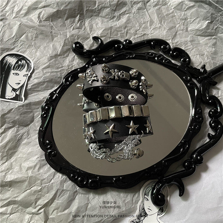 Diablo Line Bell Bell Bracelet Bracelet Skull Ayum Cultural Leath