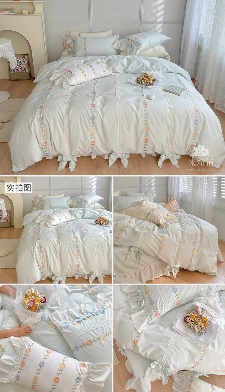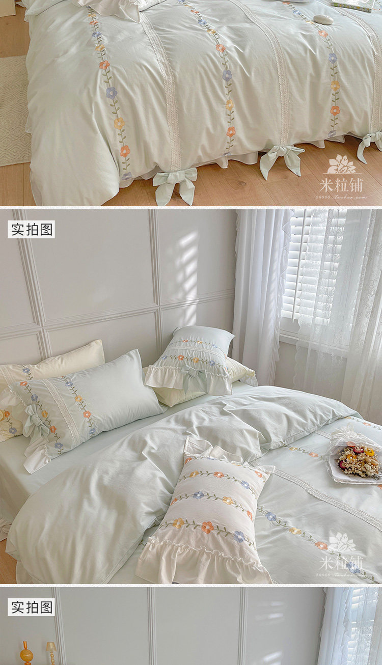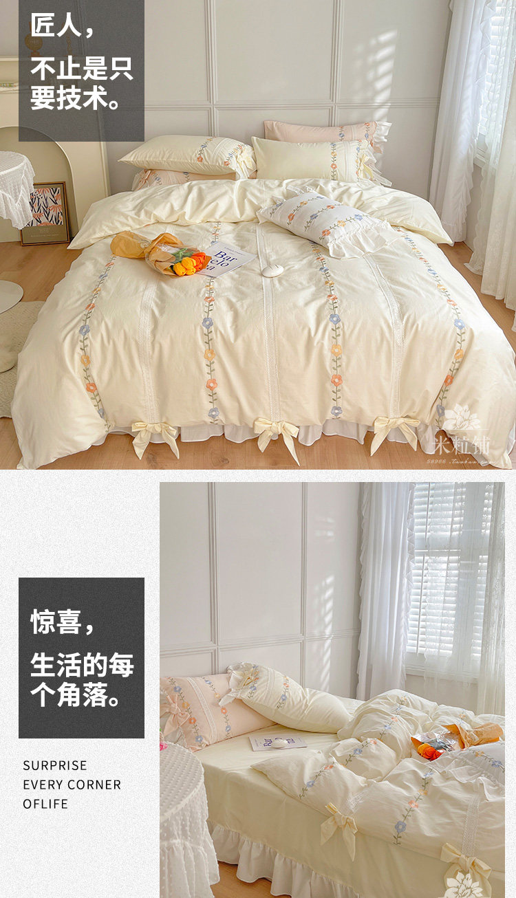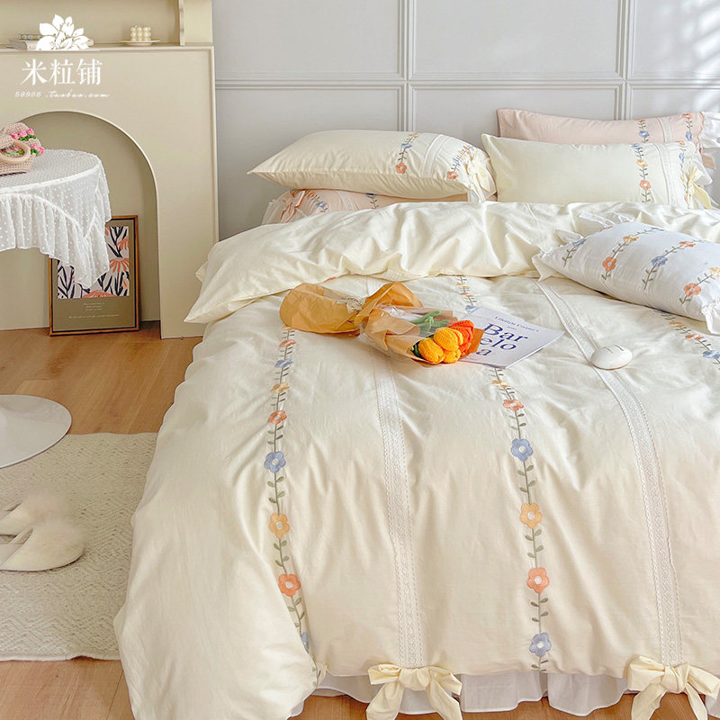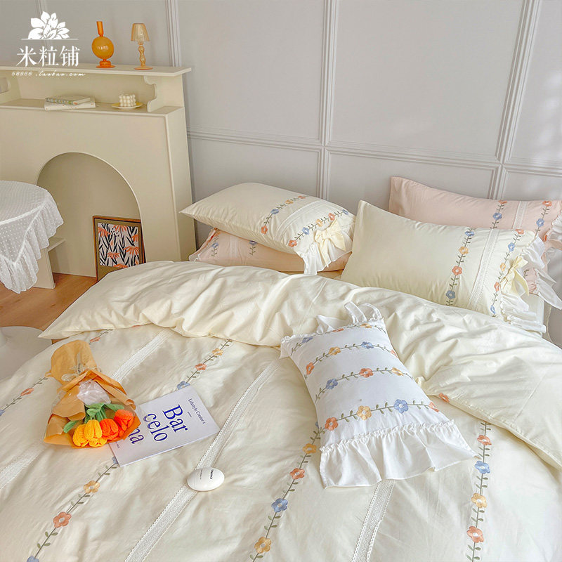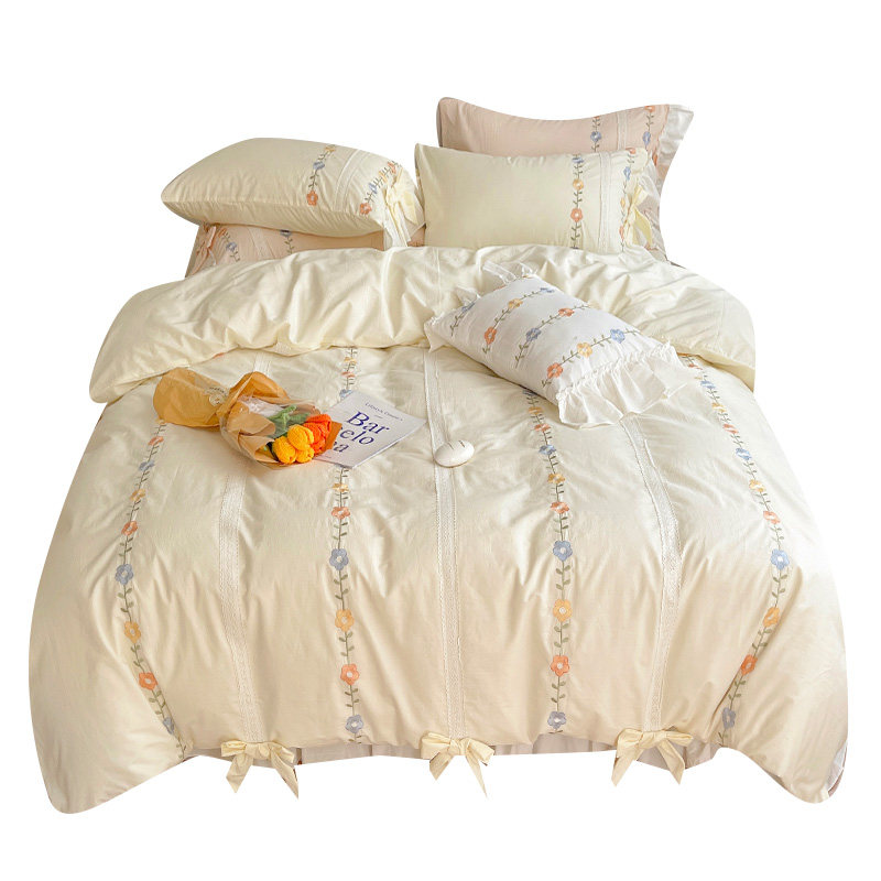 Сливочный брендовый хлопковый комплект в форме цветка, одеяло, пододеяльник, кровать, покрывало, 4 предмета, с вышивкой