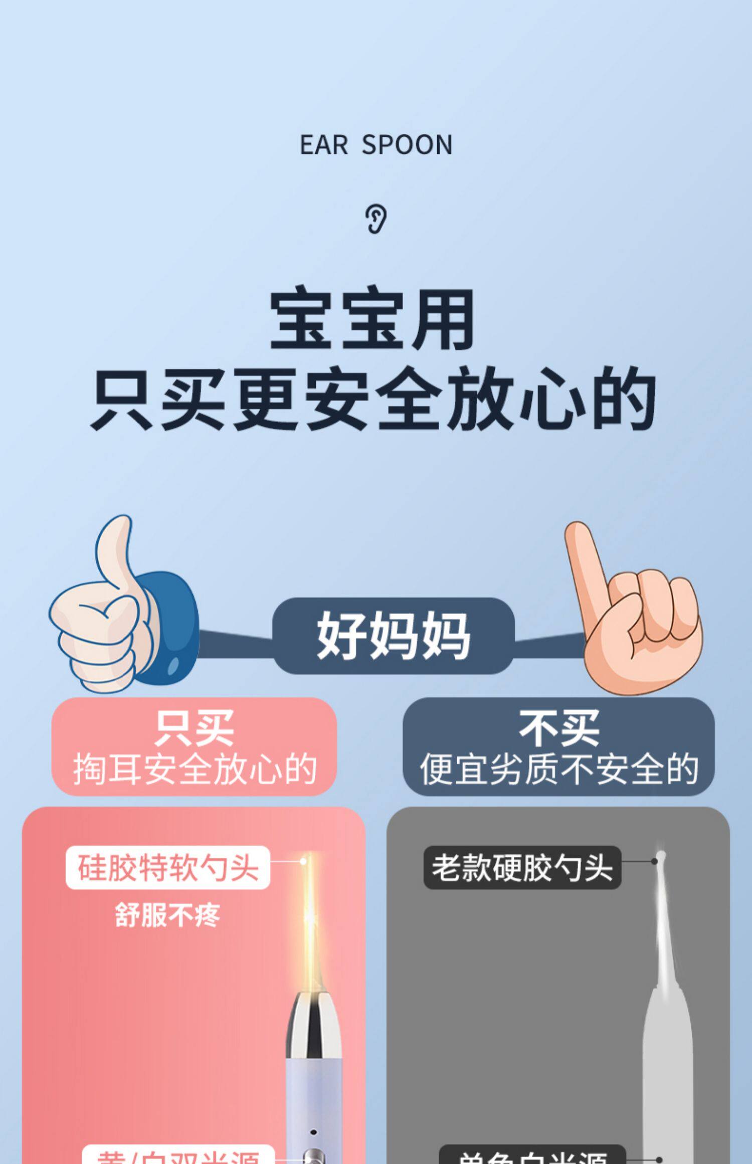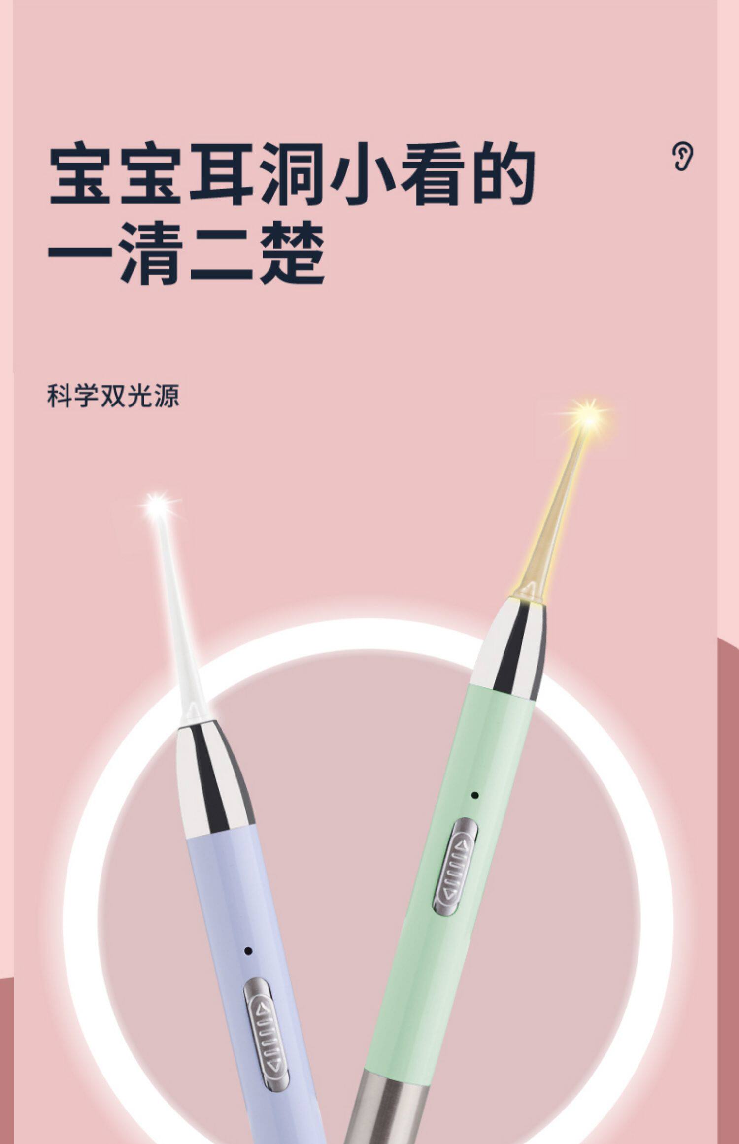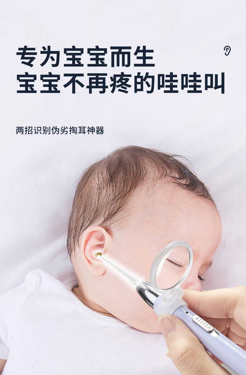 Нескользящая светящаяся детская безопасная ухочистка с зарядкой для ушей