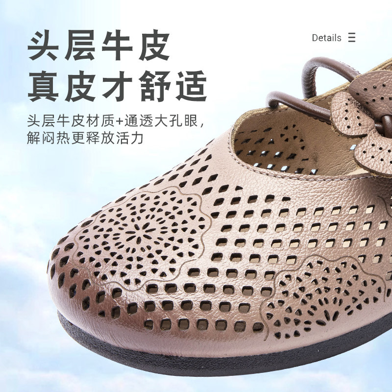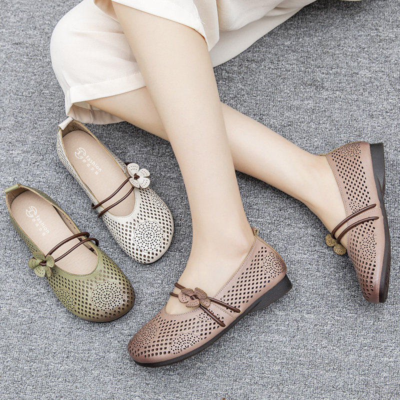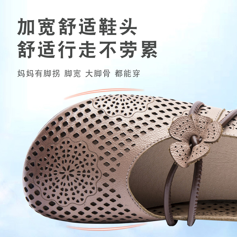 Сандалии для матери, комфортная этническая спортивная обувь для кожаной обуви, мягкая подошва, из натуральной кожи, для среднего возраста, этнический стиль