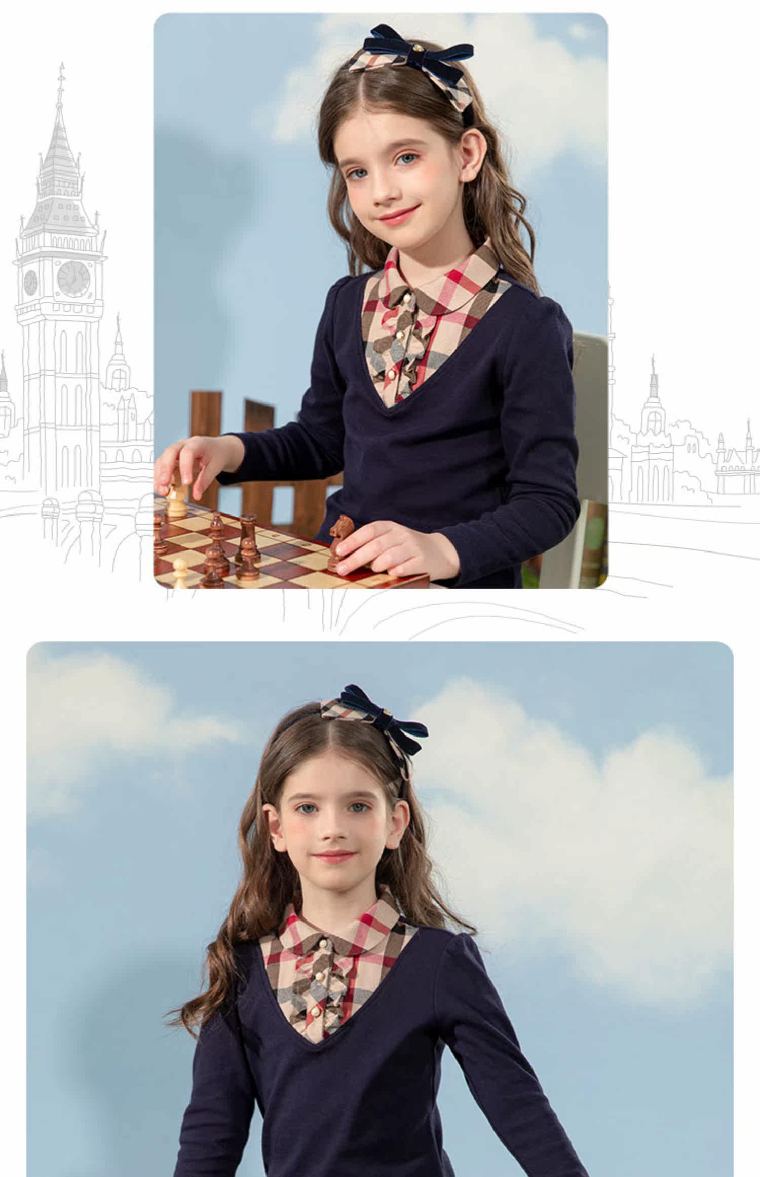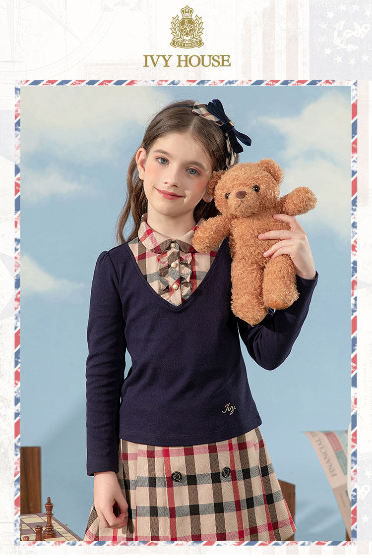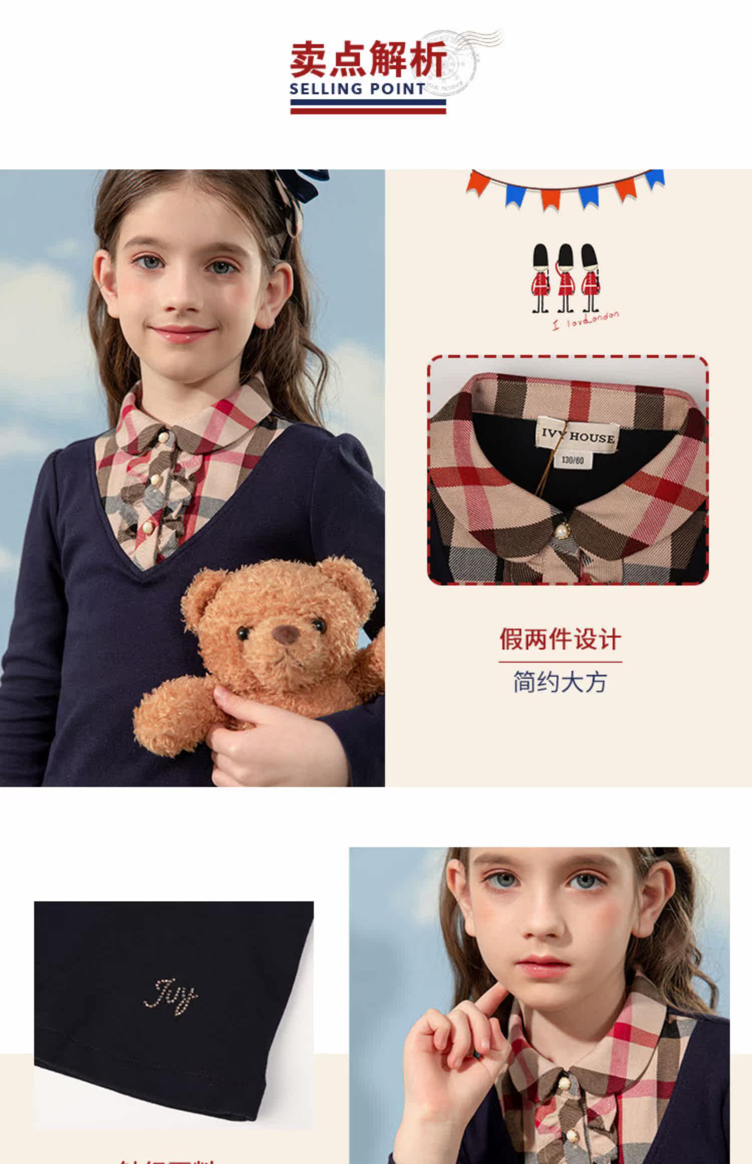 Айви -Хаус Чун Тенг Детский формирование девочек Осень Новая подделка с двумя священными курткой Лаурет Британская Академия Ветер