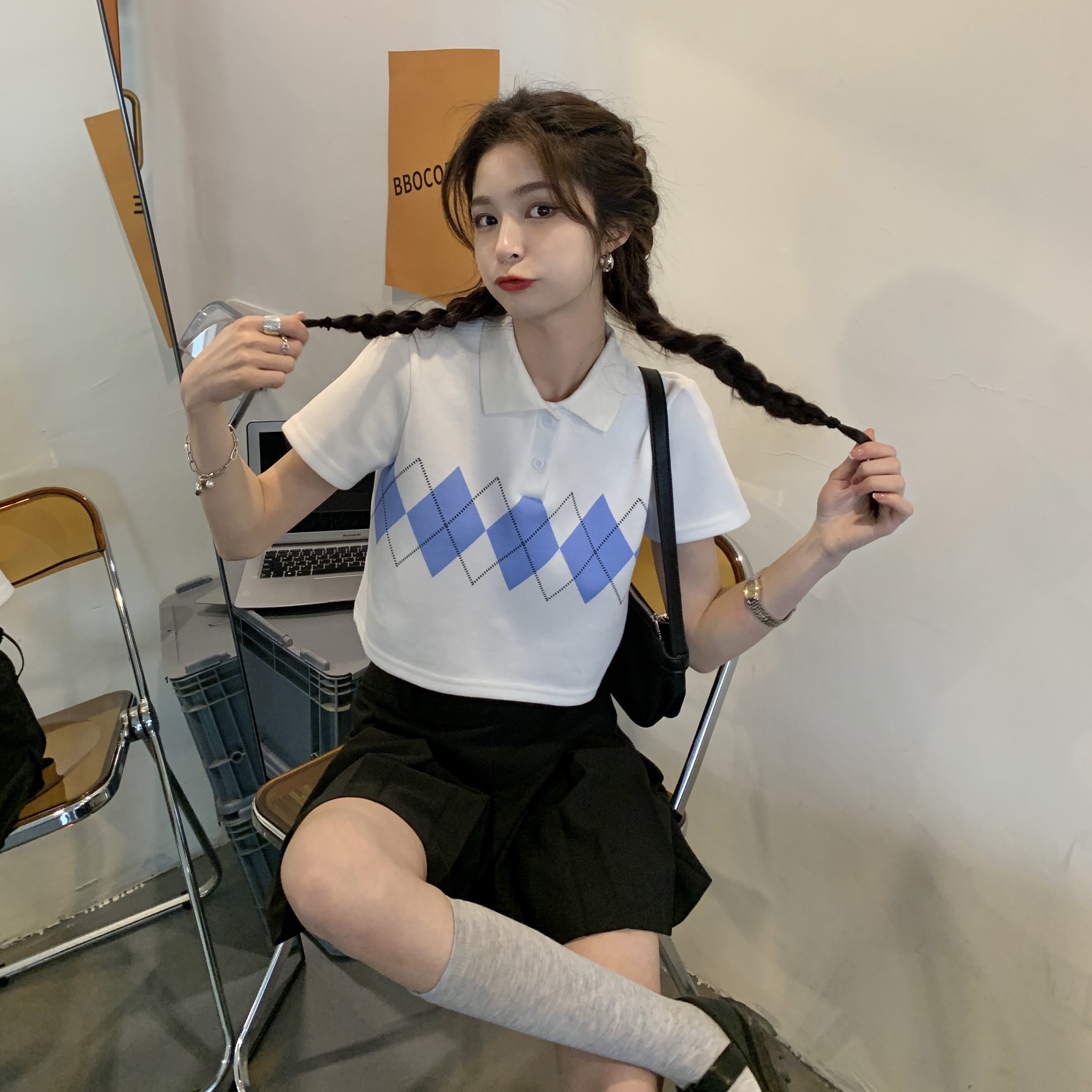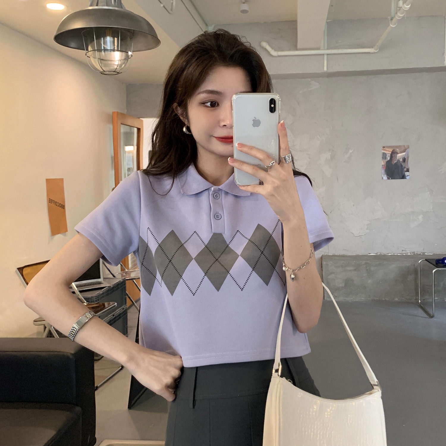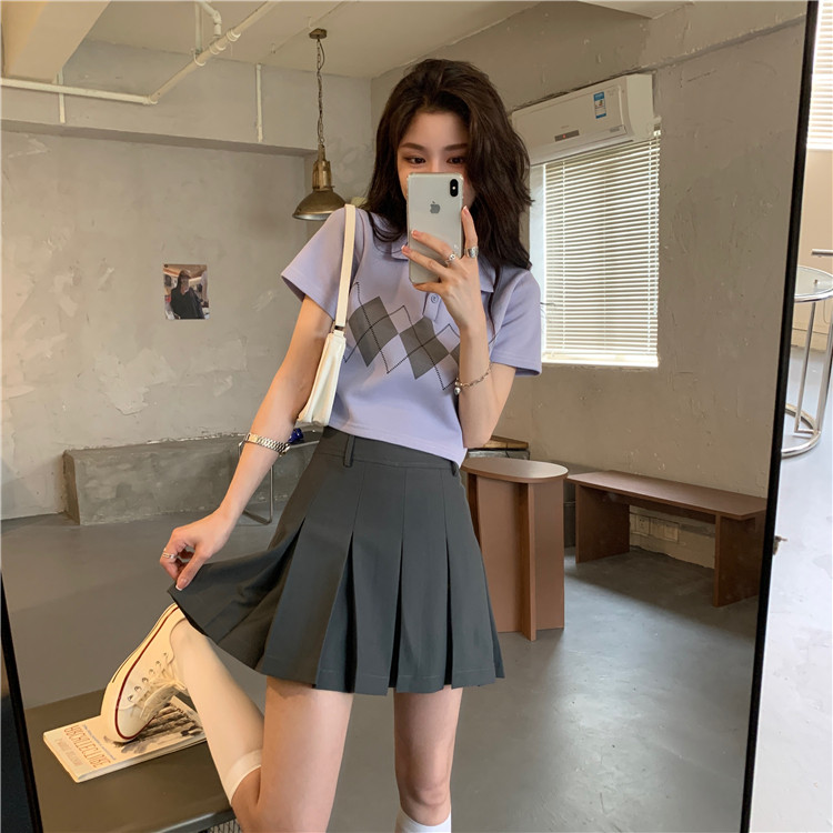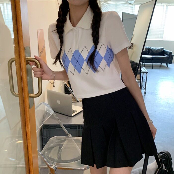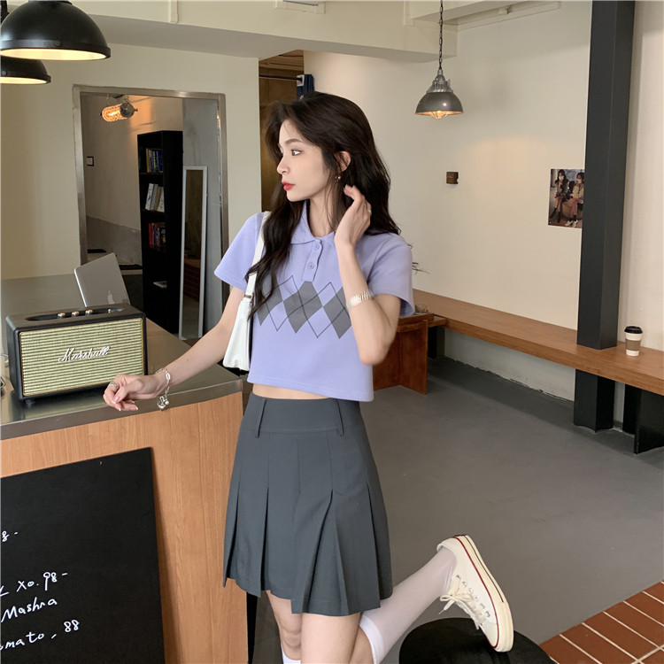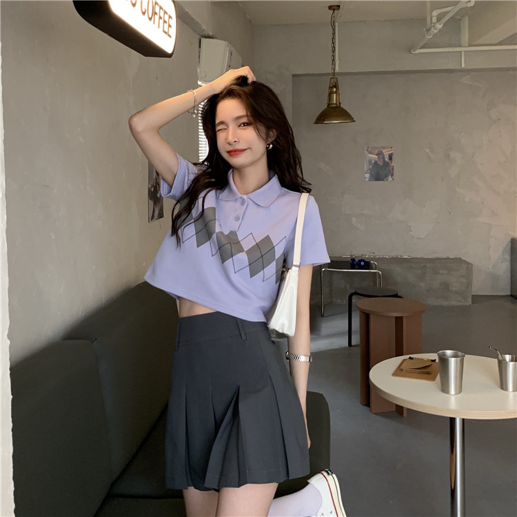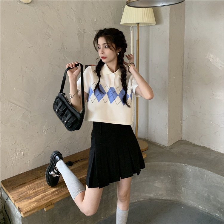 Tide, летняя ретро короткая дизайнерская футболка с коротким рукавом с ромбовидным узором, тренд сезона, воротник поло