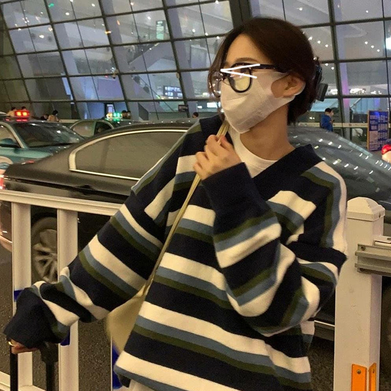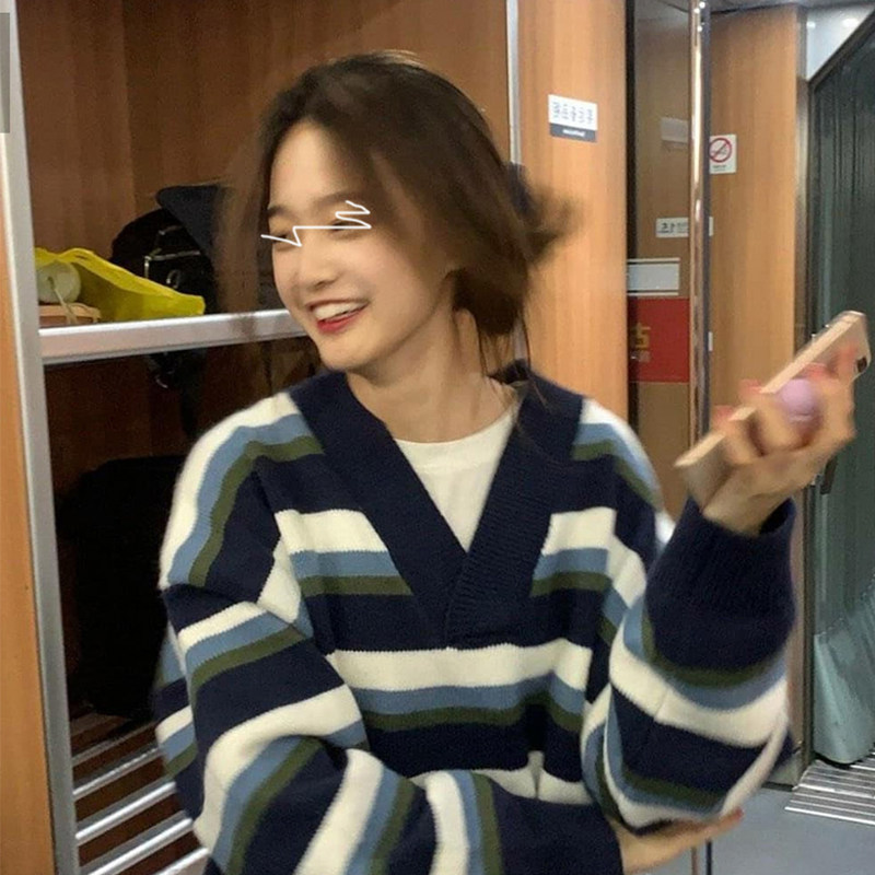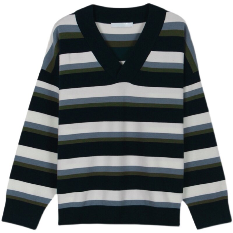 Ретро японский осенний свитер, синий трикотажный лонгслив, в корейском стиле