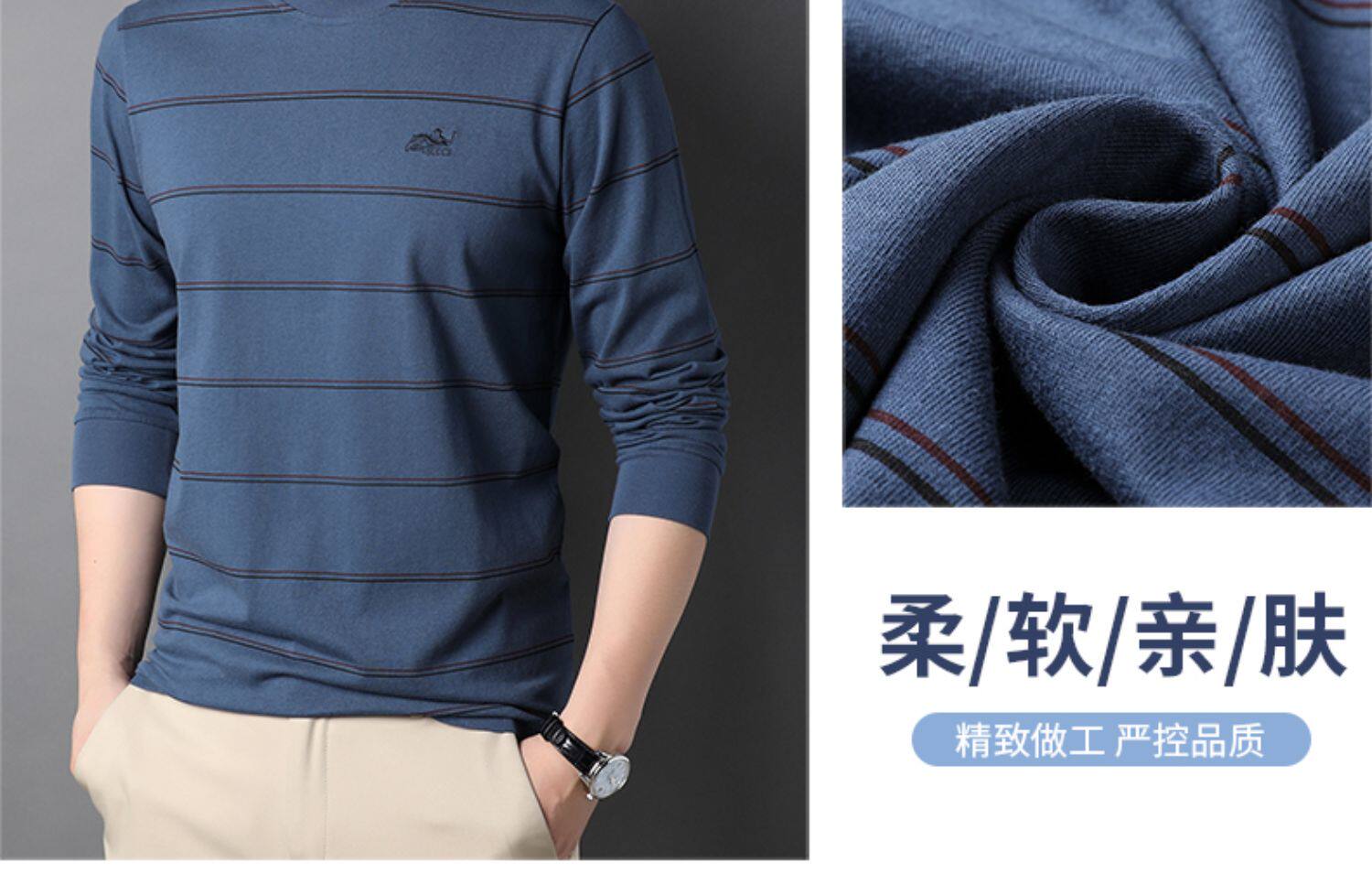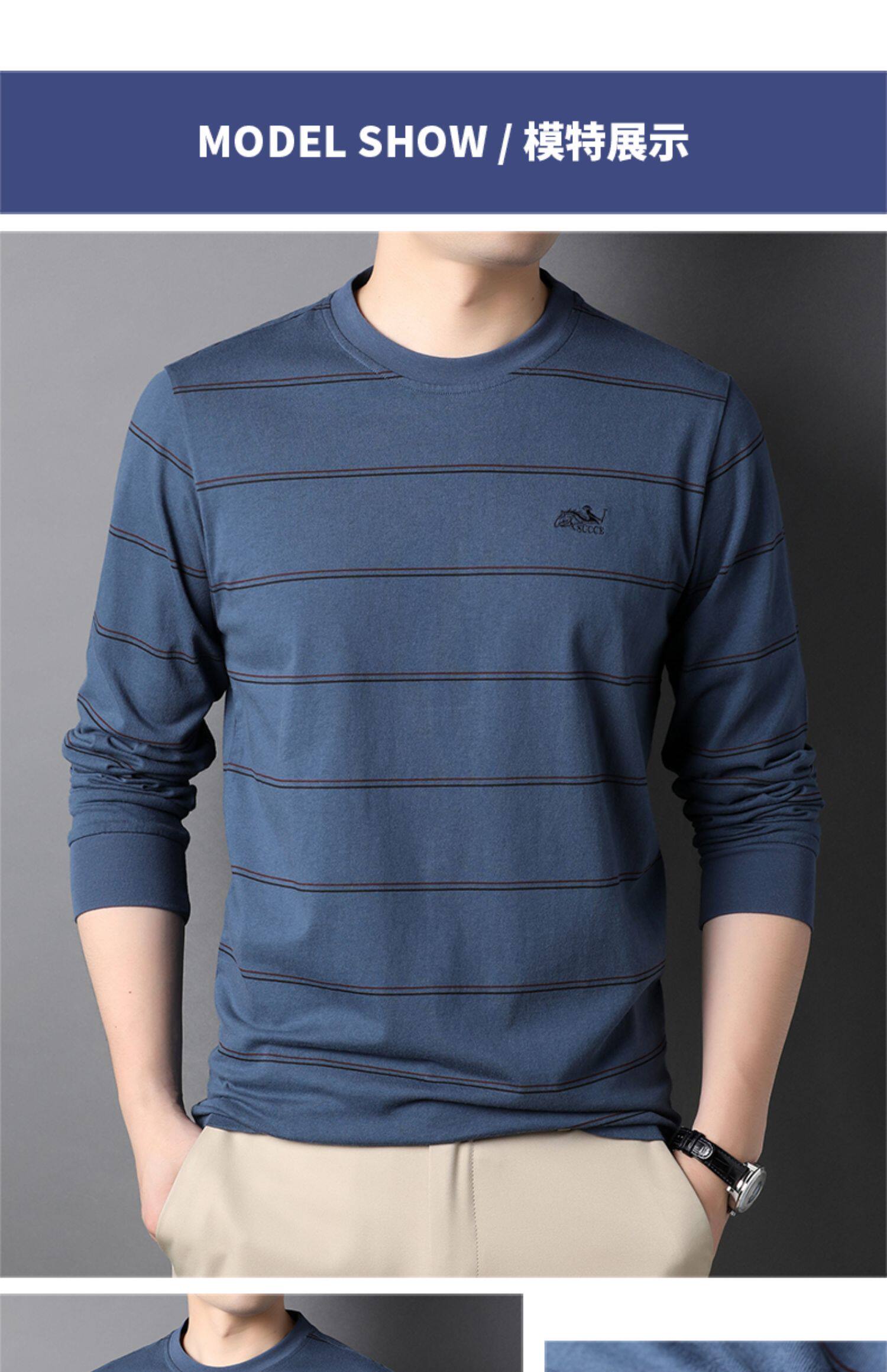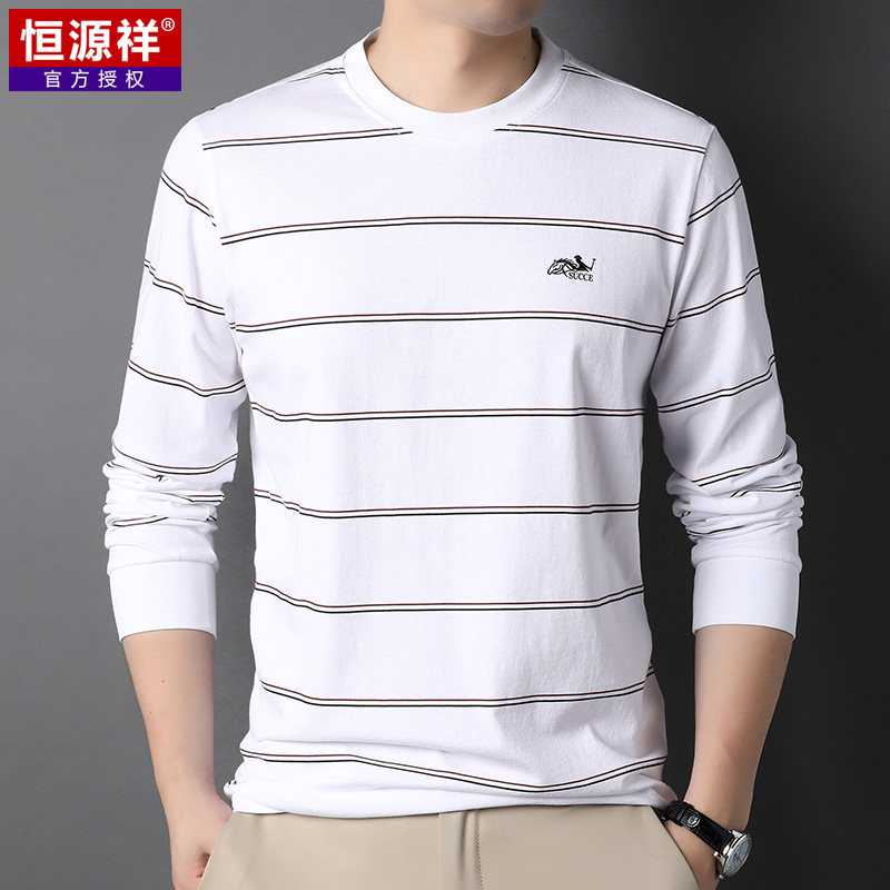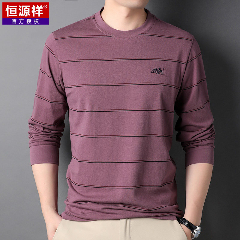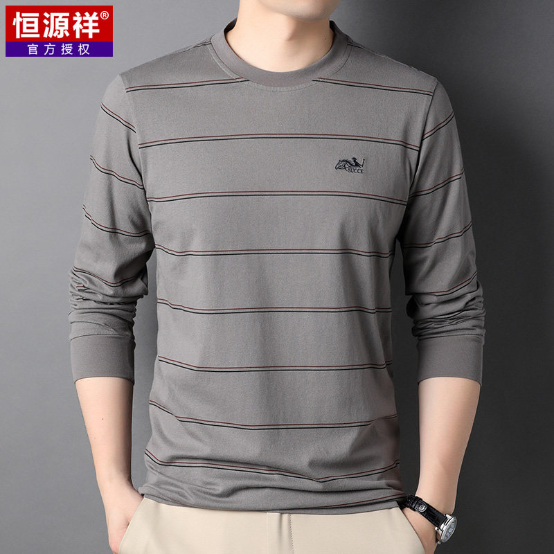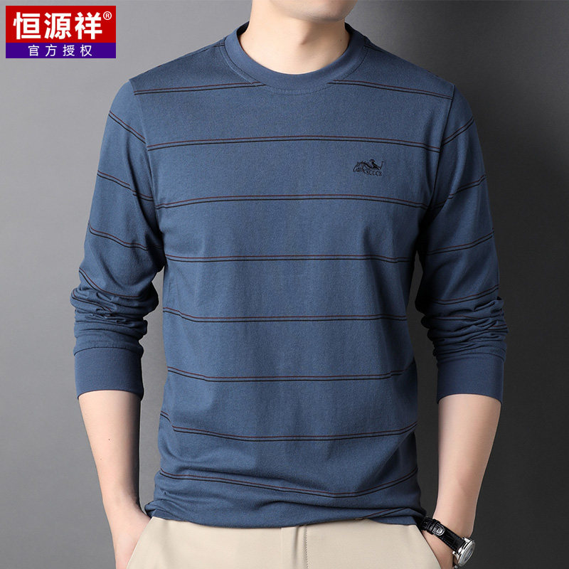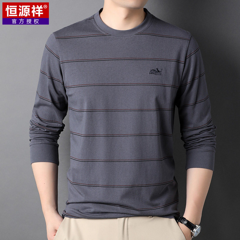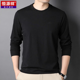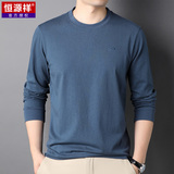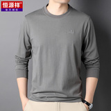 恒源祥 Мужской хлопковый осенний базовый приятный телу лонгслив с круглым воротником, с вышивкой, оверсайз, для мужчины среднего возраста