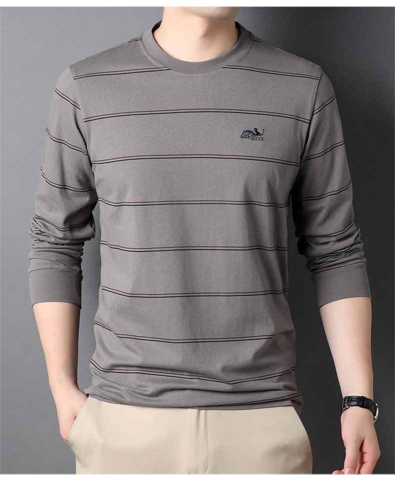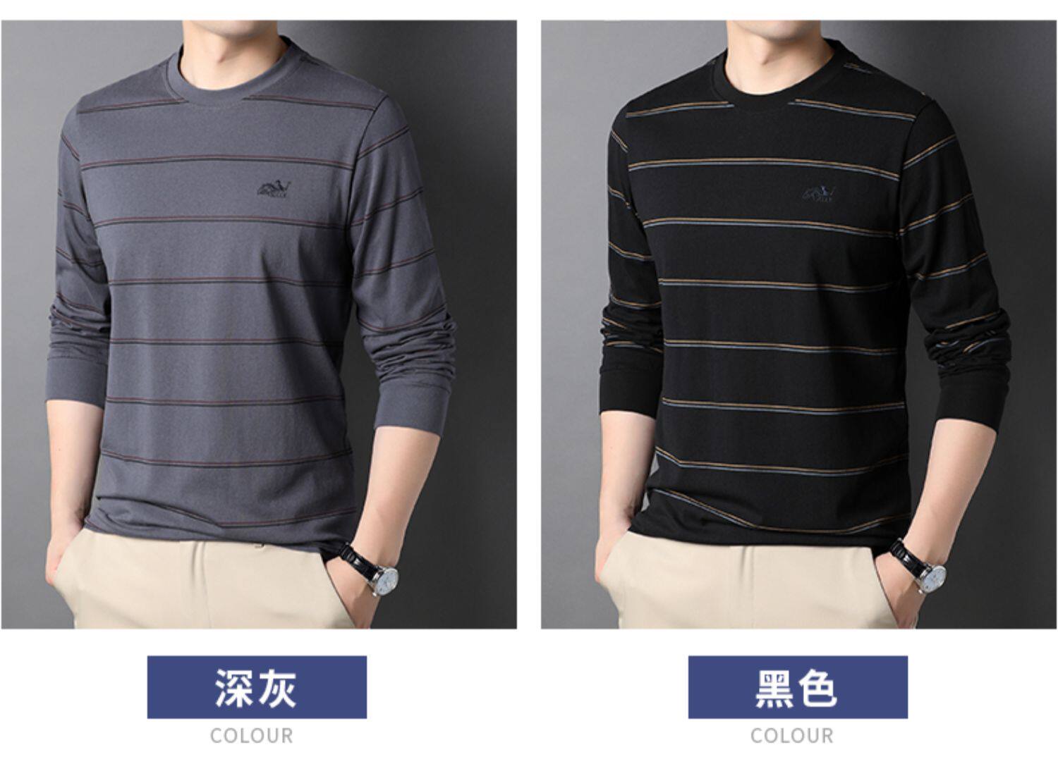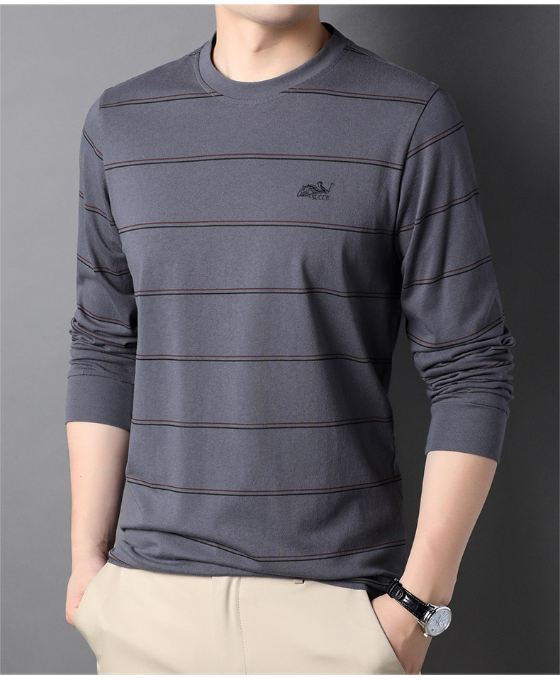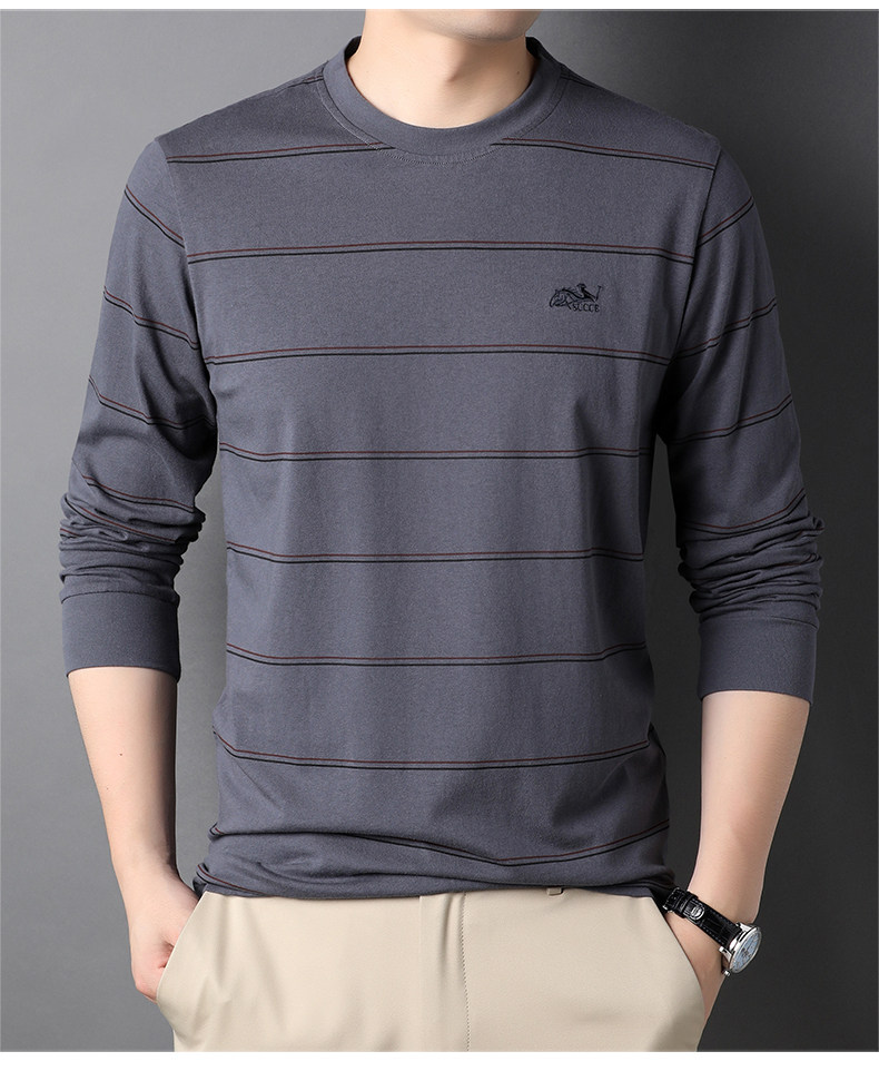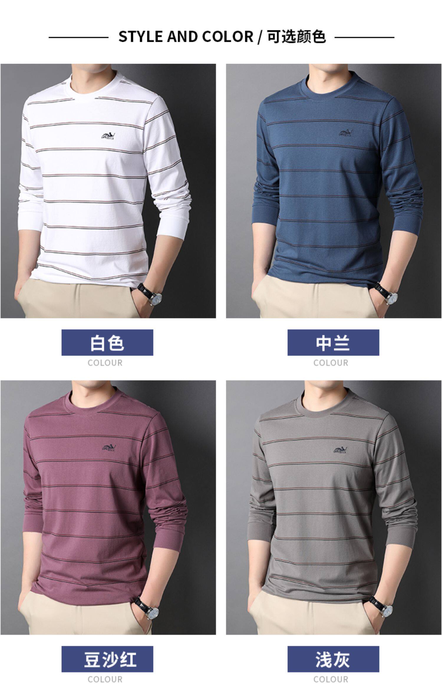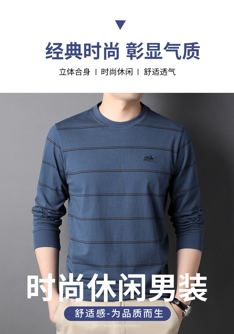 恒源祥 Мужской хлопковый осенний базовый приятный телу лонгслив с круглым воротником, с вышивкой, оверсайз, для мужчины среднего возраста
