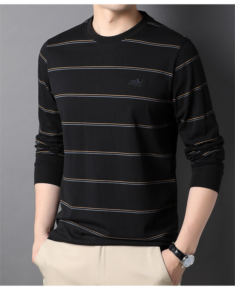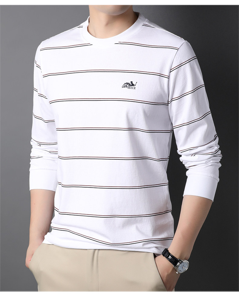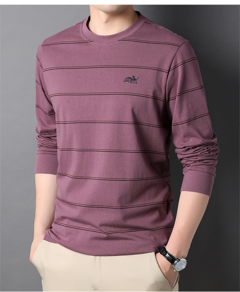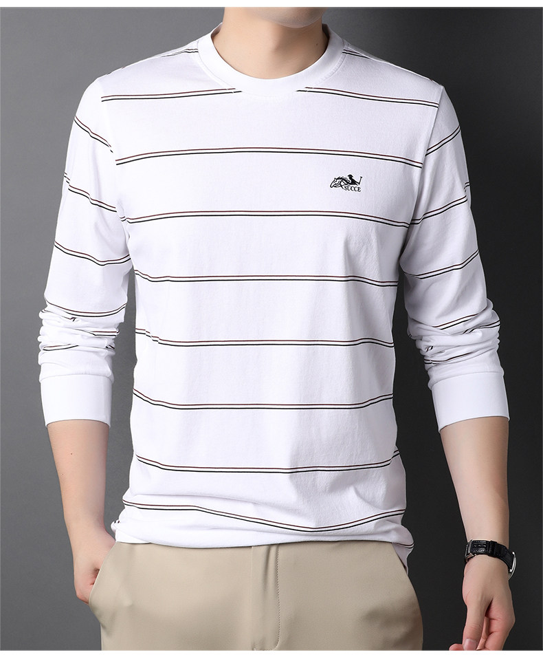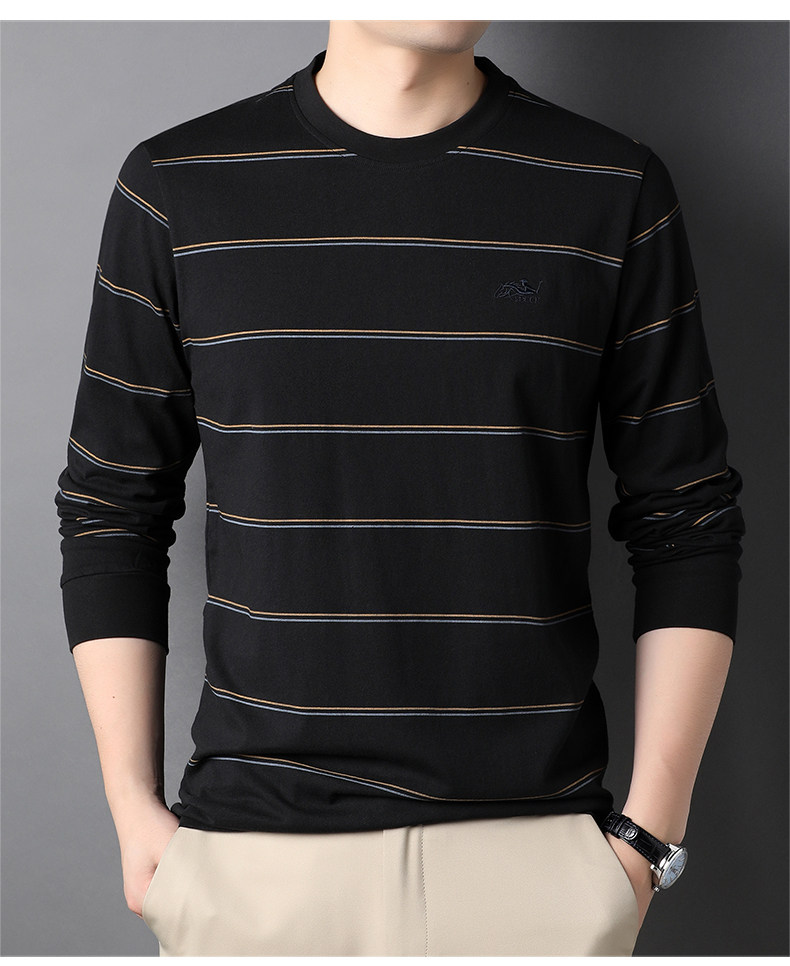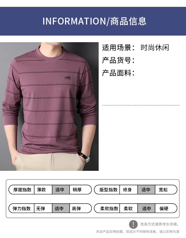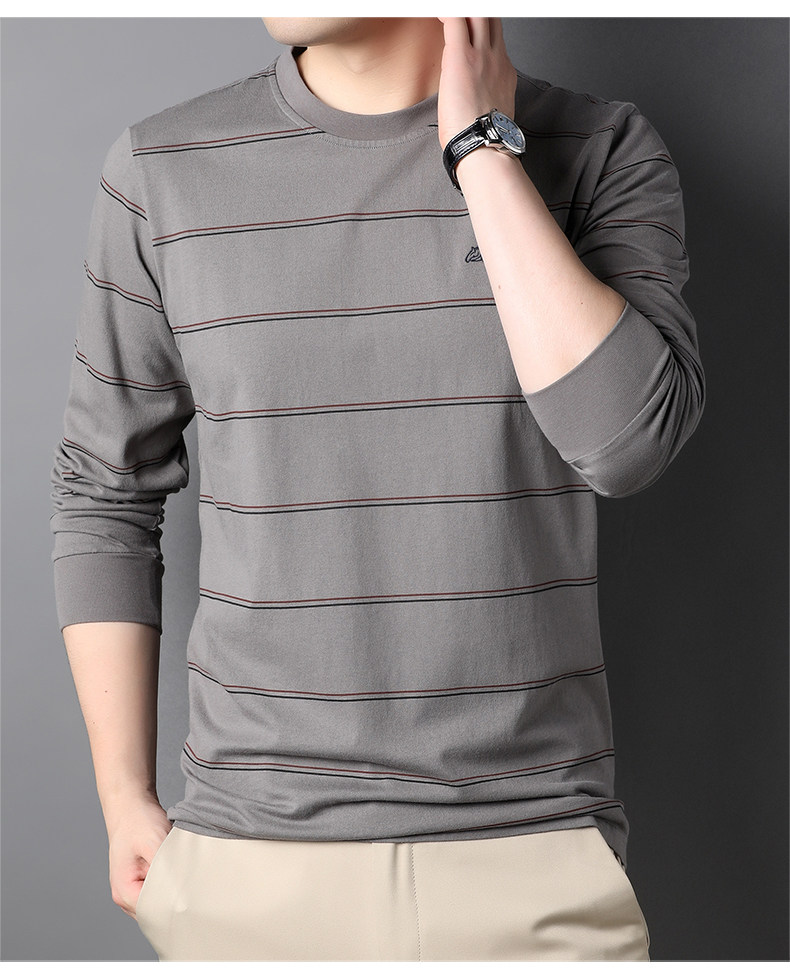 恒源祥 Мужской хлопковый осенний базовый приятный телу лонгслив с круглым воротником, с вышивкой, оверсайз, для мужчины среднего возраста