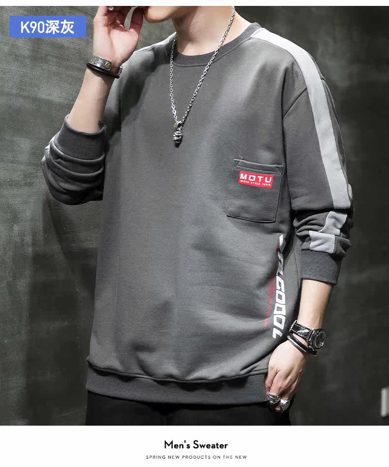 Мужская осенняя демисезонная толстовка, трендовое термобелье с круглым воротником, лонгслив, куртка, 2021 года, оверсайз