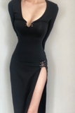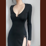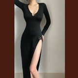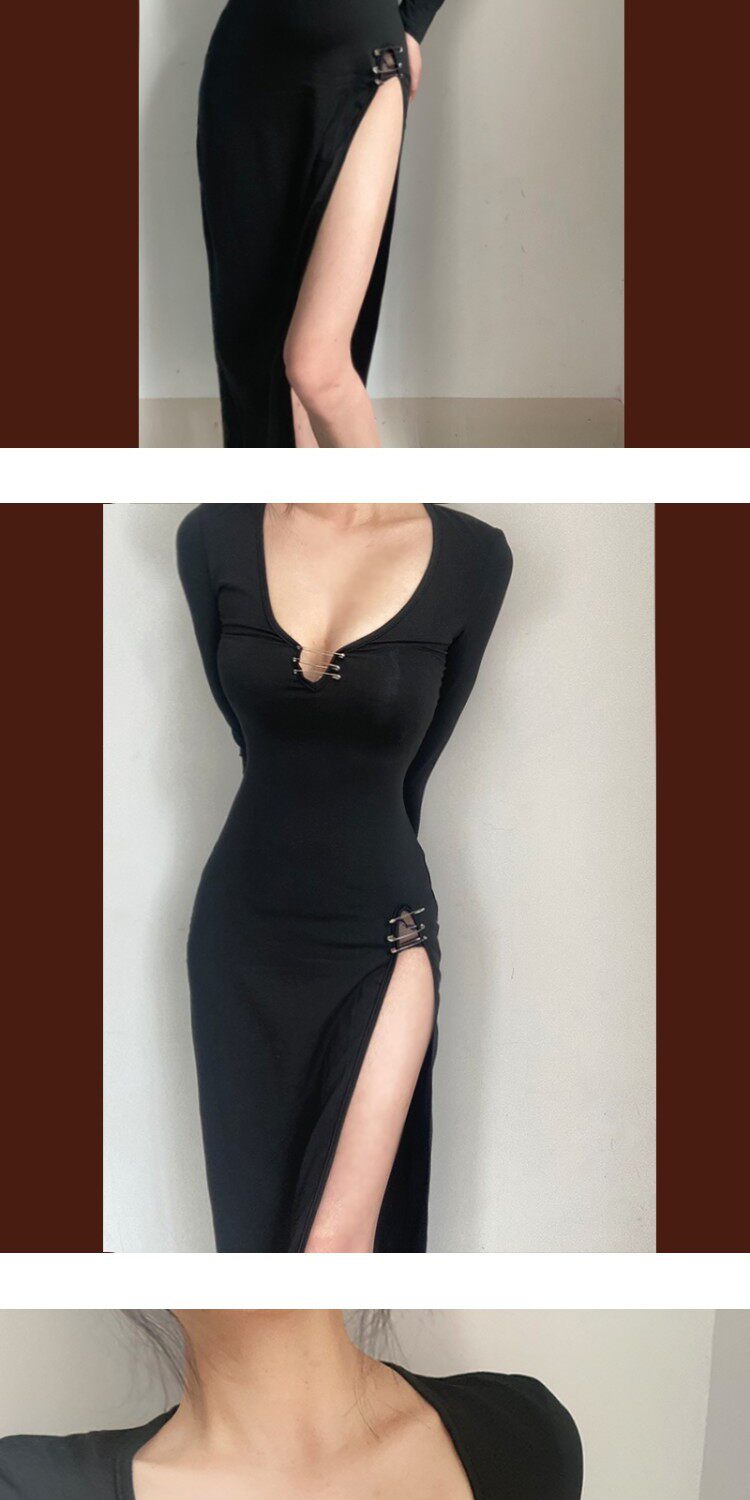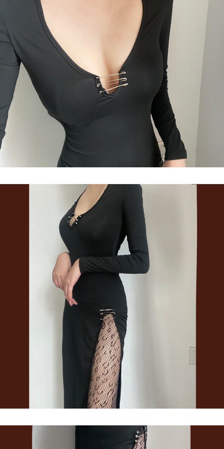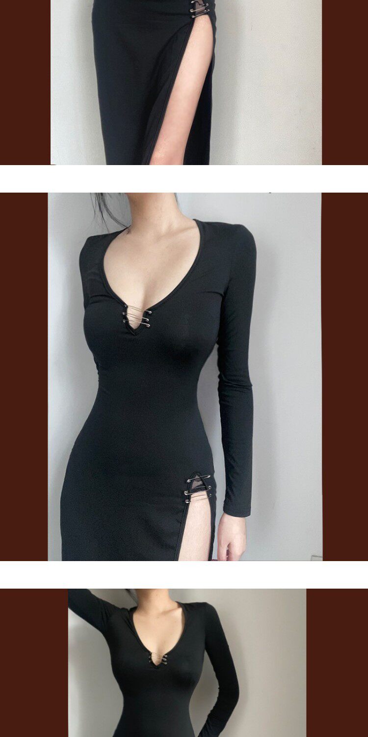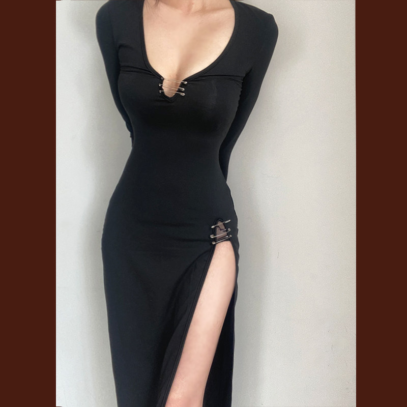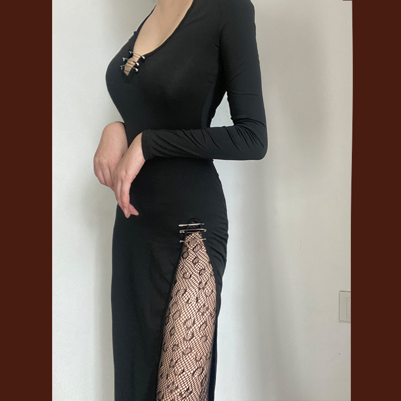 Черное платье, корсет, лонгслив, длинная юбка, европейский стиль, в обтяжку, с акцентом на бедрах