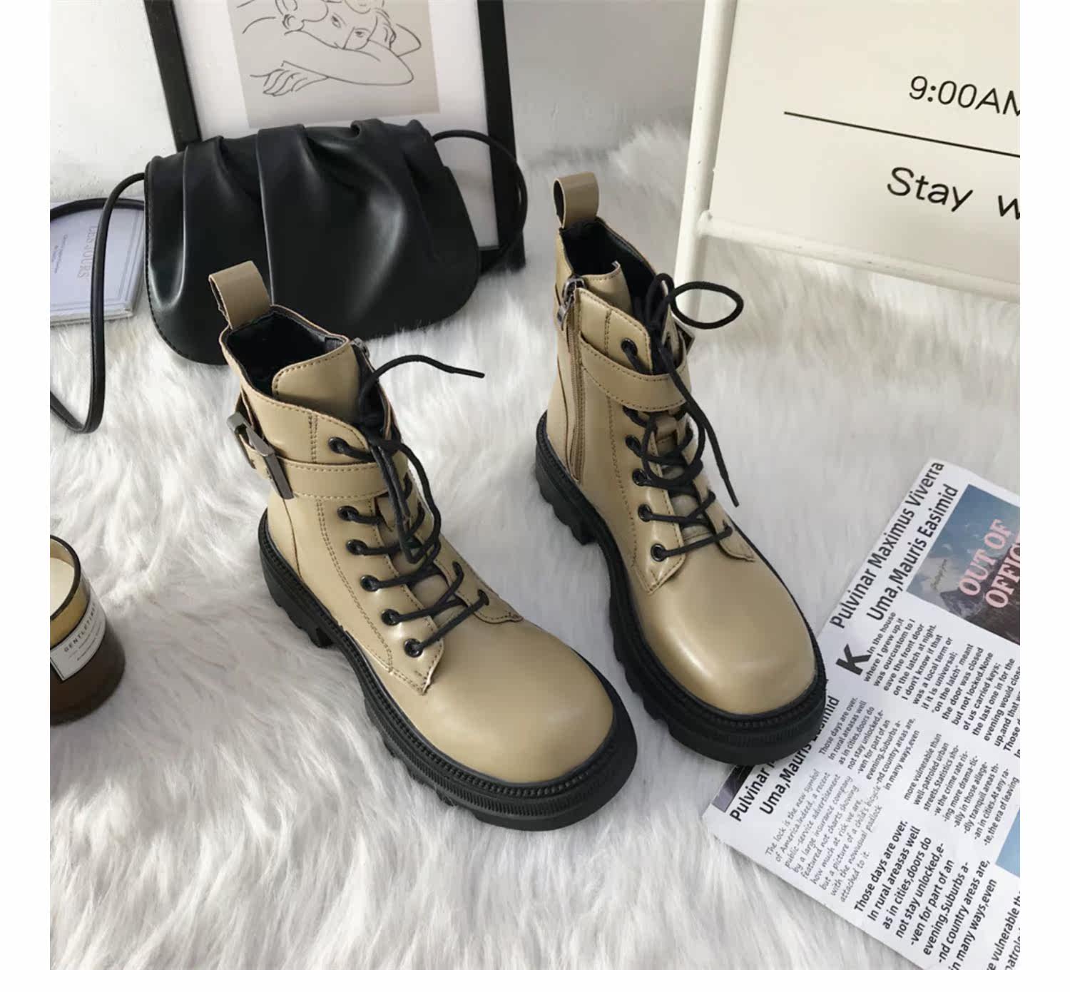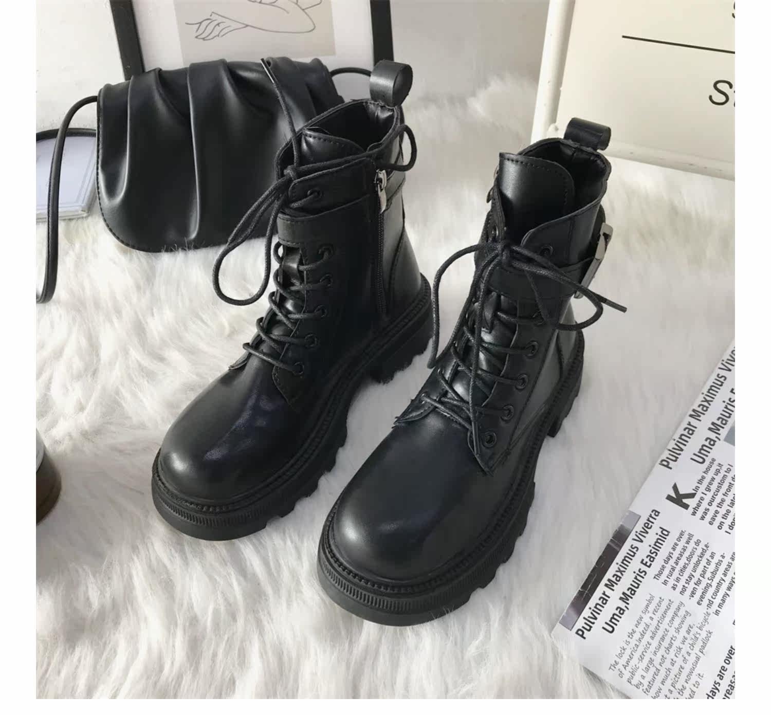 Martin Boots Женские осени 2021 г. Новый черный заголовок Woods Fashion Elmononic British Wind Retro Retro Motor