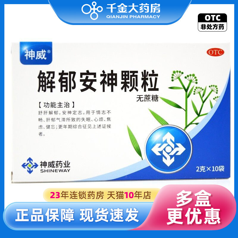 Shineway/Shenwei jieyu anshen гранулы 10 мешков с тревожностью без сахара, бессонницы, успокаивает всплеск, беспокойство, менопауза