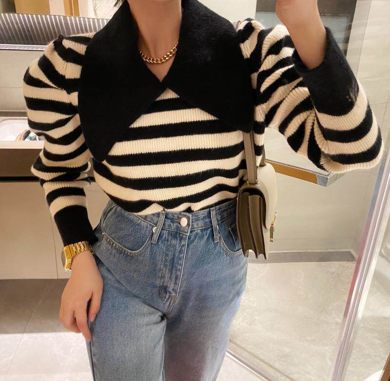 Демисезонный свитер, ретро трикотажная короткая кукла, футболка, кукольный воротник, облегающий крой, рукава фонарики