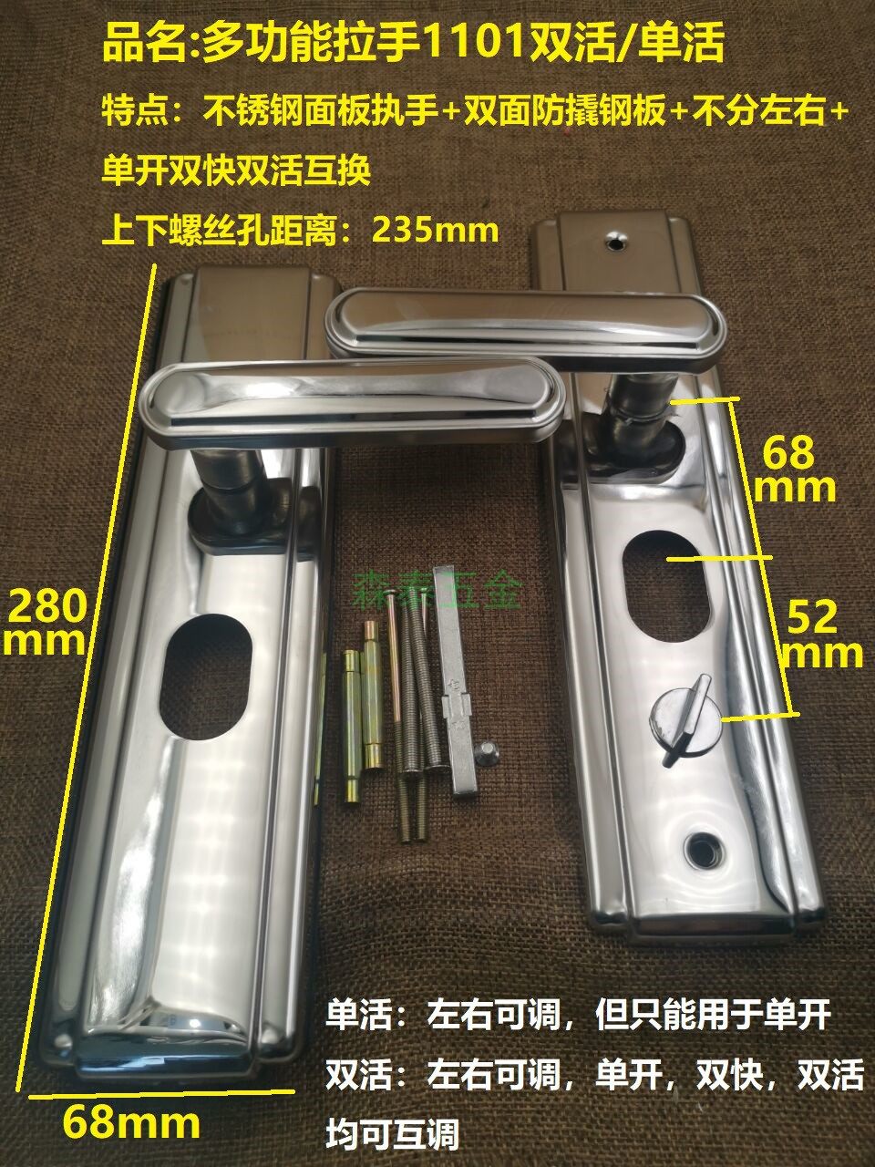 Групповая дверная дверная полоса из ручной полосы из нержавеющей стали двойной анти -пр -стальной дверной рука не различает роскошные дверные ручки 1010