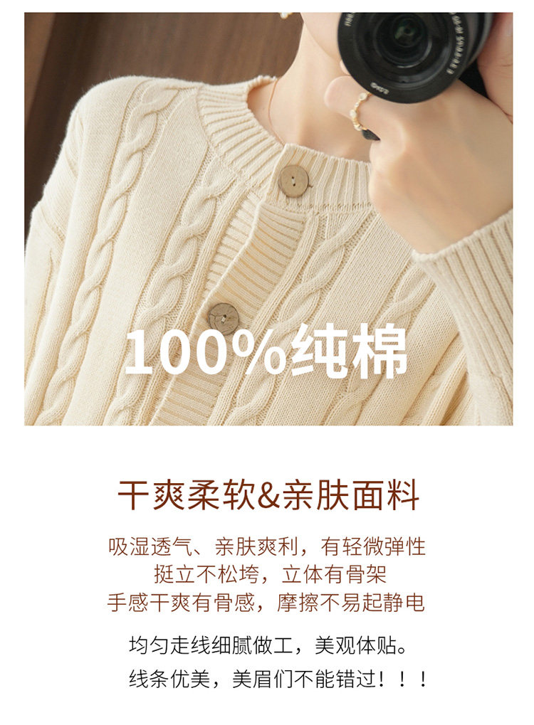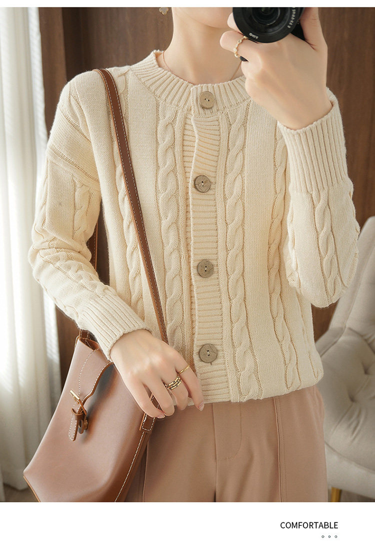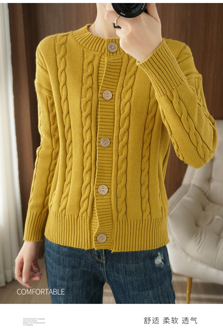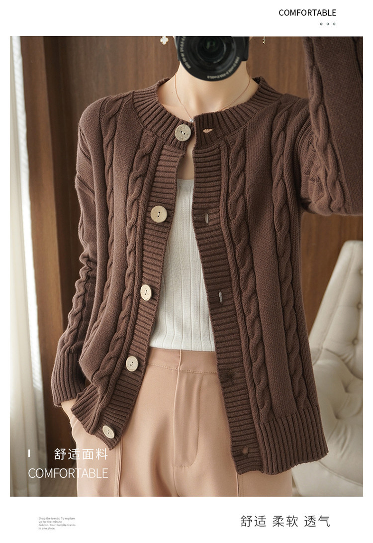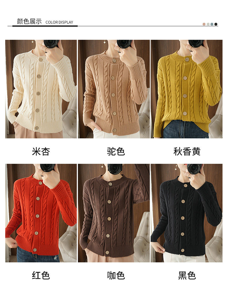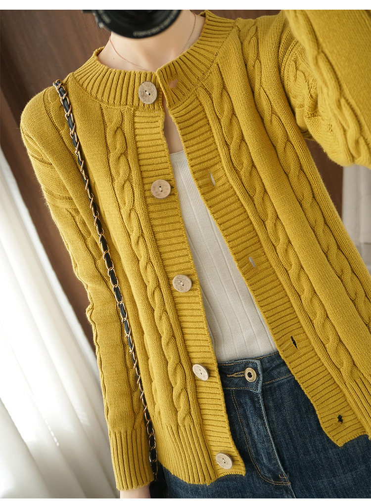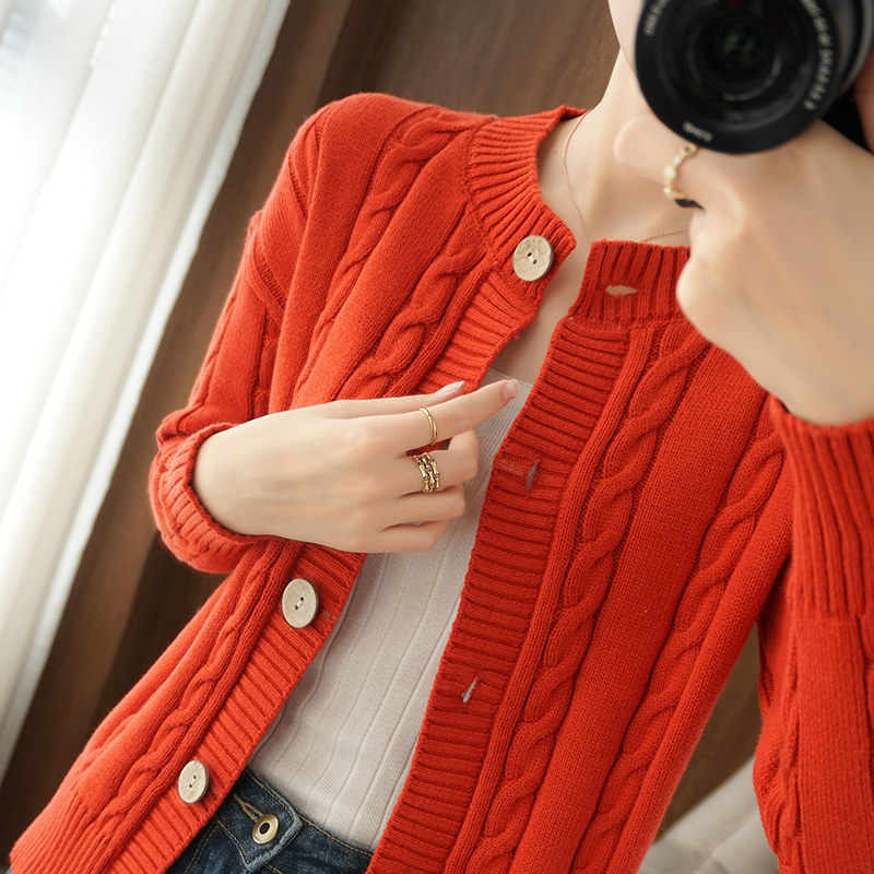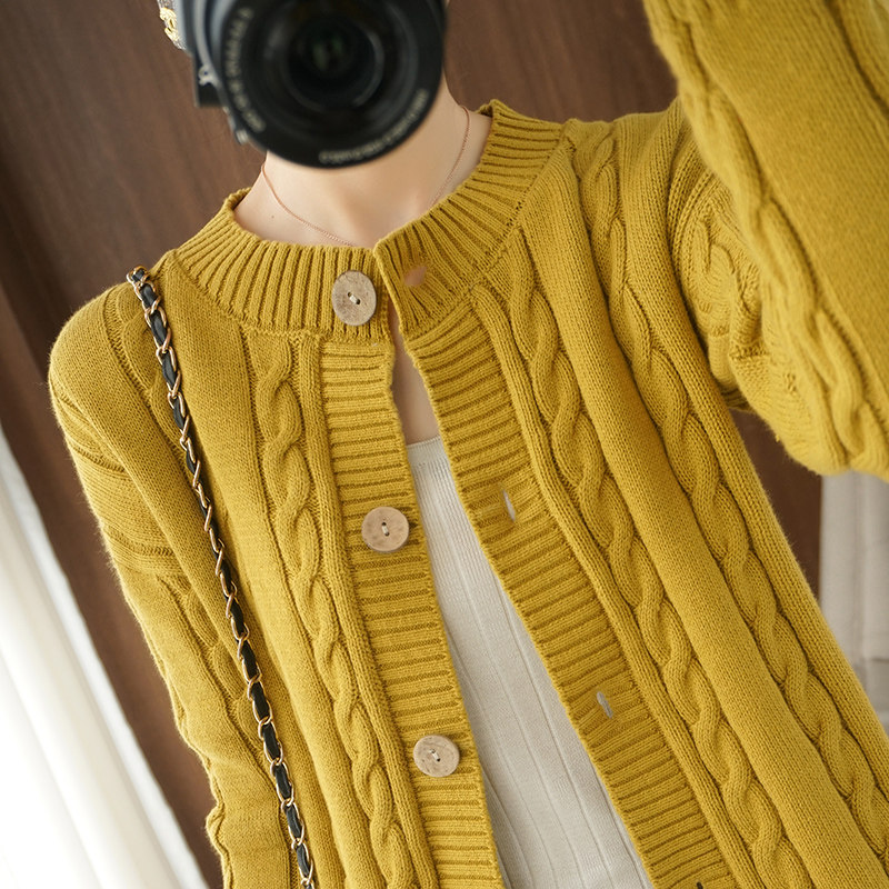 Ретро хлопковый кардиган, куртка с круглым воротником, лонгслив, утепленный короткий свитер