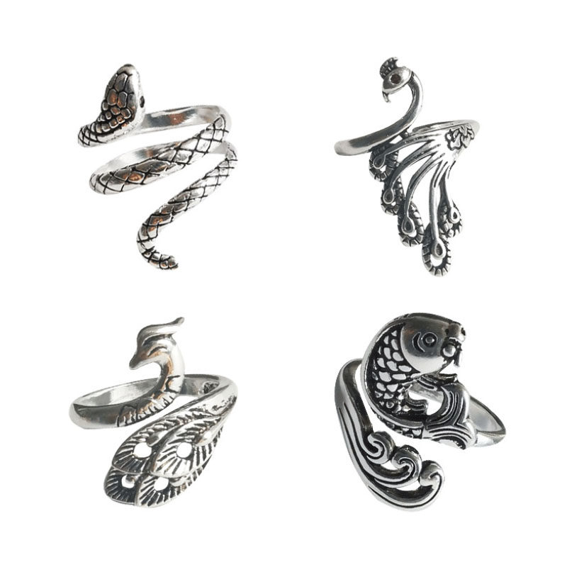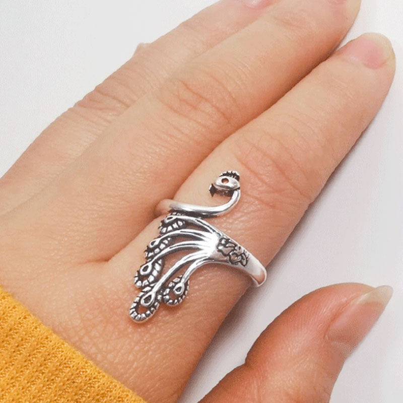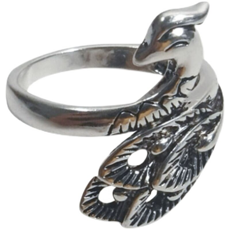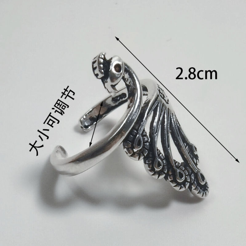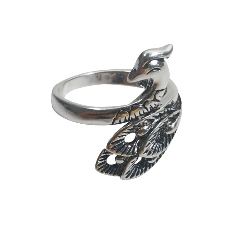 Ретро трехмерное кольцо серебряного павлина для женщин, живущих в рот старый ювелирный крюк