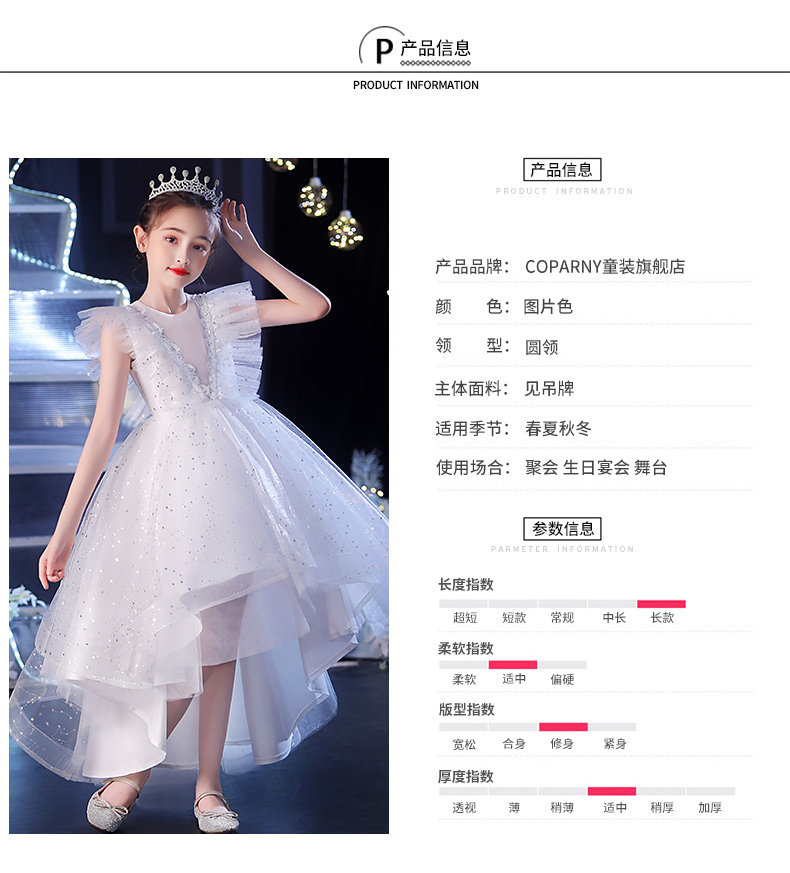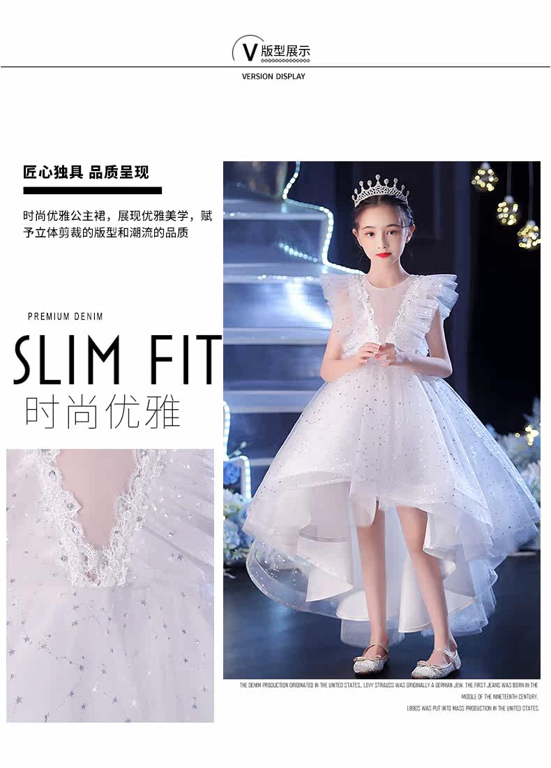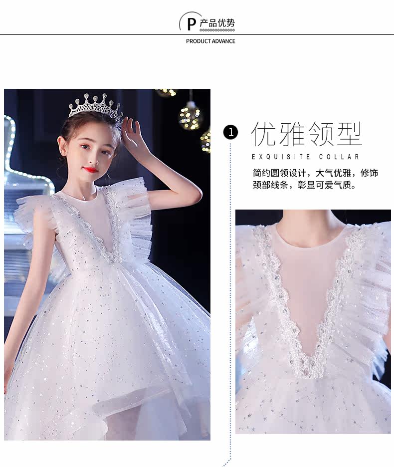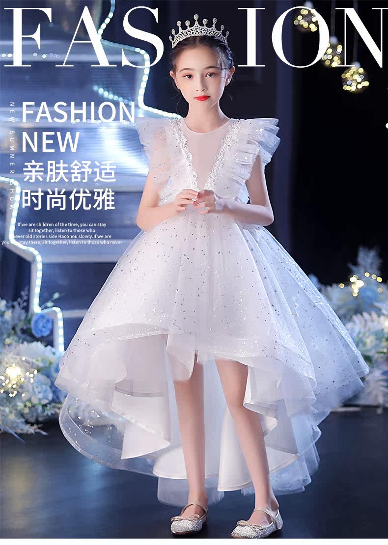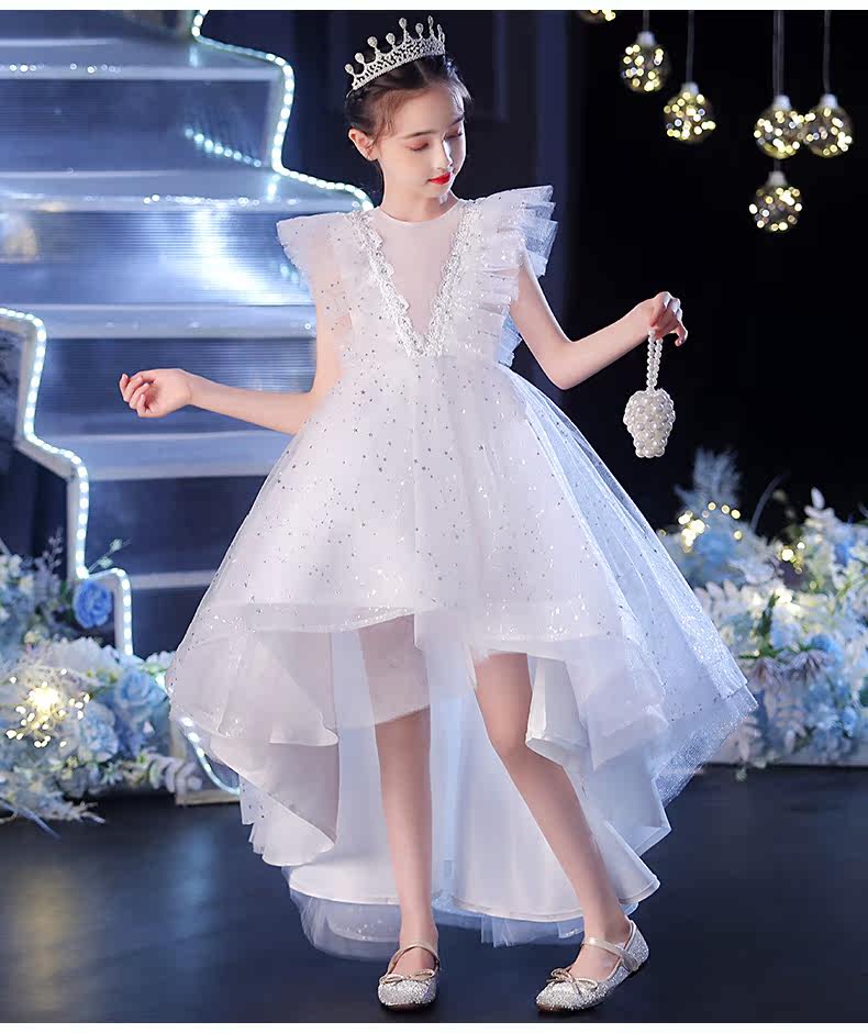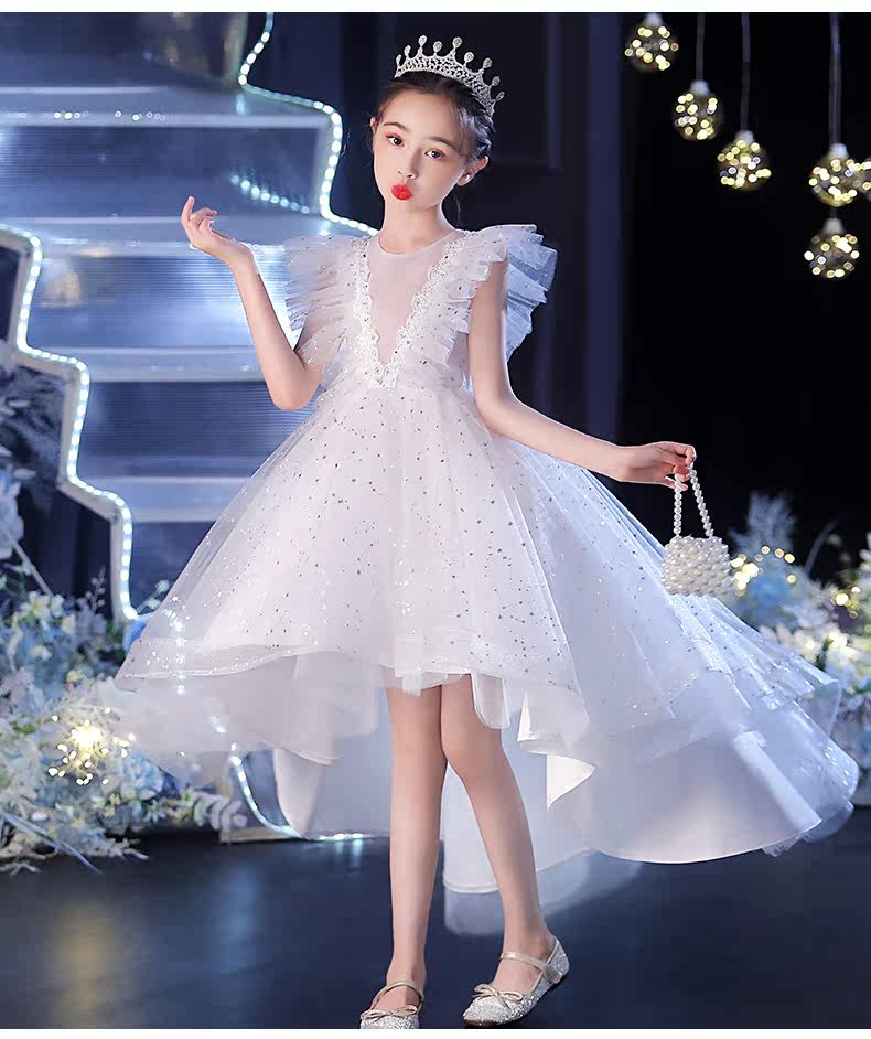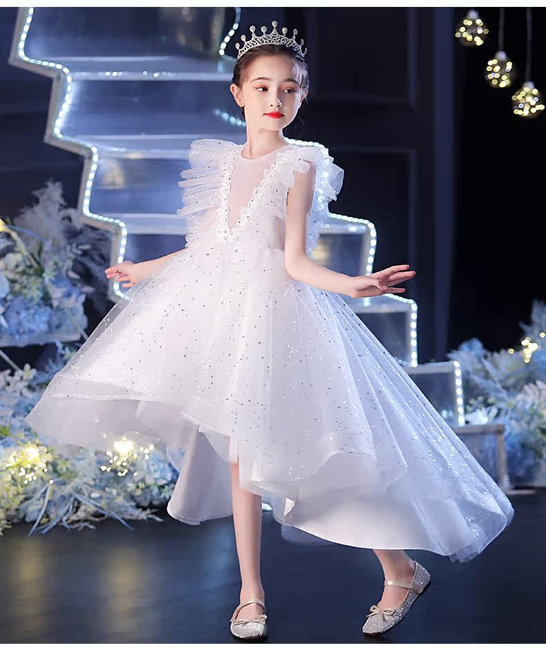 Элитное детское платье, белый наряд маленькой принцессы, наряд для музыкальных выступлений, в западном стиле