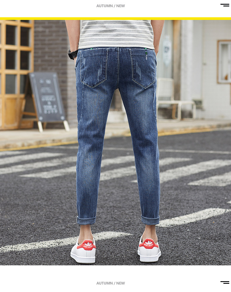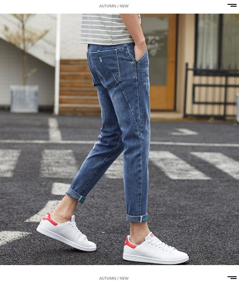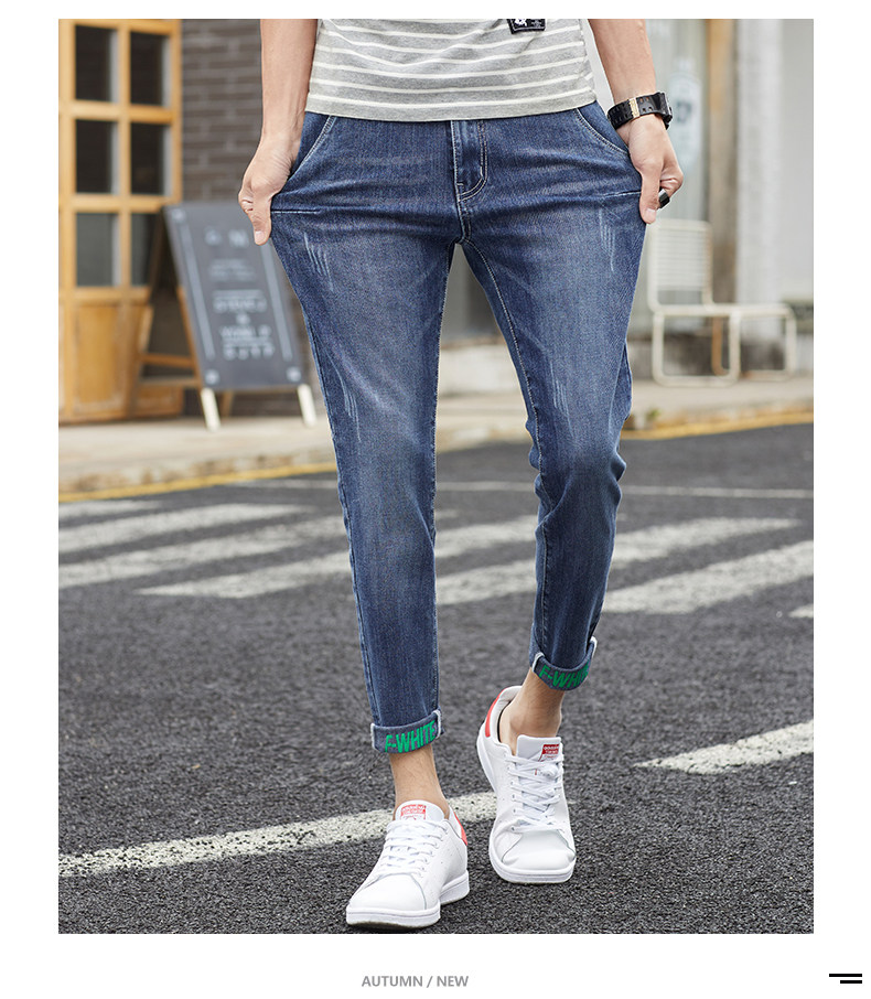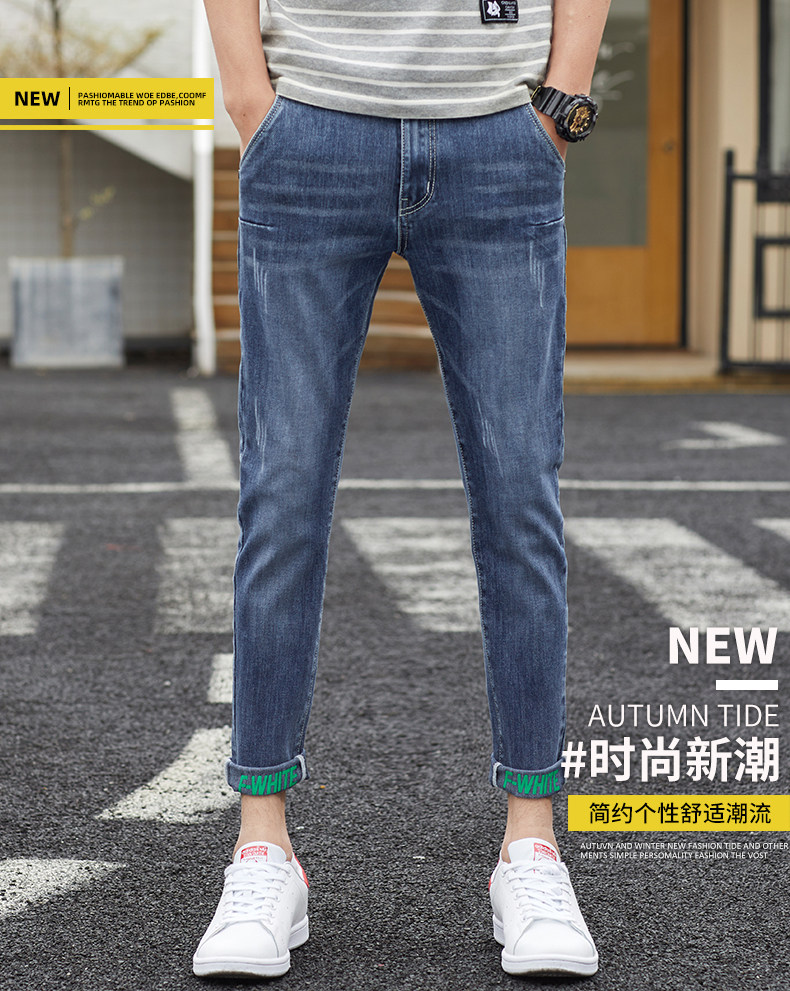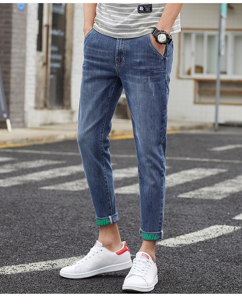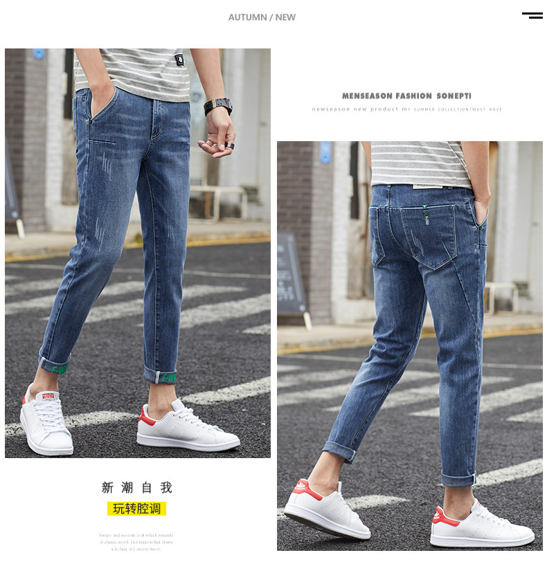 Летние тонкие джинсы, приталенные повседневные брюки, трендовые демисезонные штаны, в корейском стиле