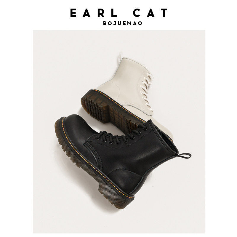 伯爵猫 Martens, весенние флисовые ботинки в английском стиле, короткие сапоги на платформе, тренд сезона, в британском стиле, из натуральной кожи