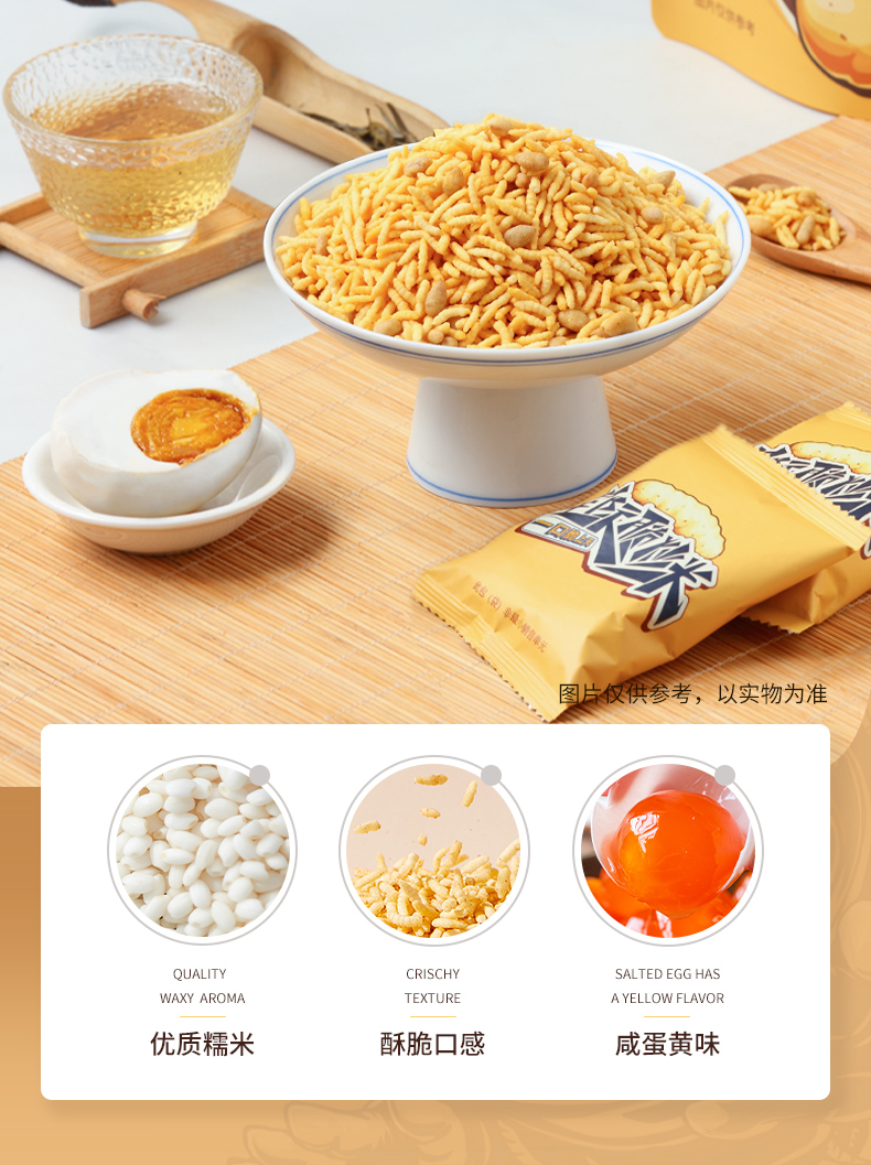| Вкус: | [Аутентичный клейкий рис, золотисто -желтый хрустящий] жареный рис/соленый яичный желток/сумка 200GX2 (около 6 маленьких мешков/мешков) |