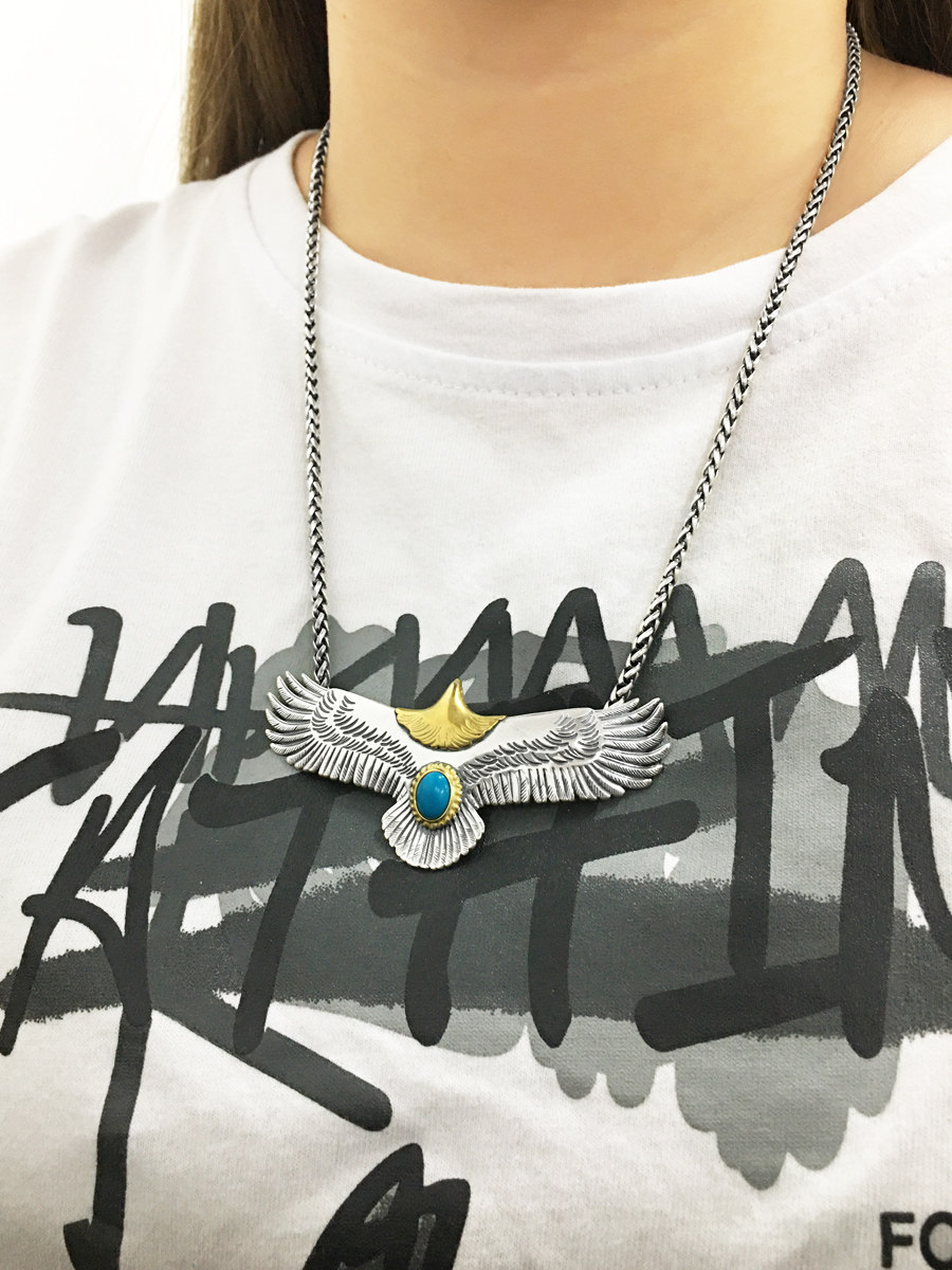 Трендовая подвеска, бирюзовая модная демисезонная инкрустация камня подходит для мужчин и женщин, серебро 925 пробы, японские и корейские