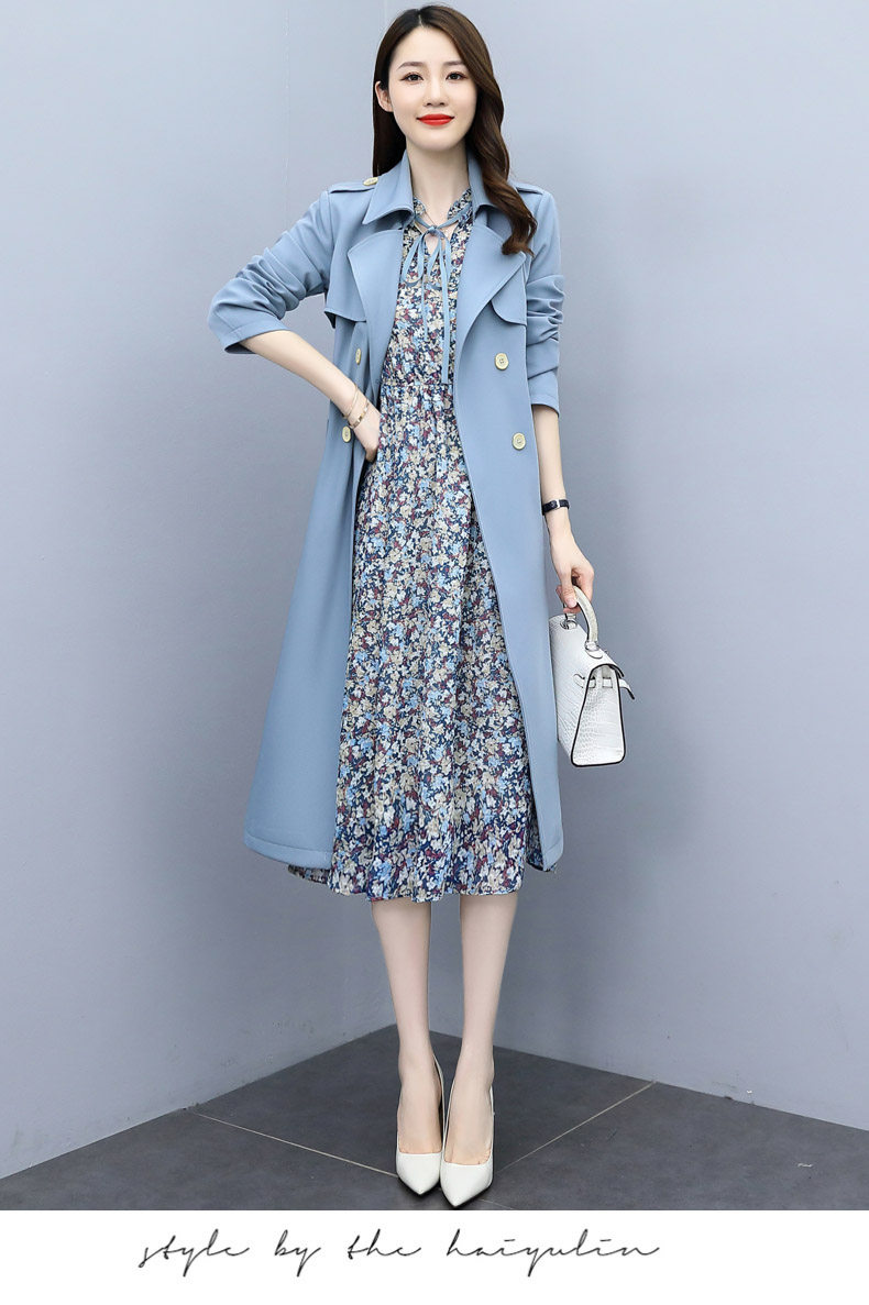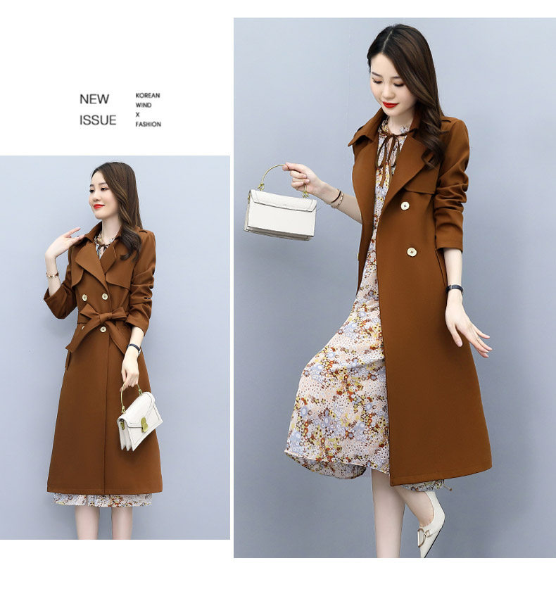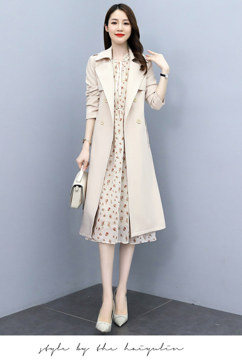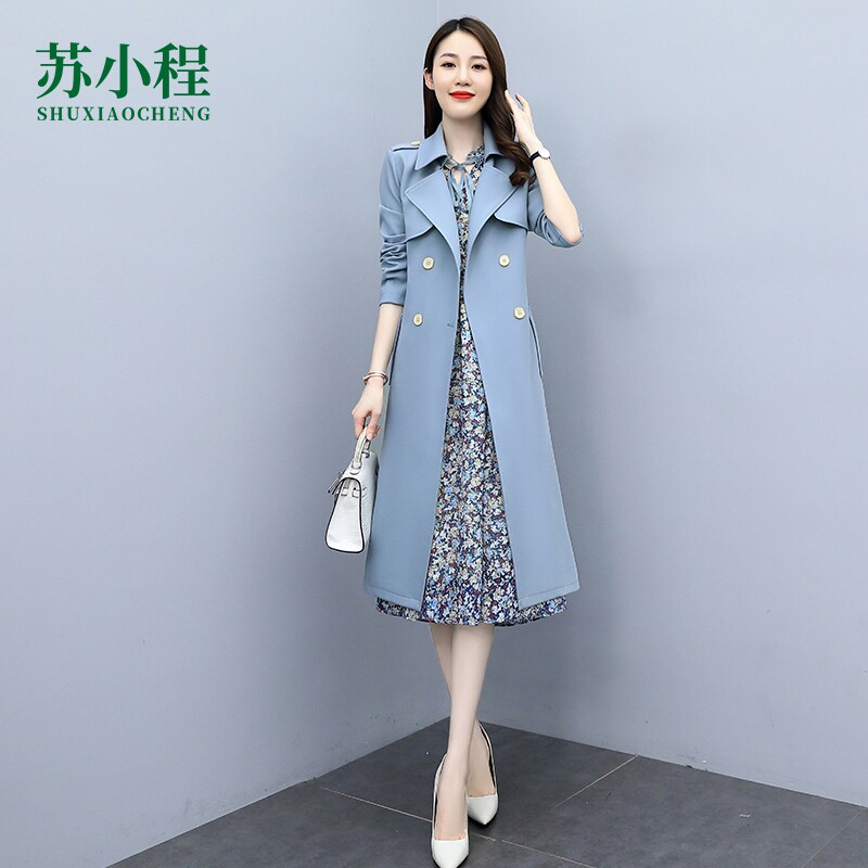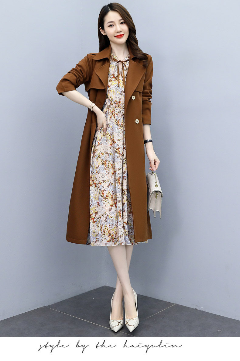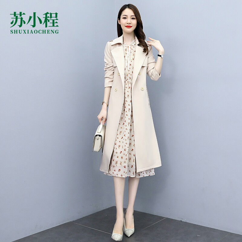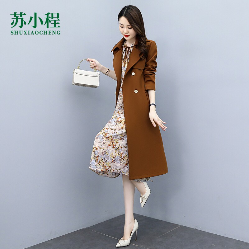 Плащ, платье, длинный осенний комплект, модная высококлассная куртка, средней длины, коллекция 2021, в корейском стиле
