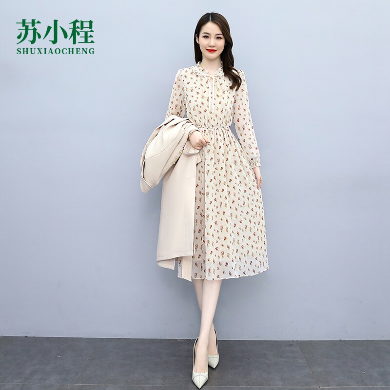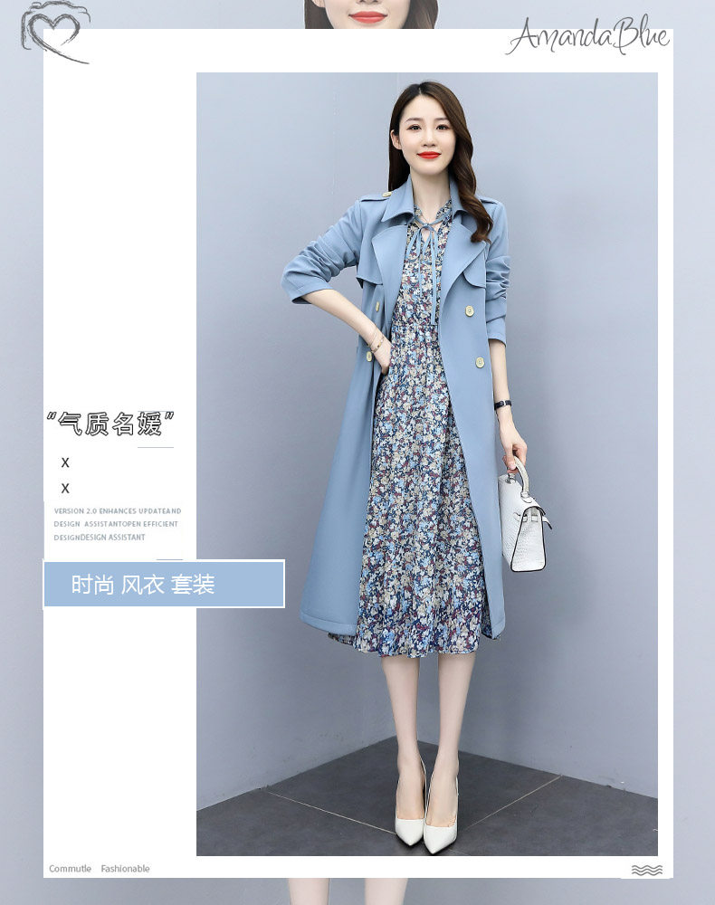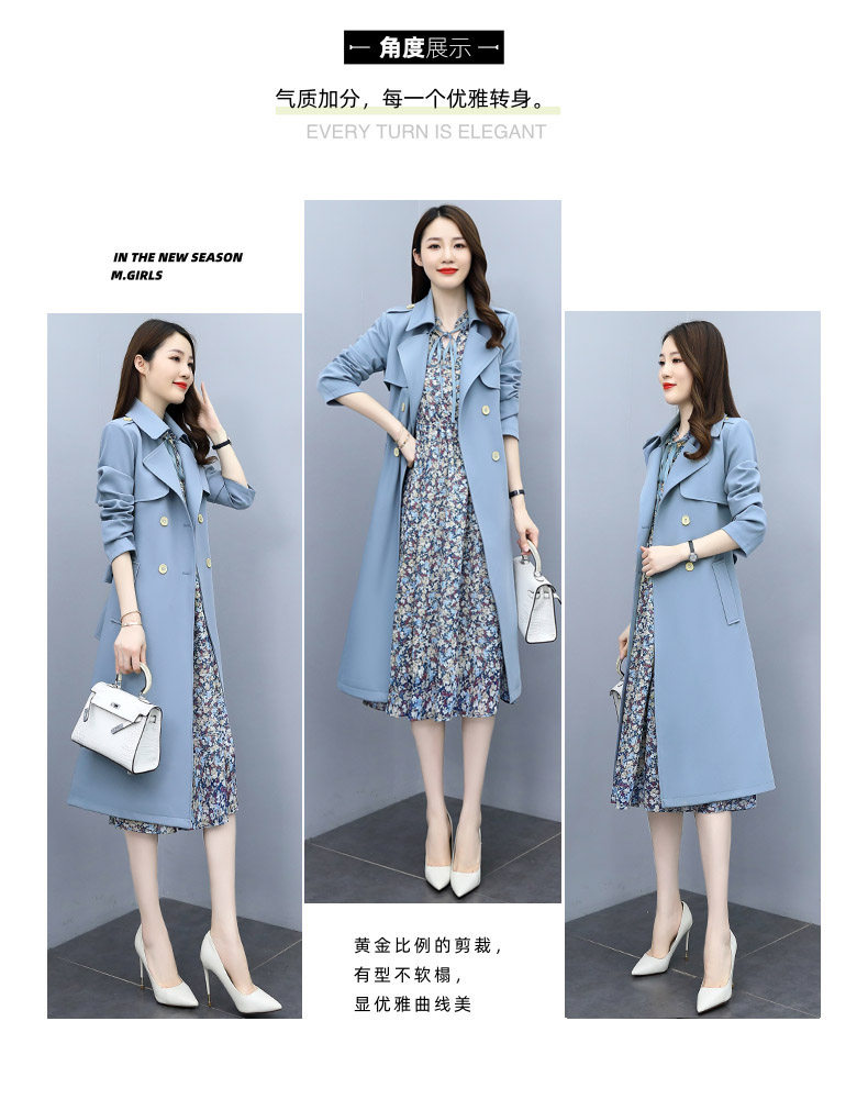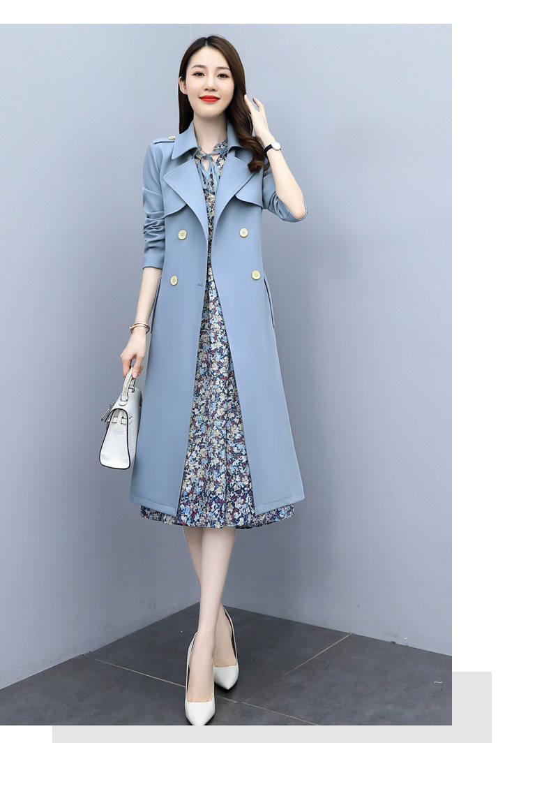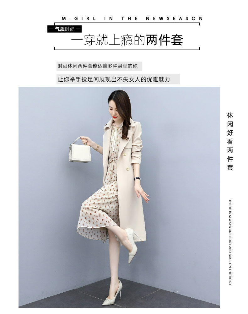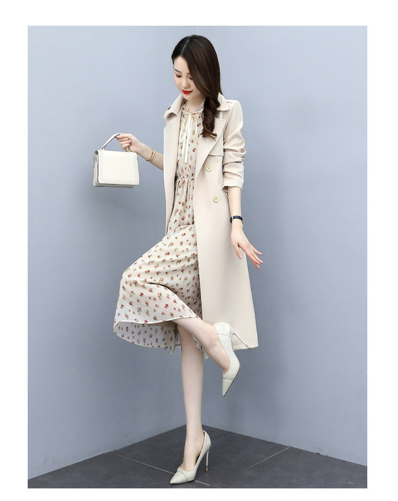 Плащ, платье, длинный осенний комплект, модная высококлассная куртка, средней длины, коллекция 2021, в корейском стиле
