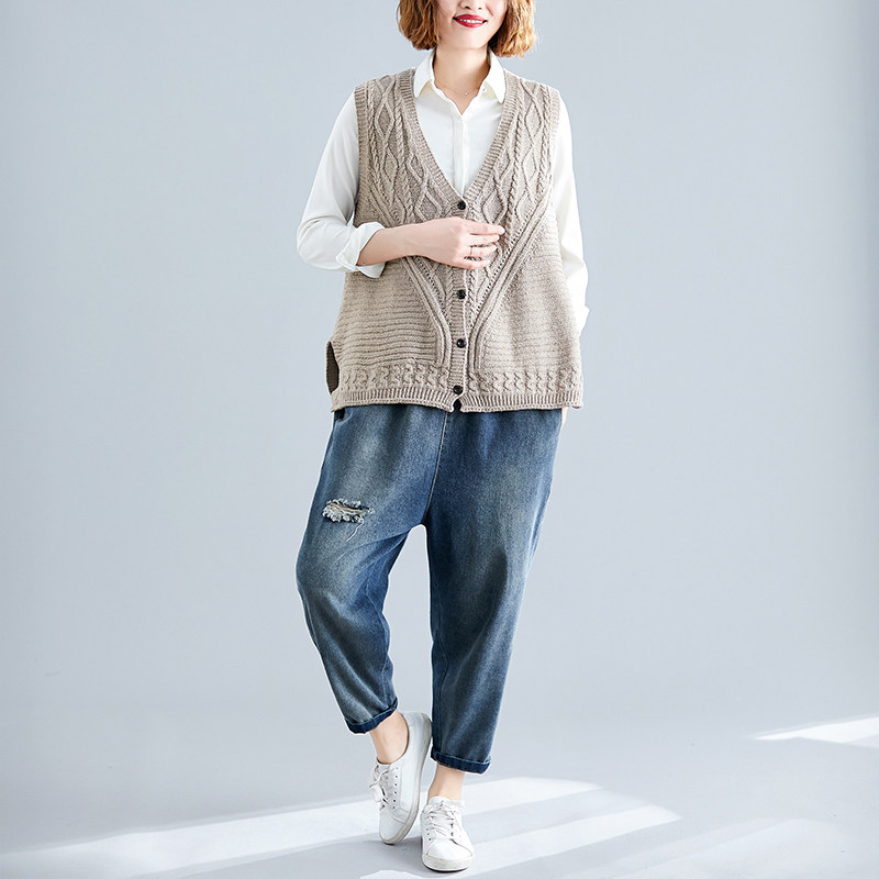 Трикотажный свитер, осенний жилет, кардиган, свободный крой, V-образный вырез