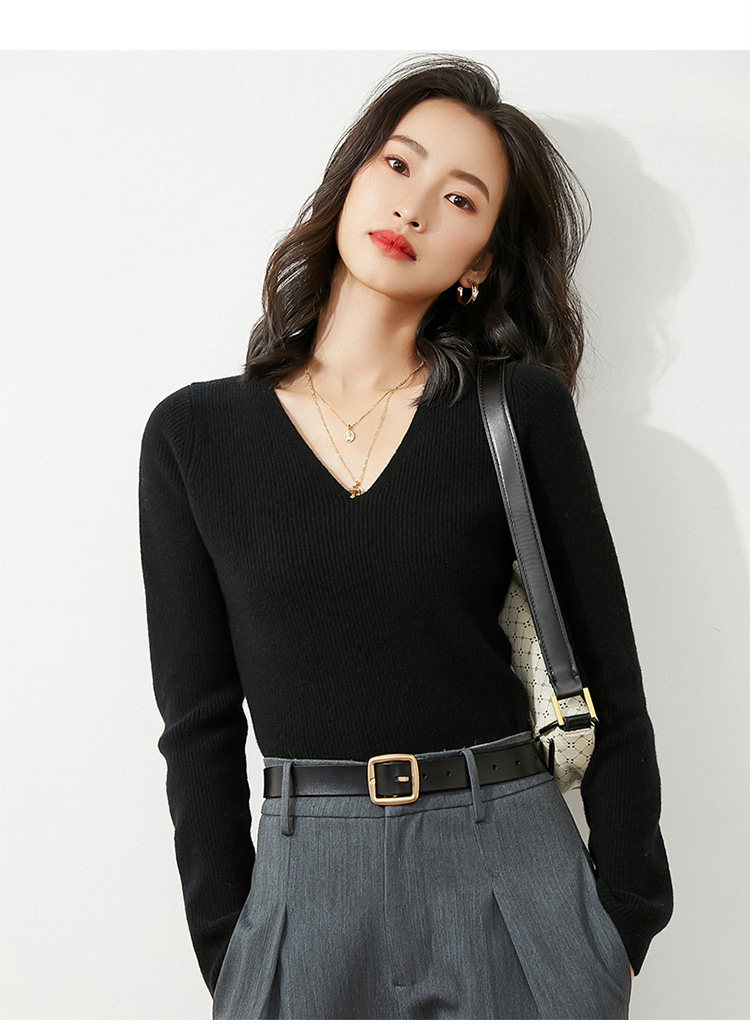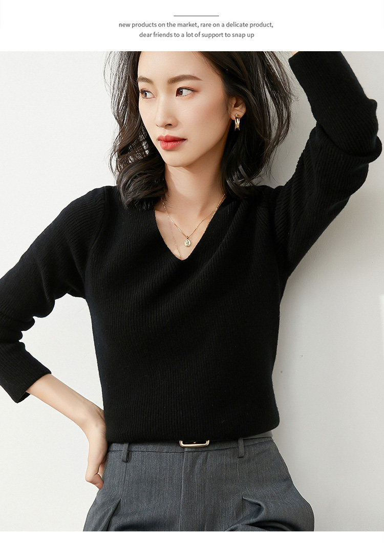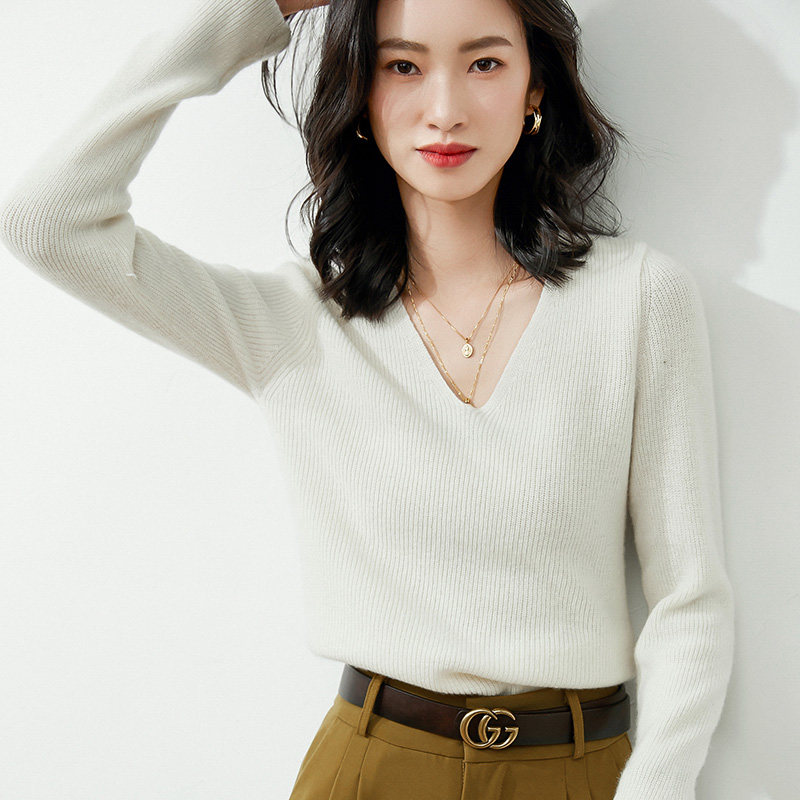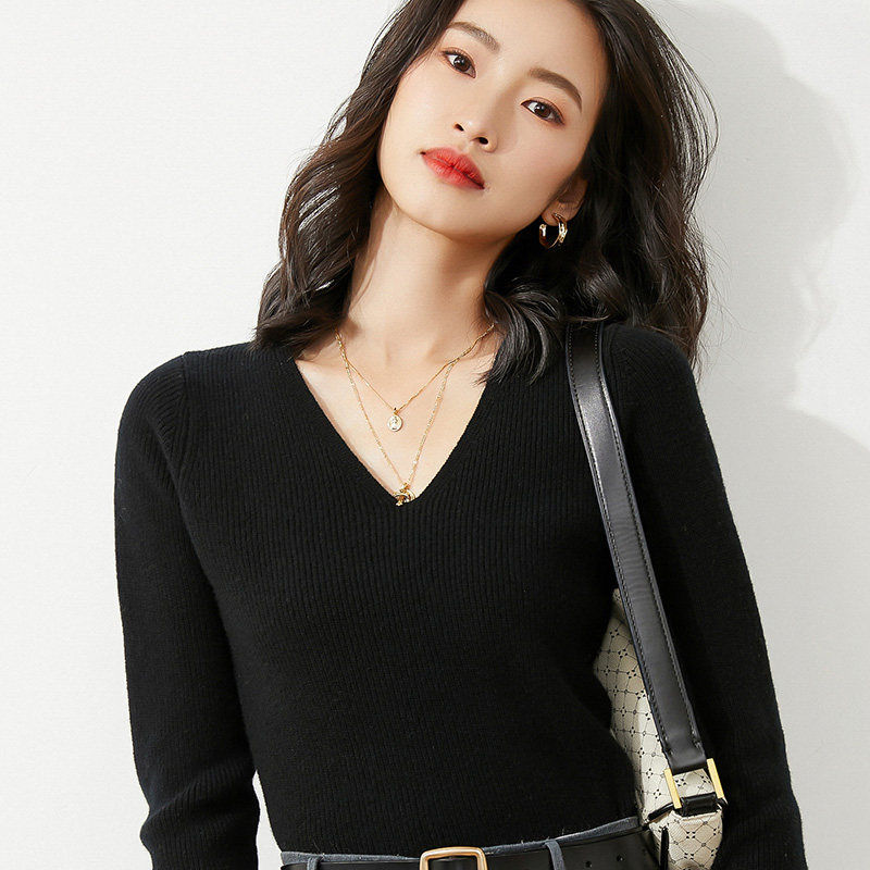 Демисезонный лонгслив, нарукавники, шерстяной трикотажный свитер, трикотажная рубашка для выхода на улицу, 21 года, V-образный вырез, в корейском стиле