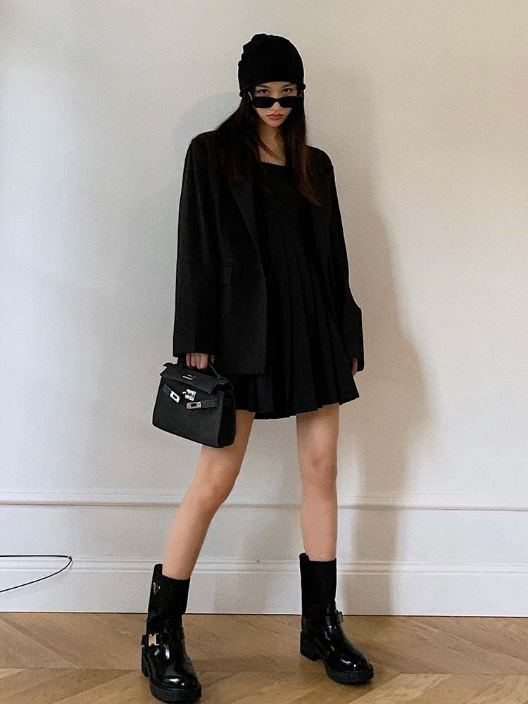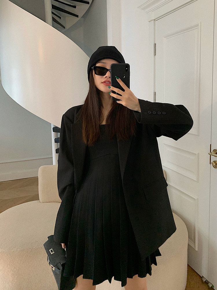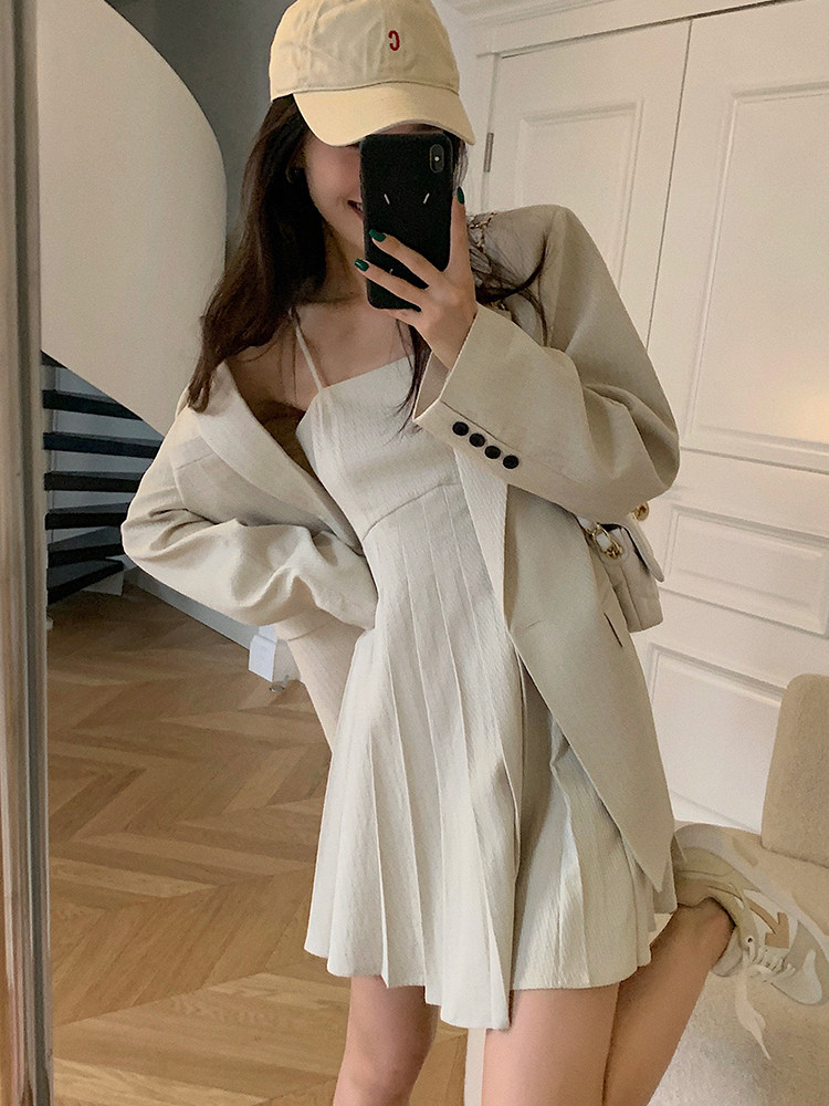 Осенний комплект для отдыха, пиджак классического кроя, костюм, платье-комбинация