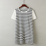 Летнее платье, базовая длинная футболка, цветная мини-юбка с круглым воротником, короткий рукав, средней длины