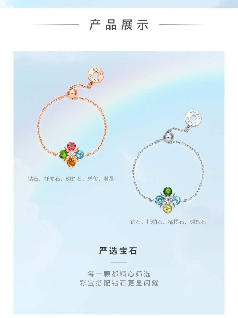 | Материал: | Золото 18 карат, бриллиант*1, диопсид*1, топаз*2, перидот*1 |