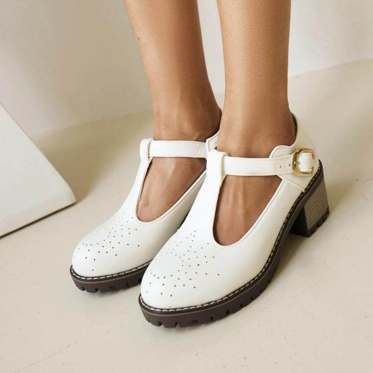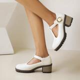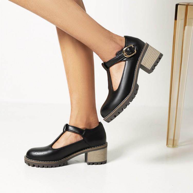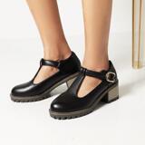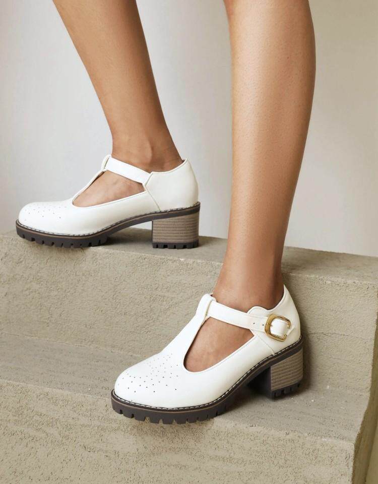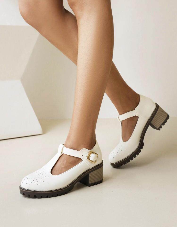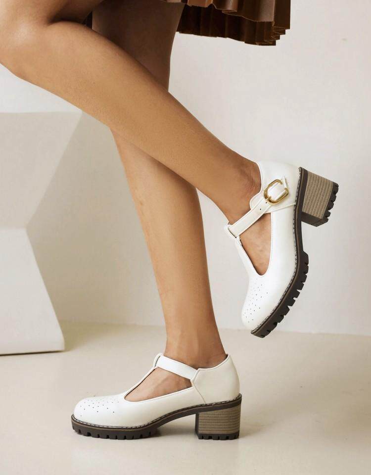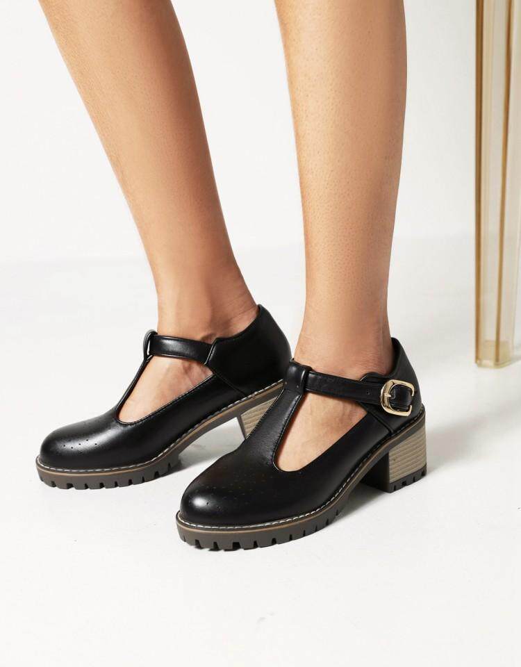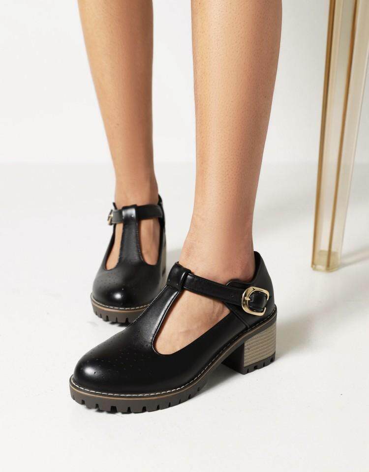 2021 Осень Новая Брок Сингл Обувь Толстая каблука Большой размер 40-43T Бэнда в женской туфли круглая голова