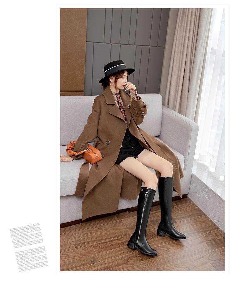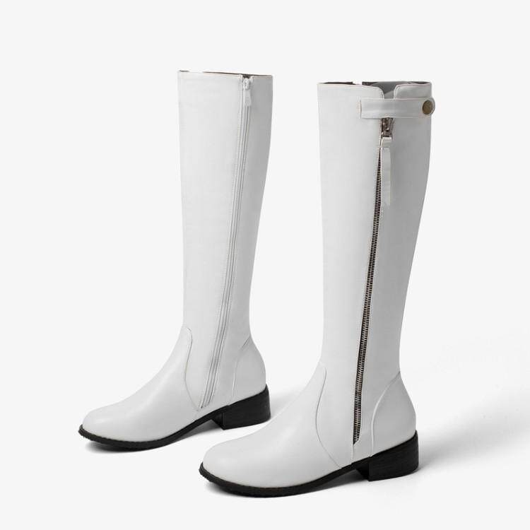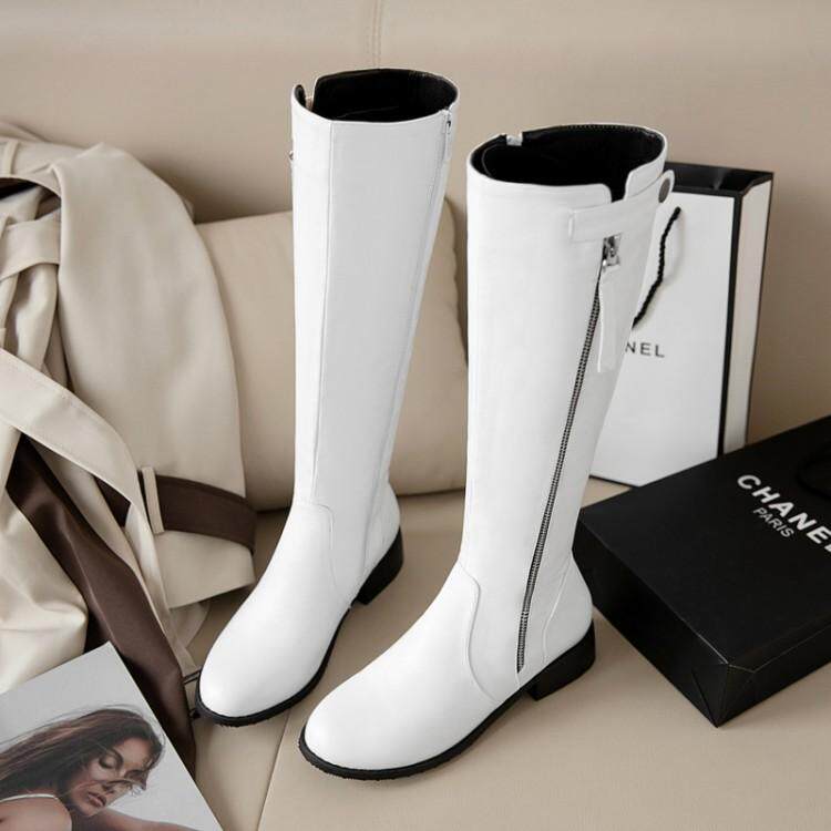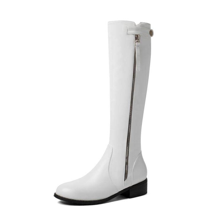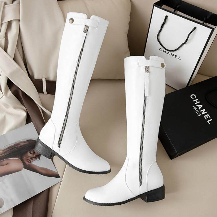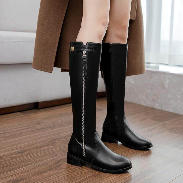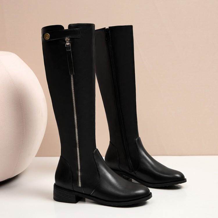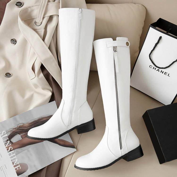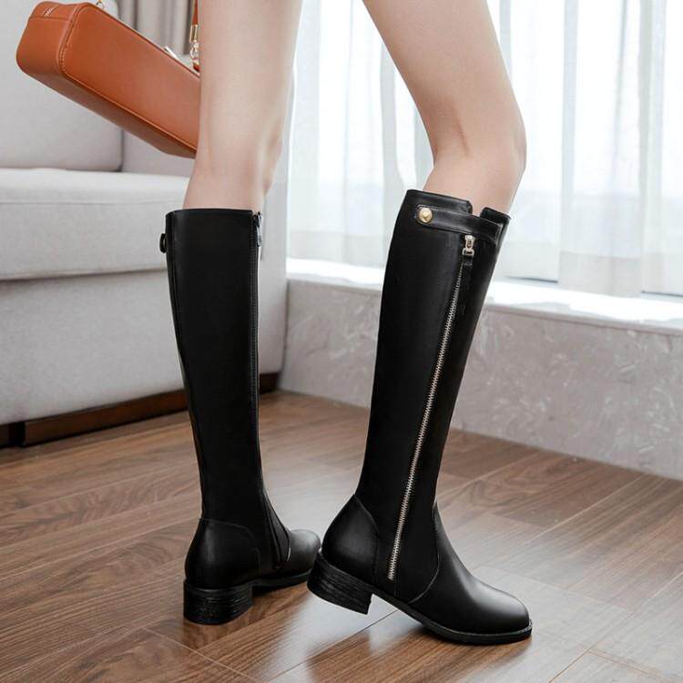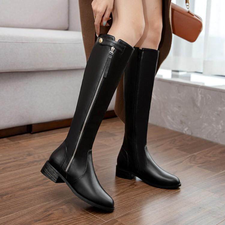 Европейские и американские осенне-зимние новые рыцарские сапоги на низком каблуке с боковой молнией, женские сапоги не выше колена на плоском каблуке, очень большой размер 44, 45, 46