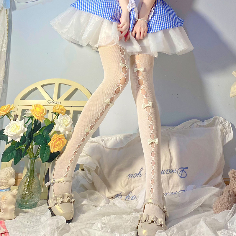 Японские бежевые колготки с бантиком, рыболовная сеть, тонкие носки, стиль Лолита, подходит для подростков, осенние