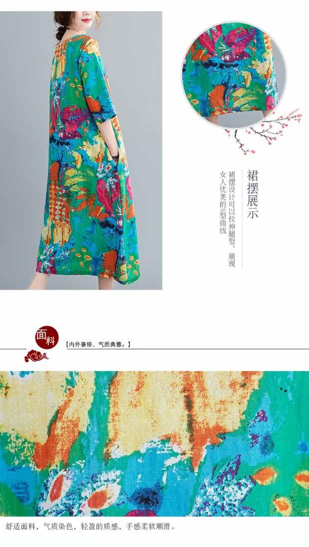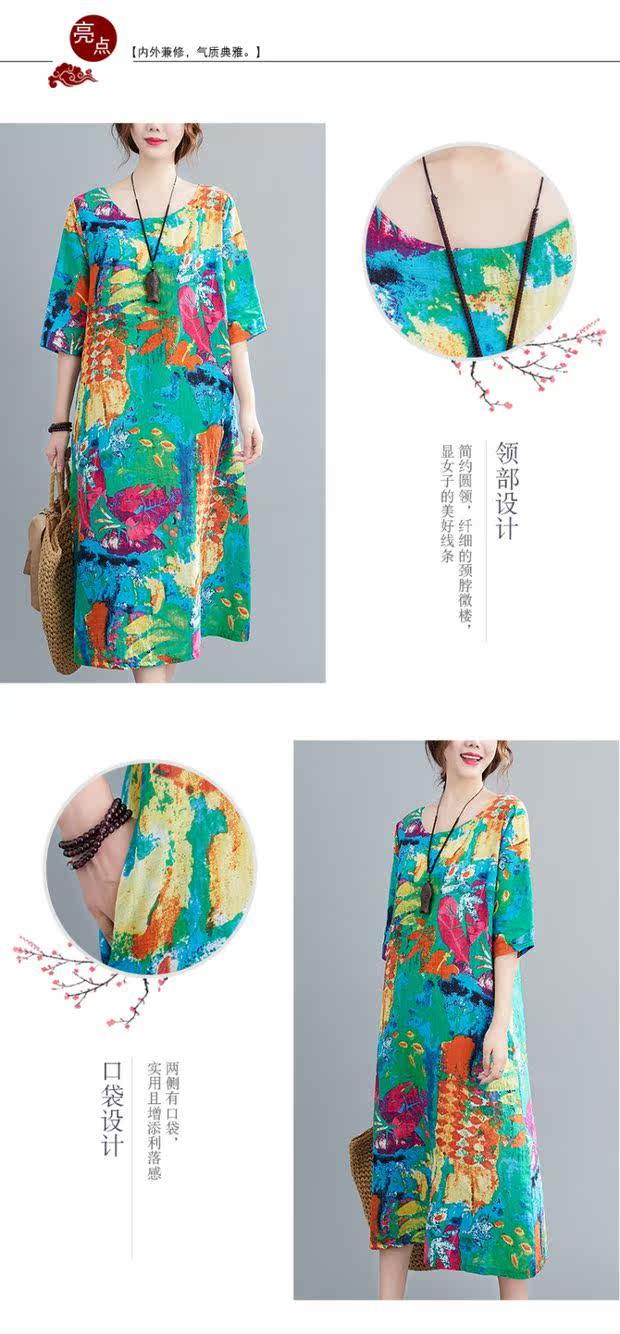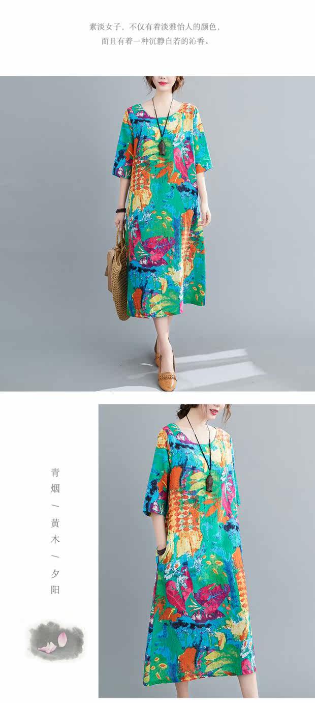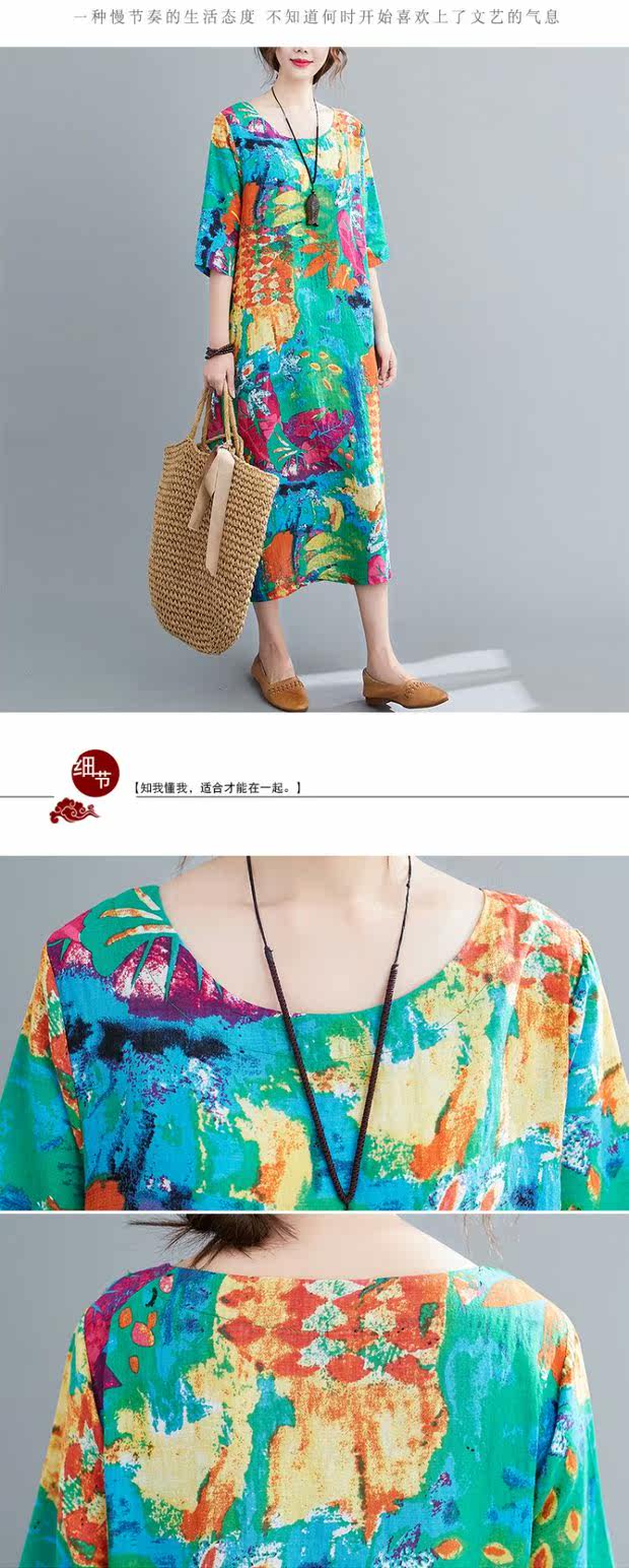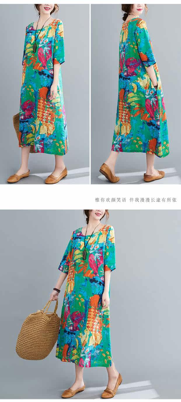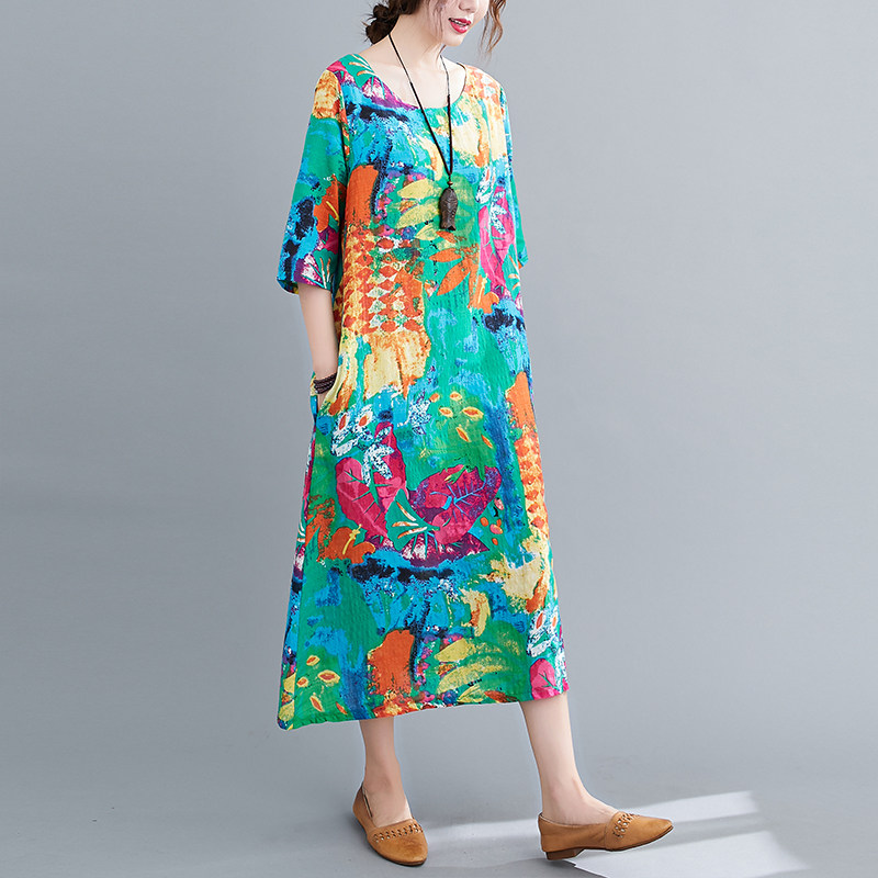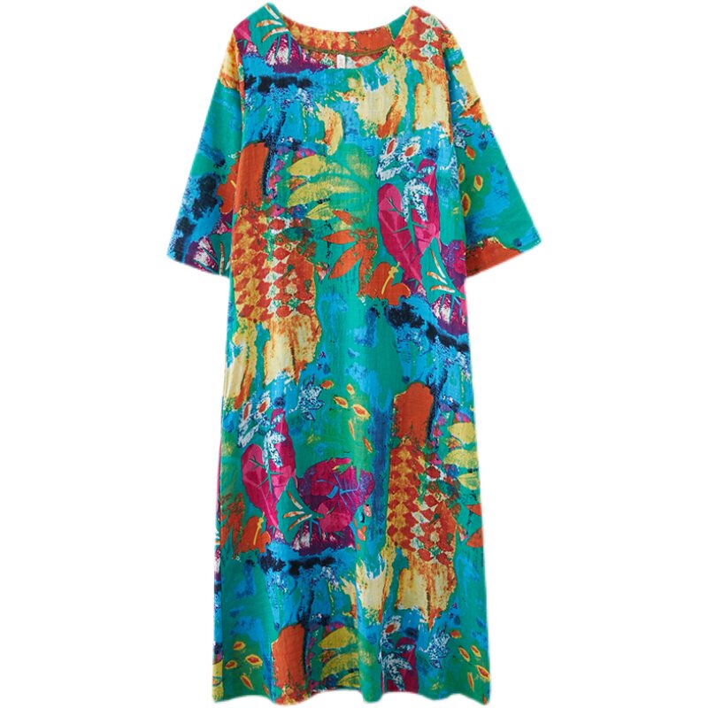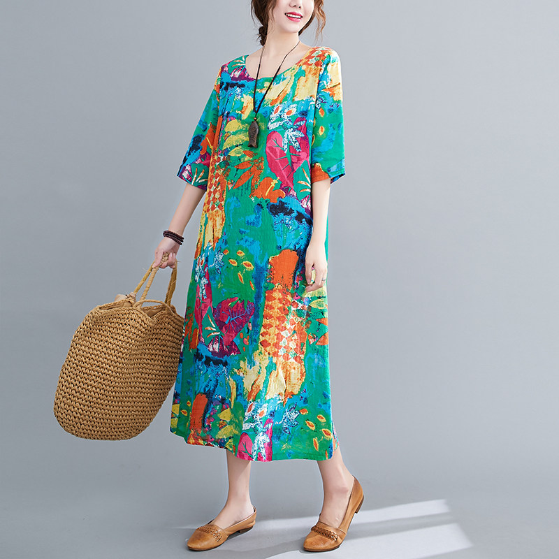 Этническое платье большого размера для отдыха, длинная юбка с круглым воротником, этнический стиль, в цветочек, большой размер, по фигуре