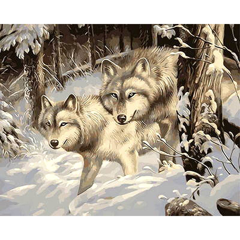 DIY Цифровой масляной живопись сама Wolf Wolf Wolf, чтобы охотиться за рубцом Cub Cub Home Cormeration Новые модели