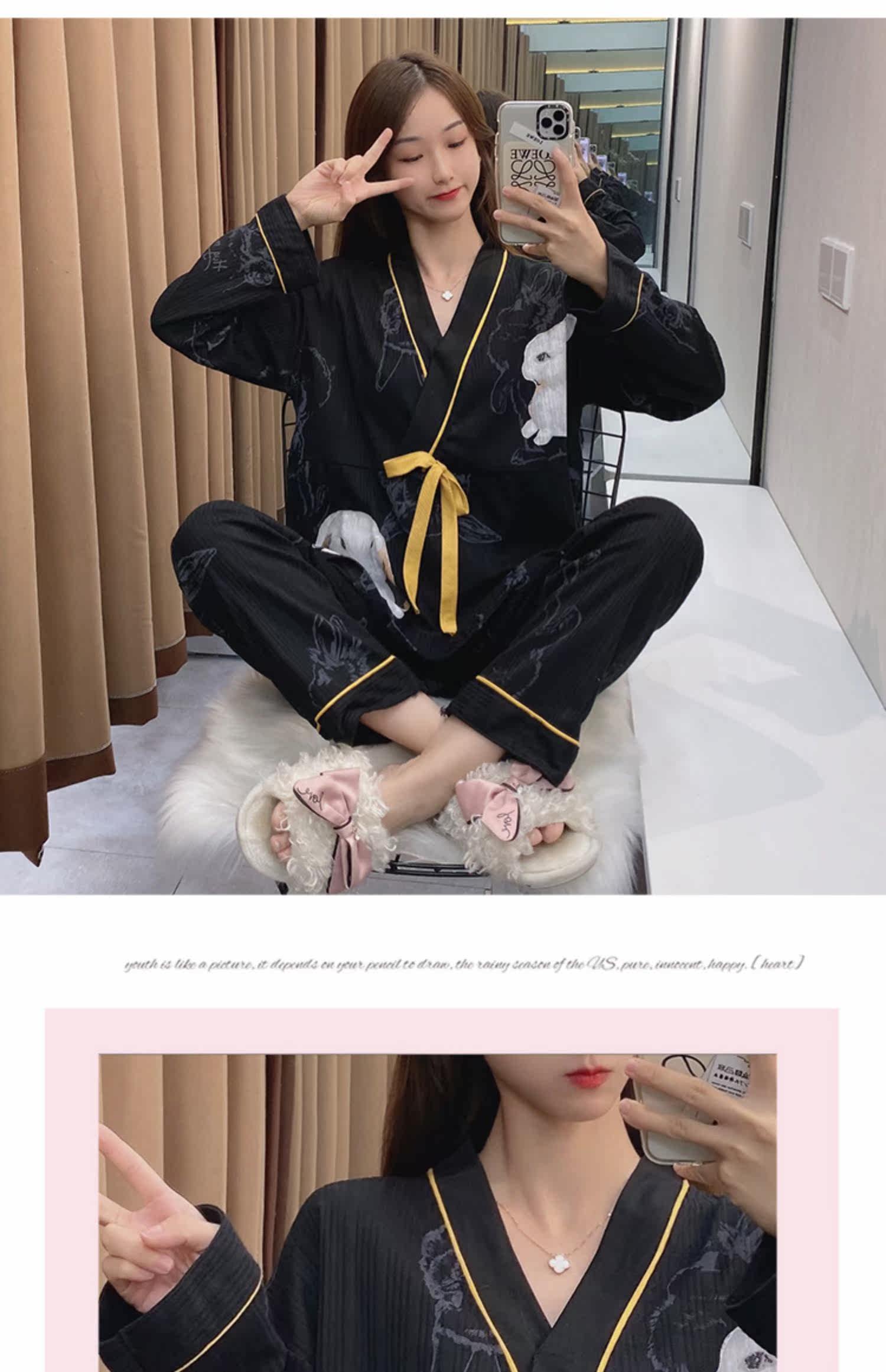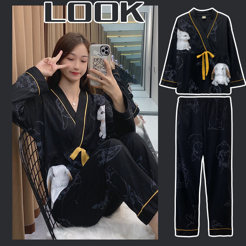 Пижама, осенний хлопковый летний лонгслив, тонкий японский комплект, 2021 года, большой размер
