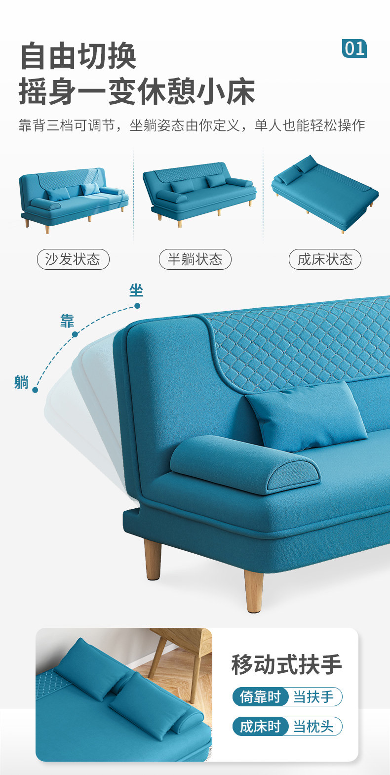 Ткань, современный и минималистичный складной диван для гостиной