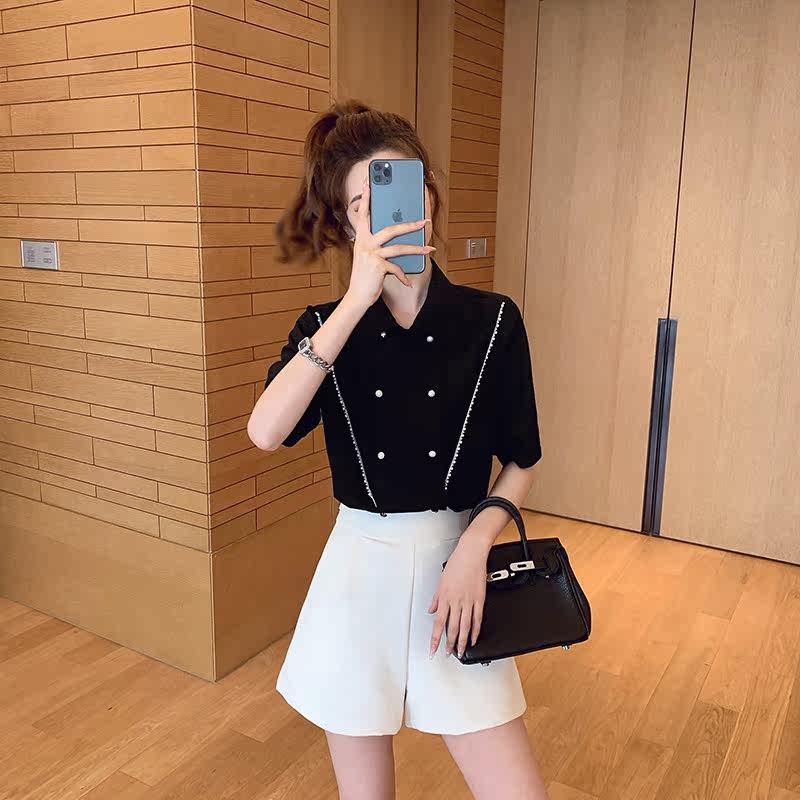 Шифоновая рубашка с маленьким зерновым жемчугом край