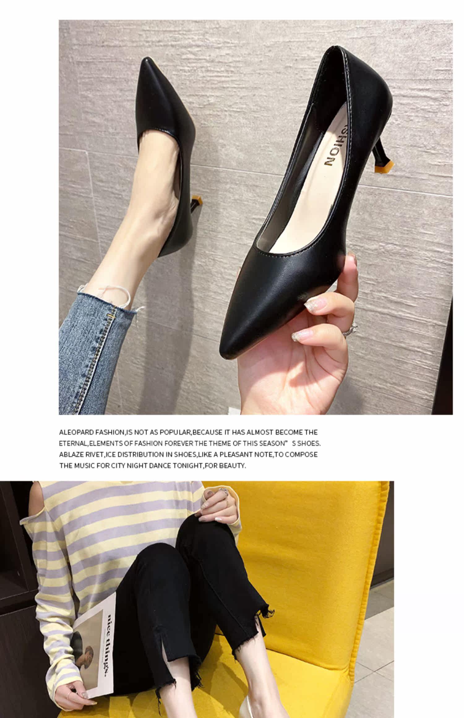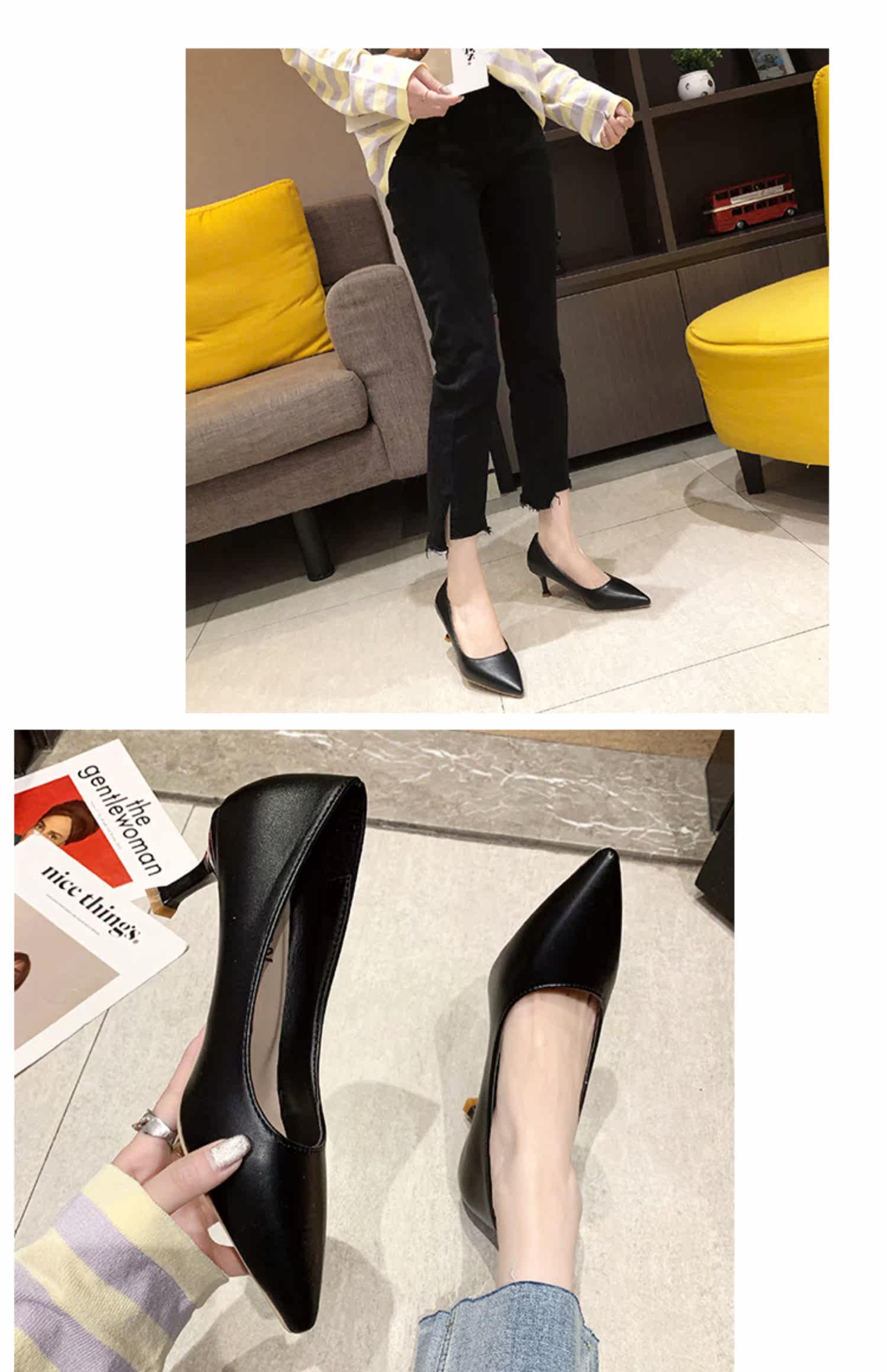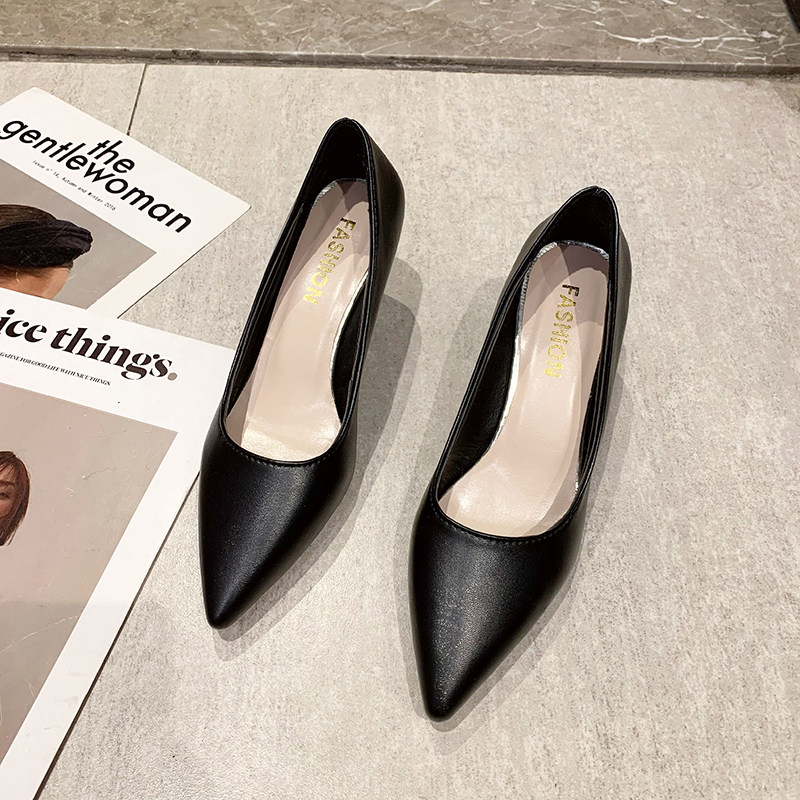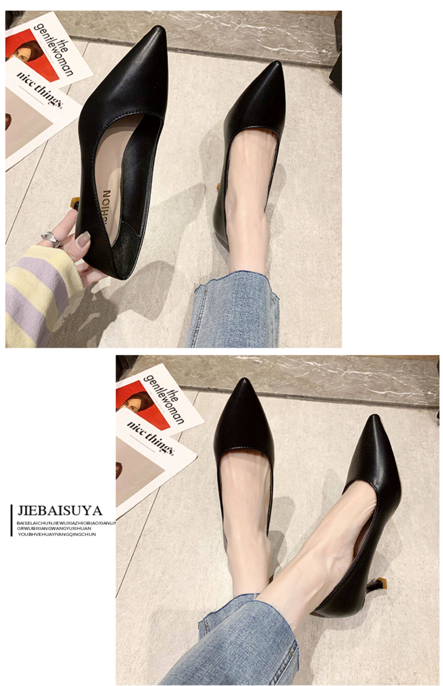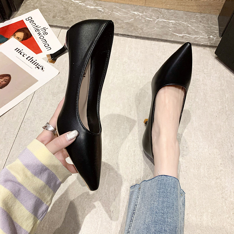 Черная обувь для кожаной обуви с заостренным носом с низким вырезом на высоком каблуке, коллекция 2021, осенняя, тренд сезона