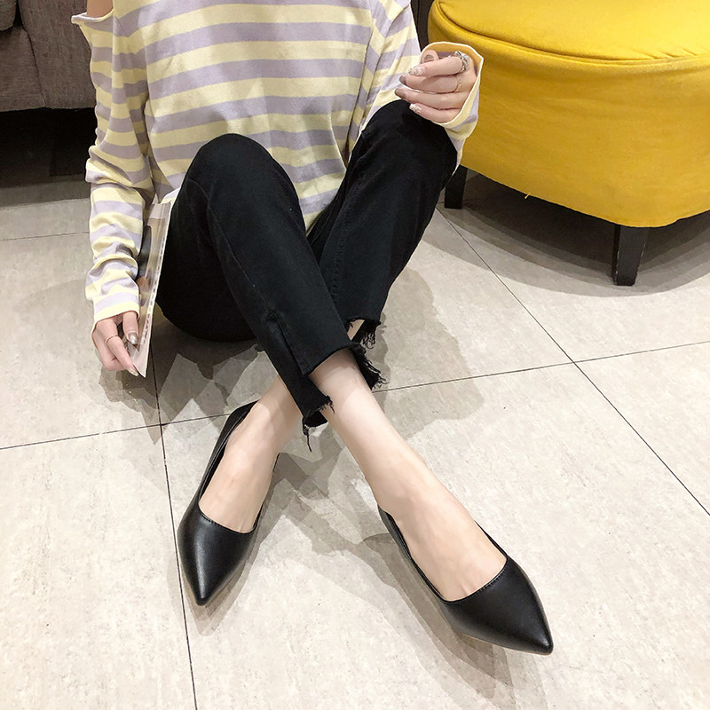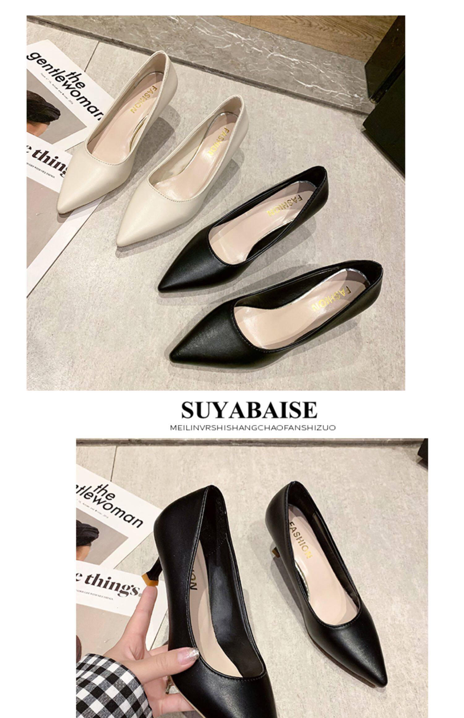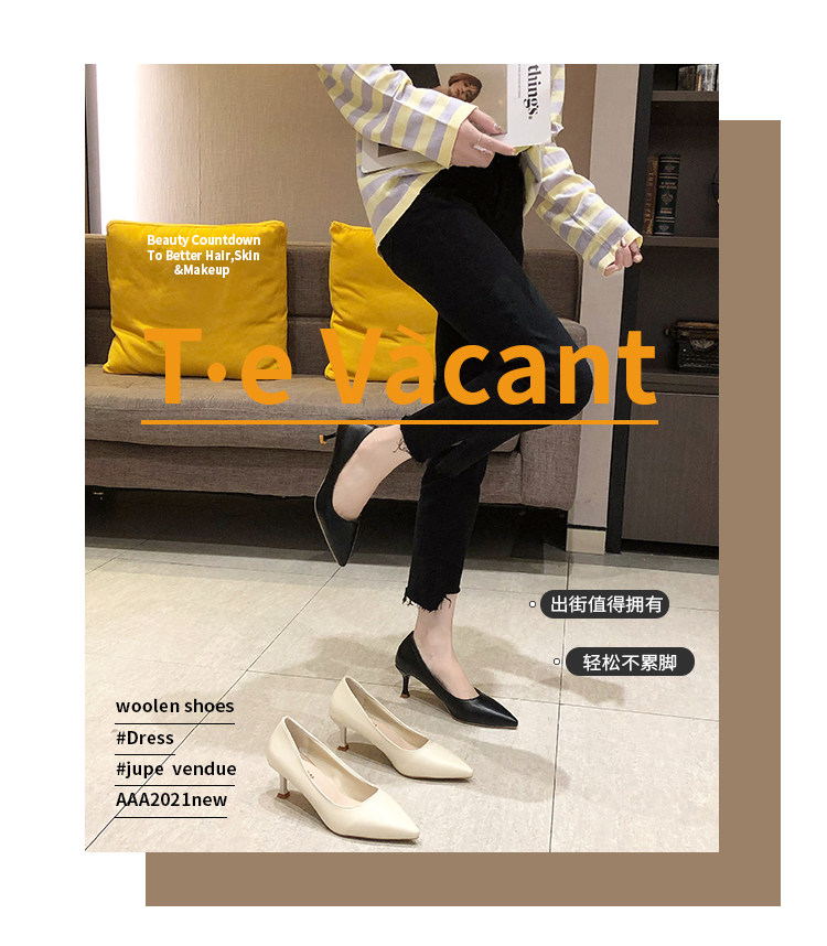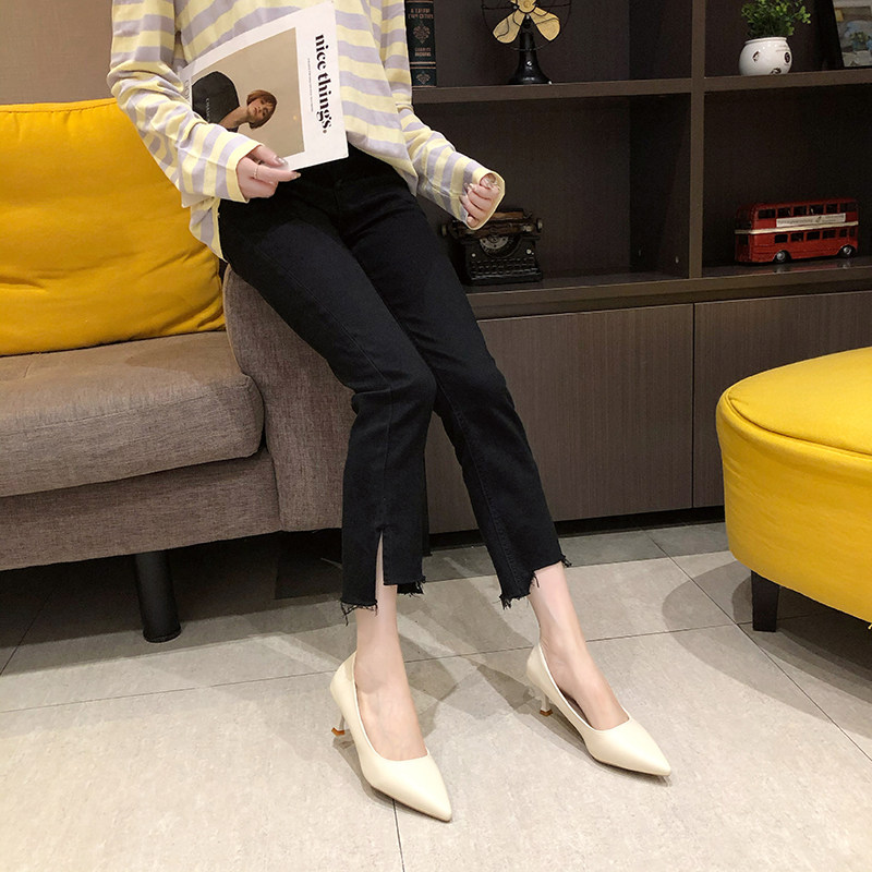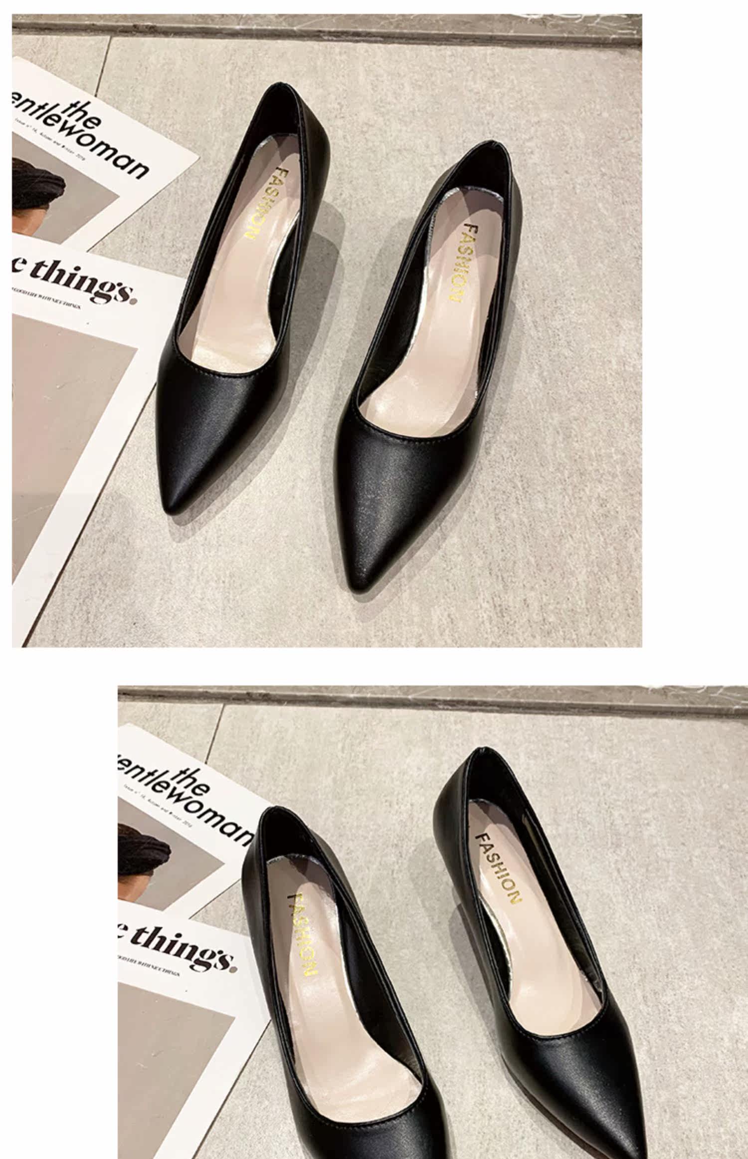 Черная обувь для кожаной обуви с заостренным носом с низким вырезом на высоком каблуке, коллекция 2021, осенняя, тренд сезона