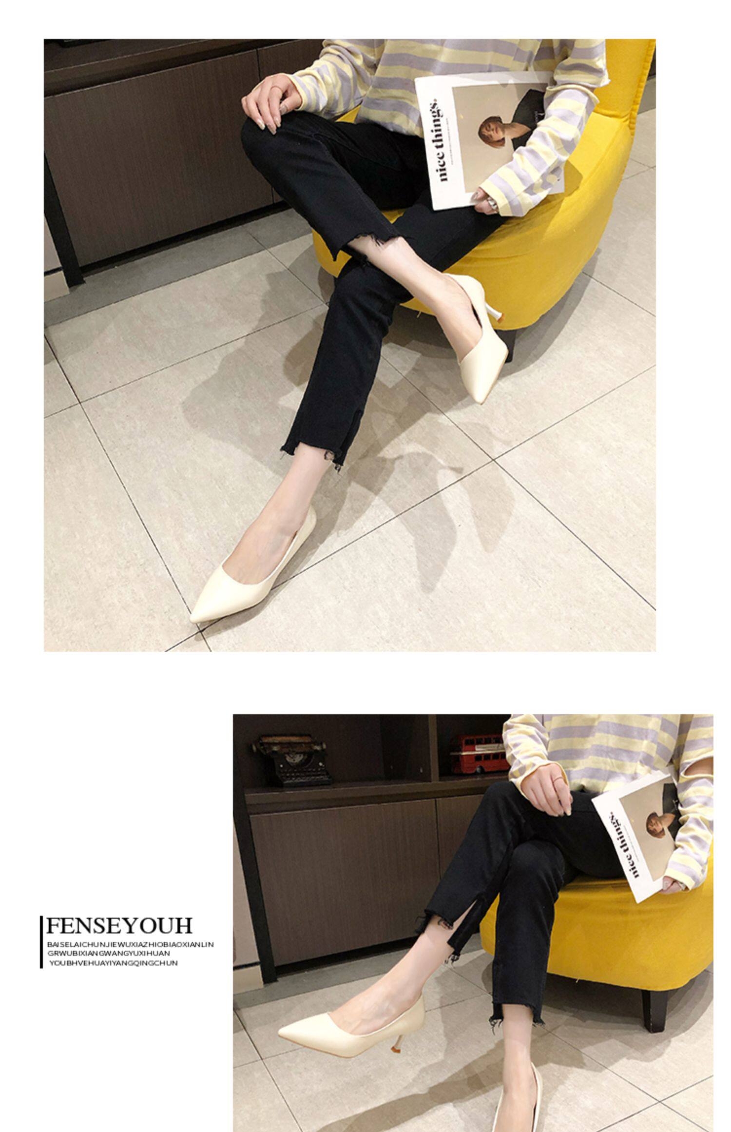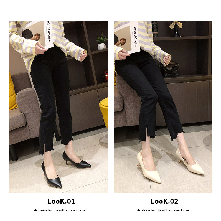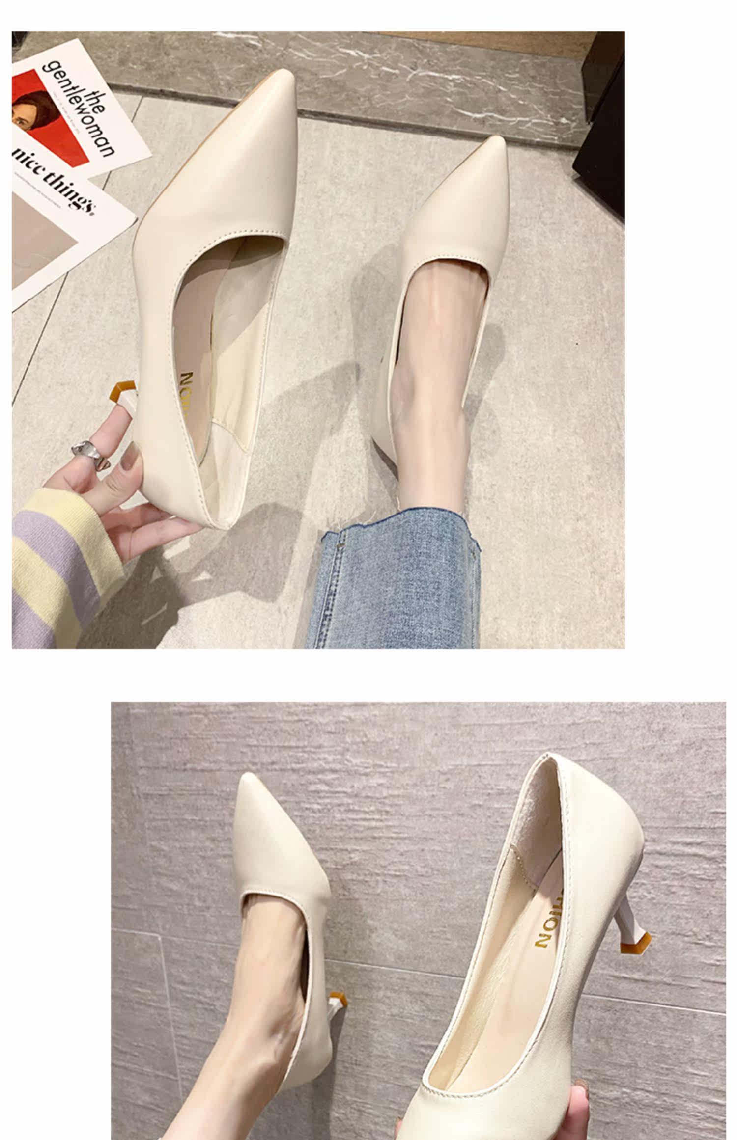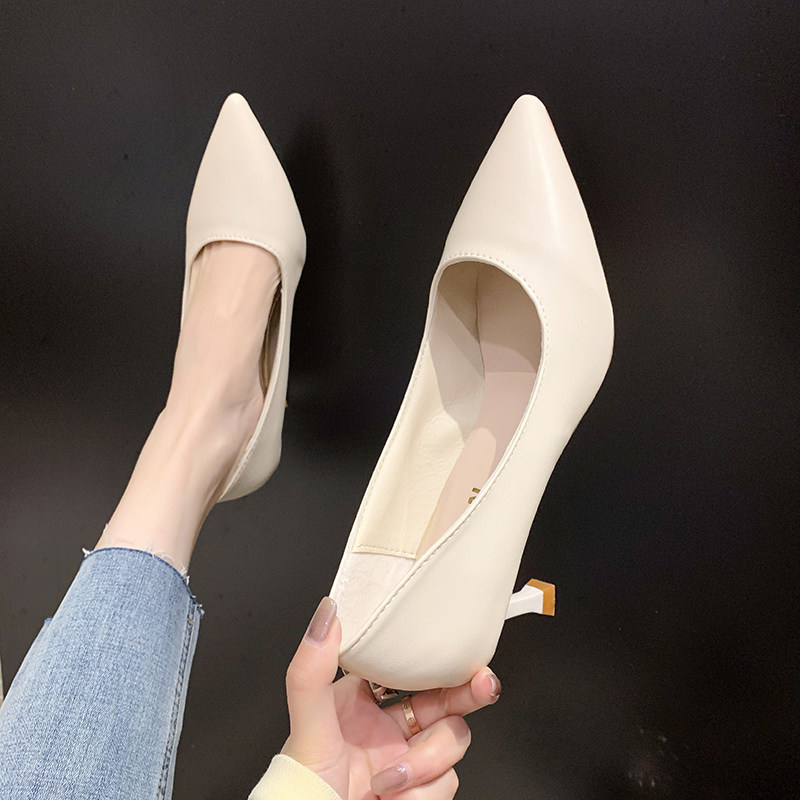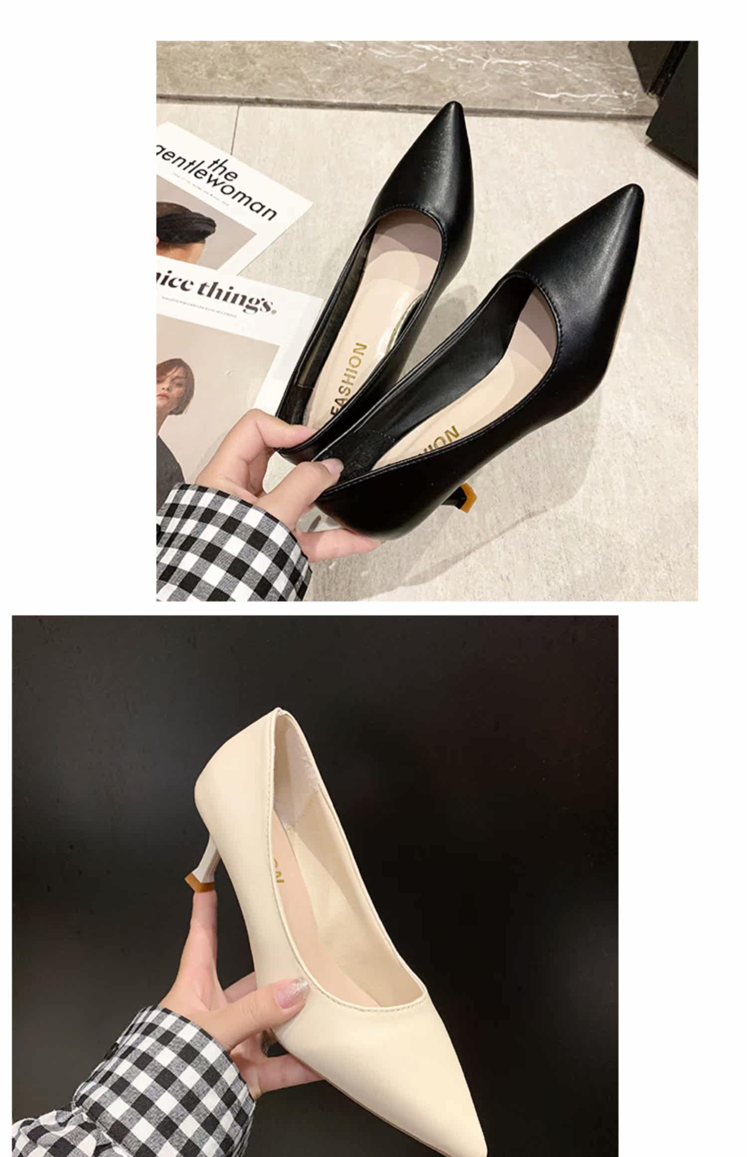 Черная обувь для кожаной обуви с заостренным носом с низким вырезом на высоком каблуке, коллекция 2021, осенняя, тренд сезона
