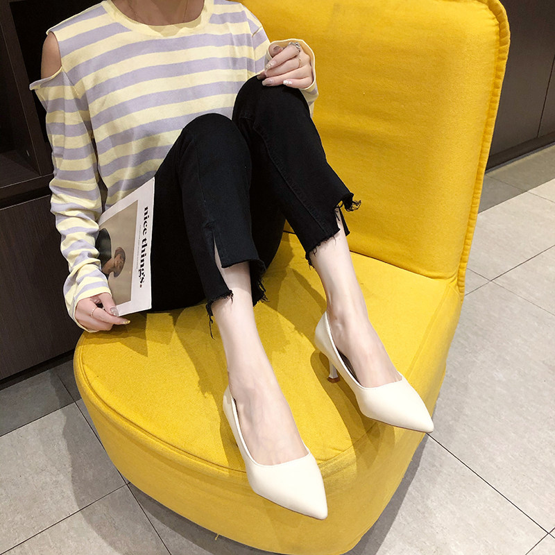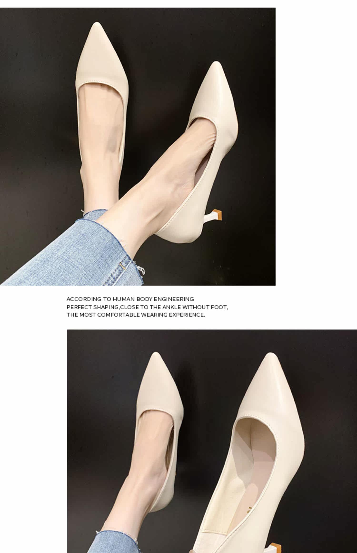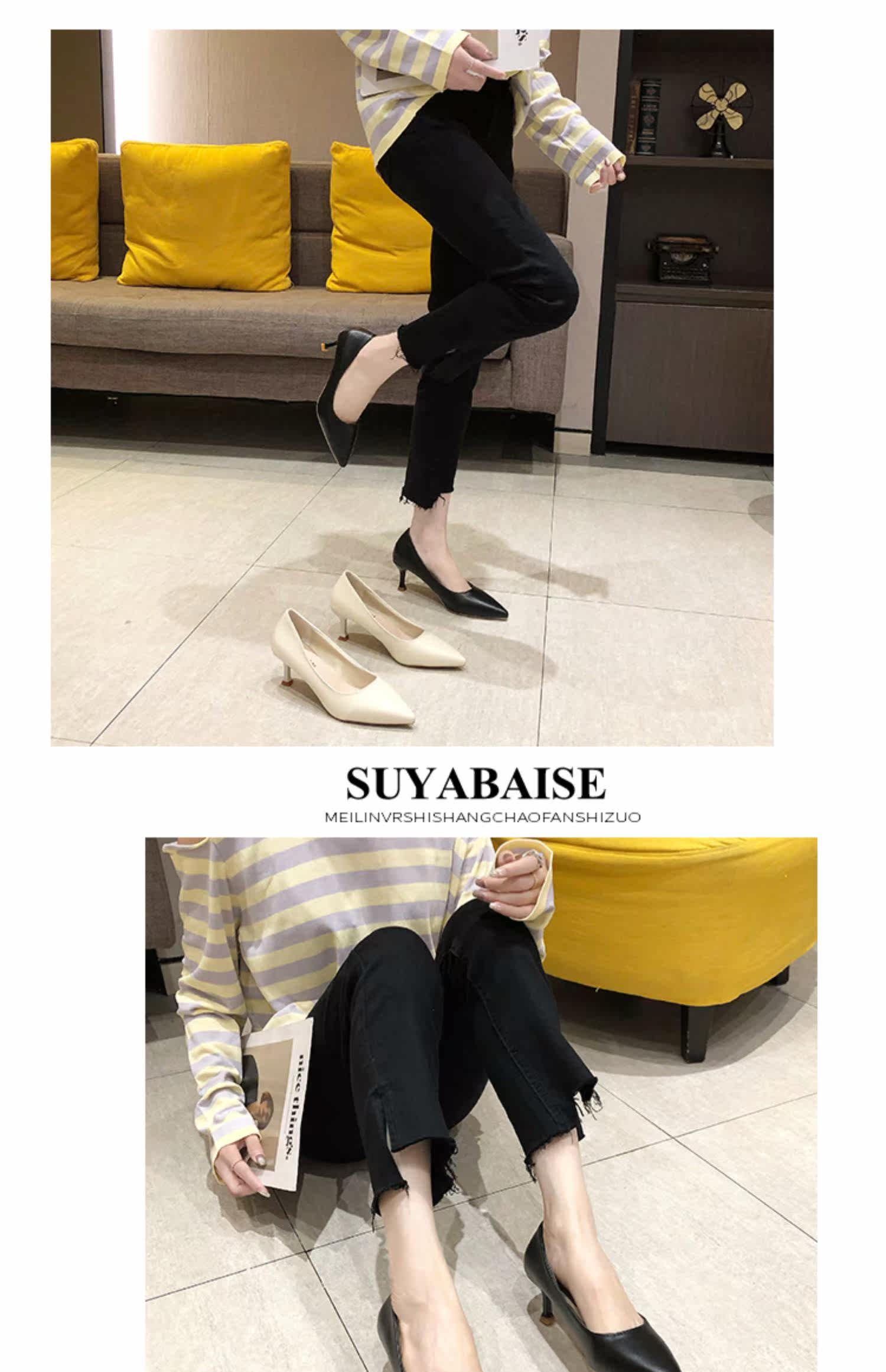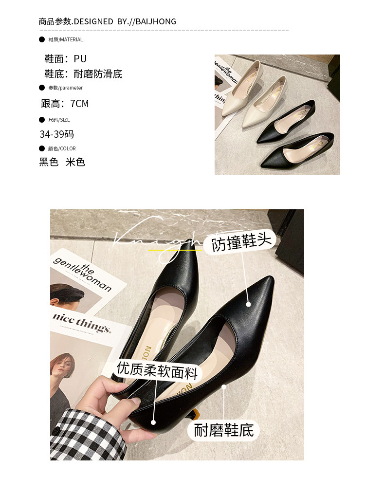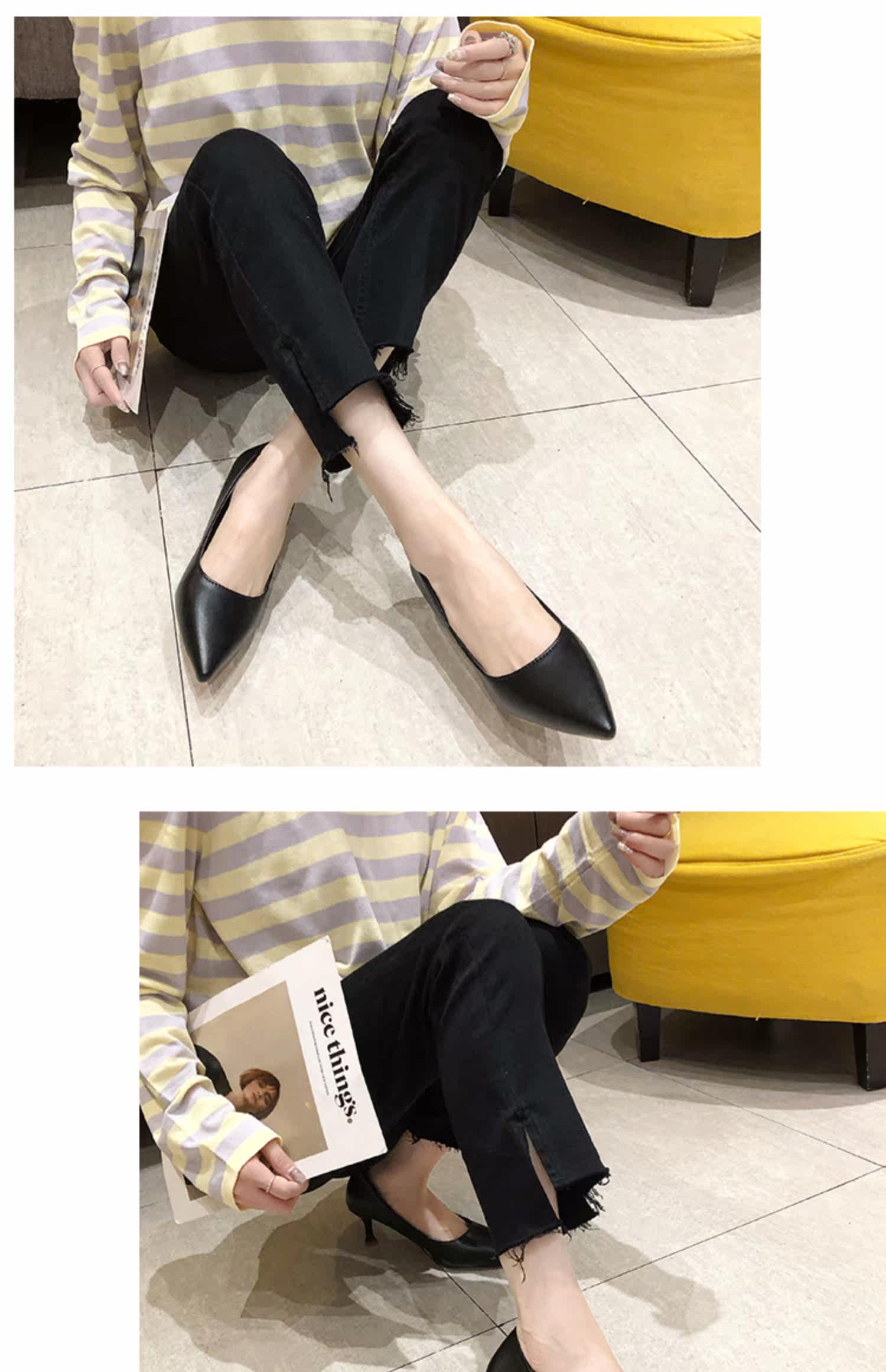Черная обувь для кожаной обуви с заостренным носом с низким вырезом на высоком каблуке, коллекция 2021, осенняя, тренд сезона