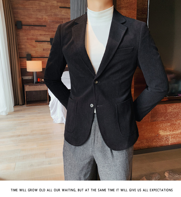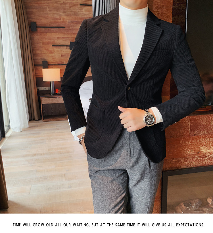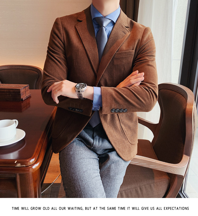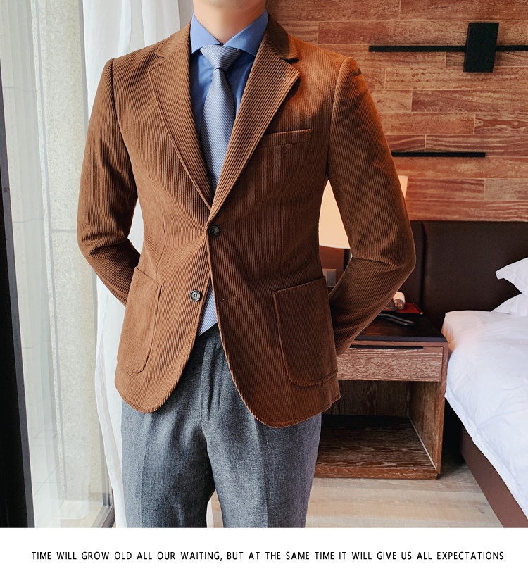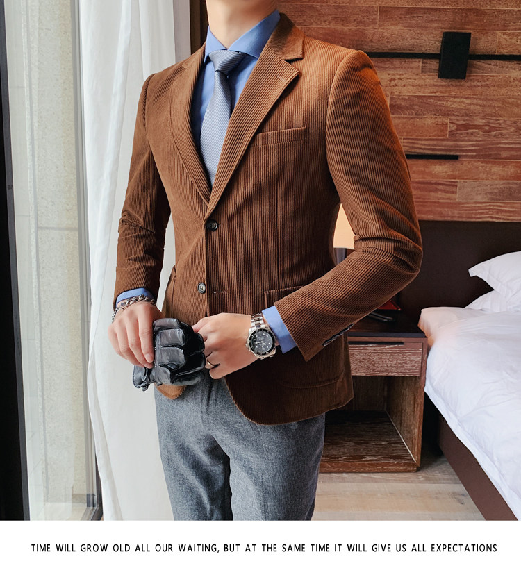Вельветовый демисезонный костюм для отдыха, демисезонная куртка, увеличенная толщина, коллекция 2023, облегающий крой