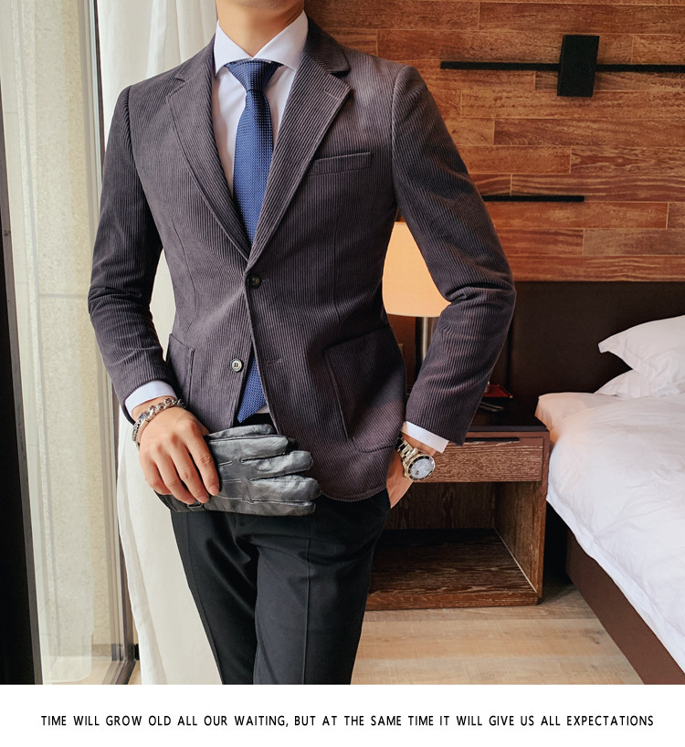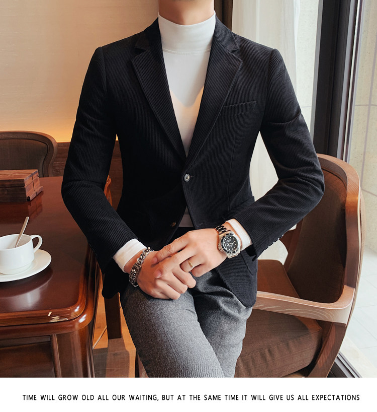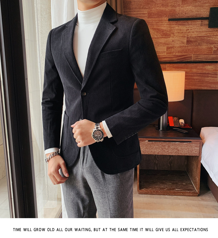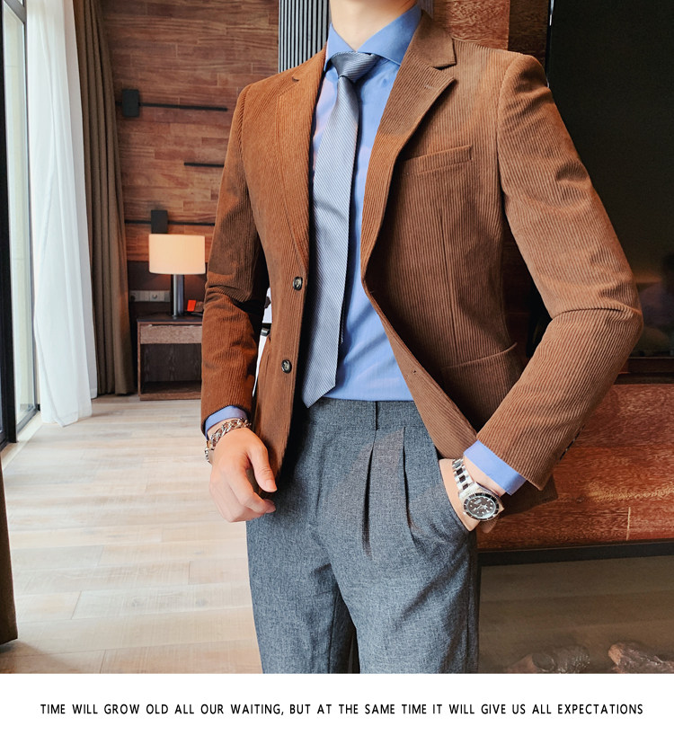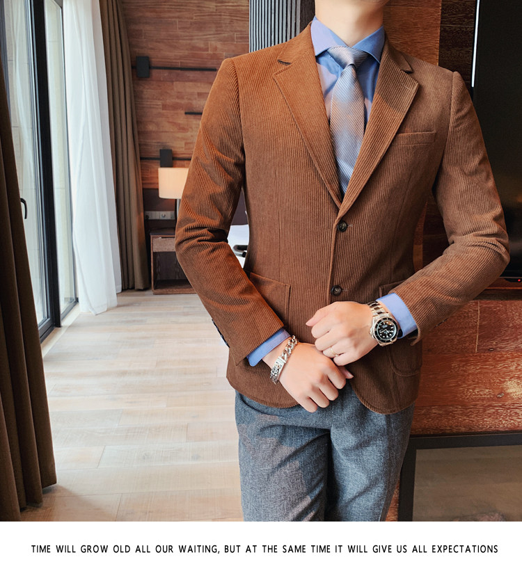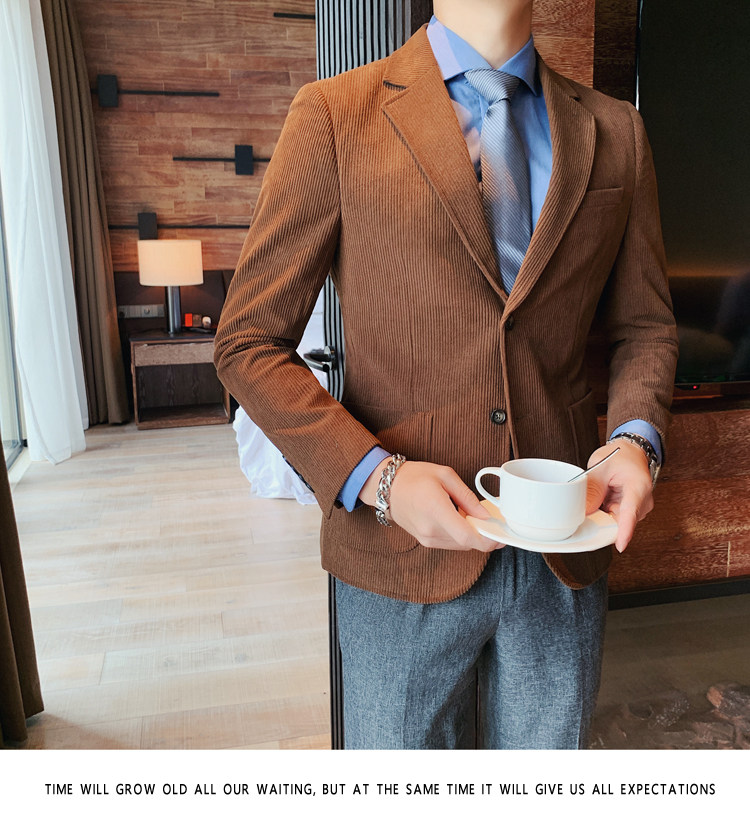 Вельветовый демисезонный костюм для отдыха, демисезонная куртка, увеличенная толщина, коллекция 2023, облегающий крой