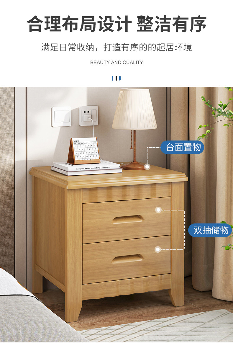 Сплошное дерево прикроватное шкаф Современный минималистский дом Небольшой простая простая спальня спальня кровати шкаф
