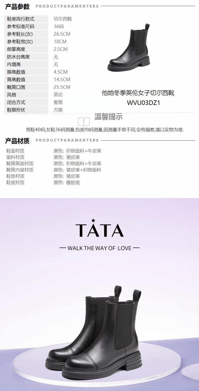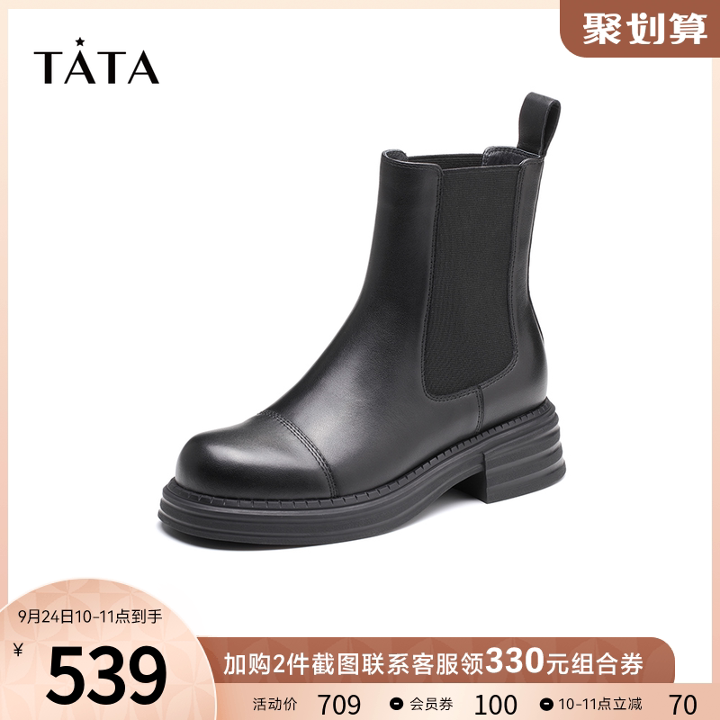 Тата, ее торговый центр, тот же классический простые толстые дымовые ботинки, женские короткие ботинки Chelsea Осень и зима WVU03DZ1