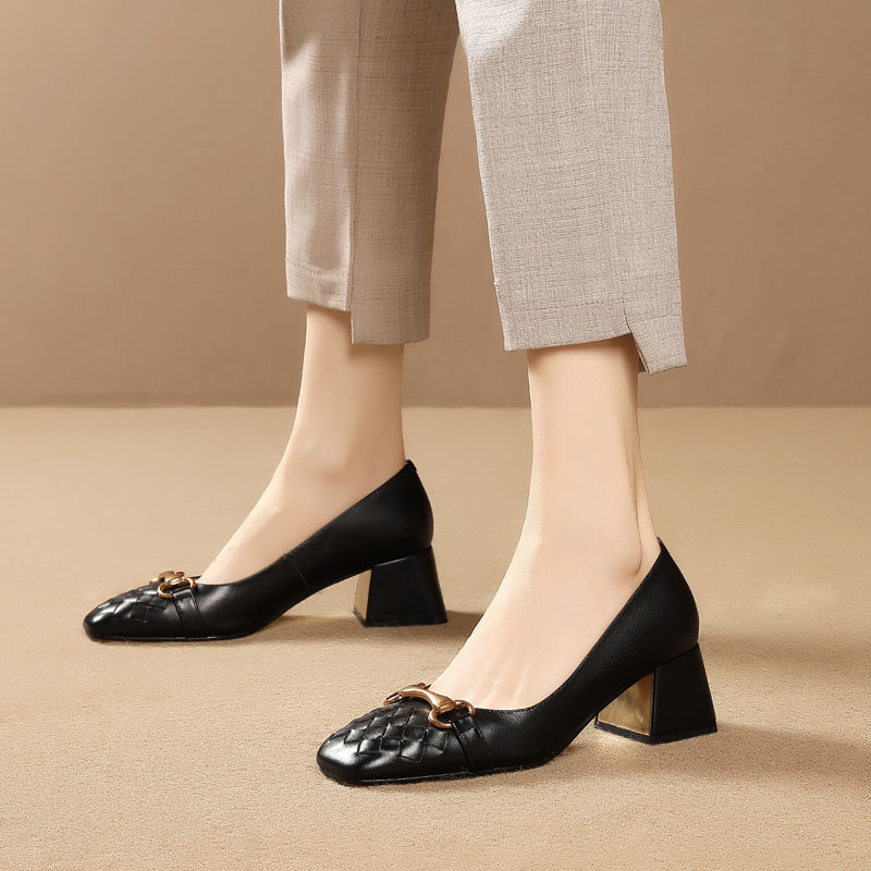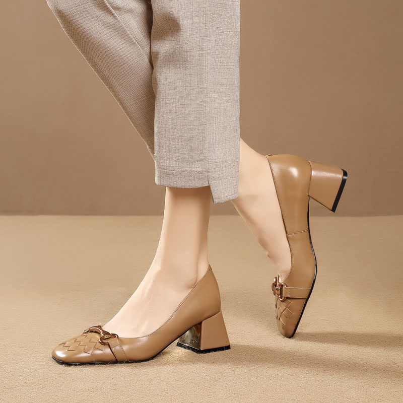 Комфортная обувь на высоком каблуке для кожаной обуви, модель весна/осень 2021 года, большой размер