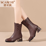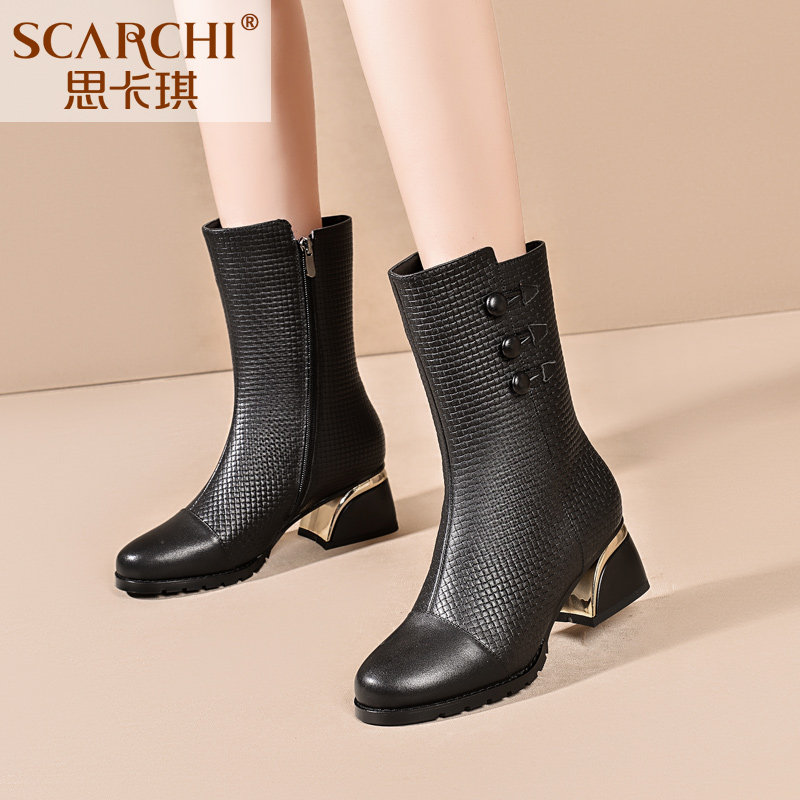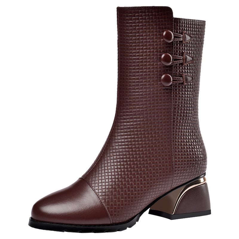 Демисезонные ботинки, флисовые сапоги для матери, средней длины, большой размер