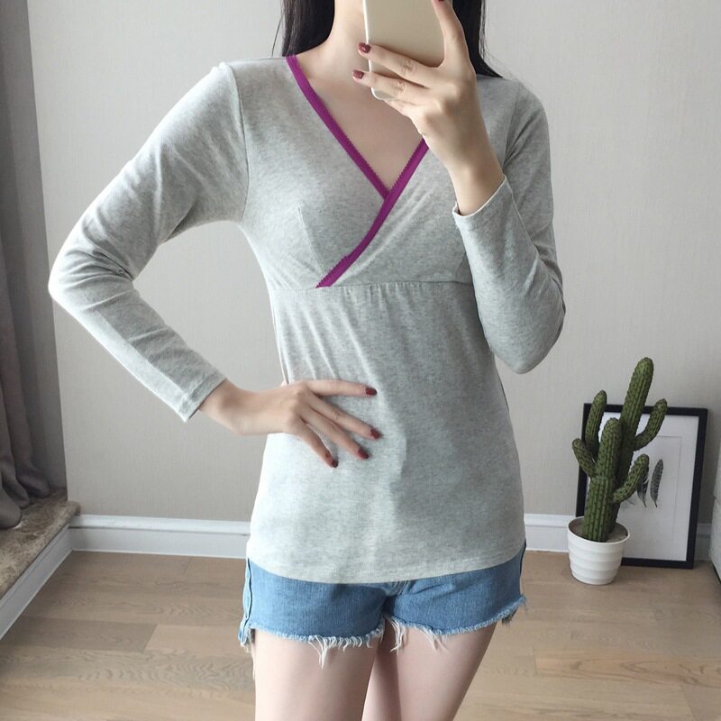 Хлопковый лонгслив для беременных для кормящих грудью, летняя пижама, рубашка, большой размер